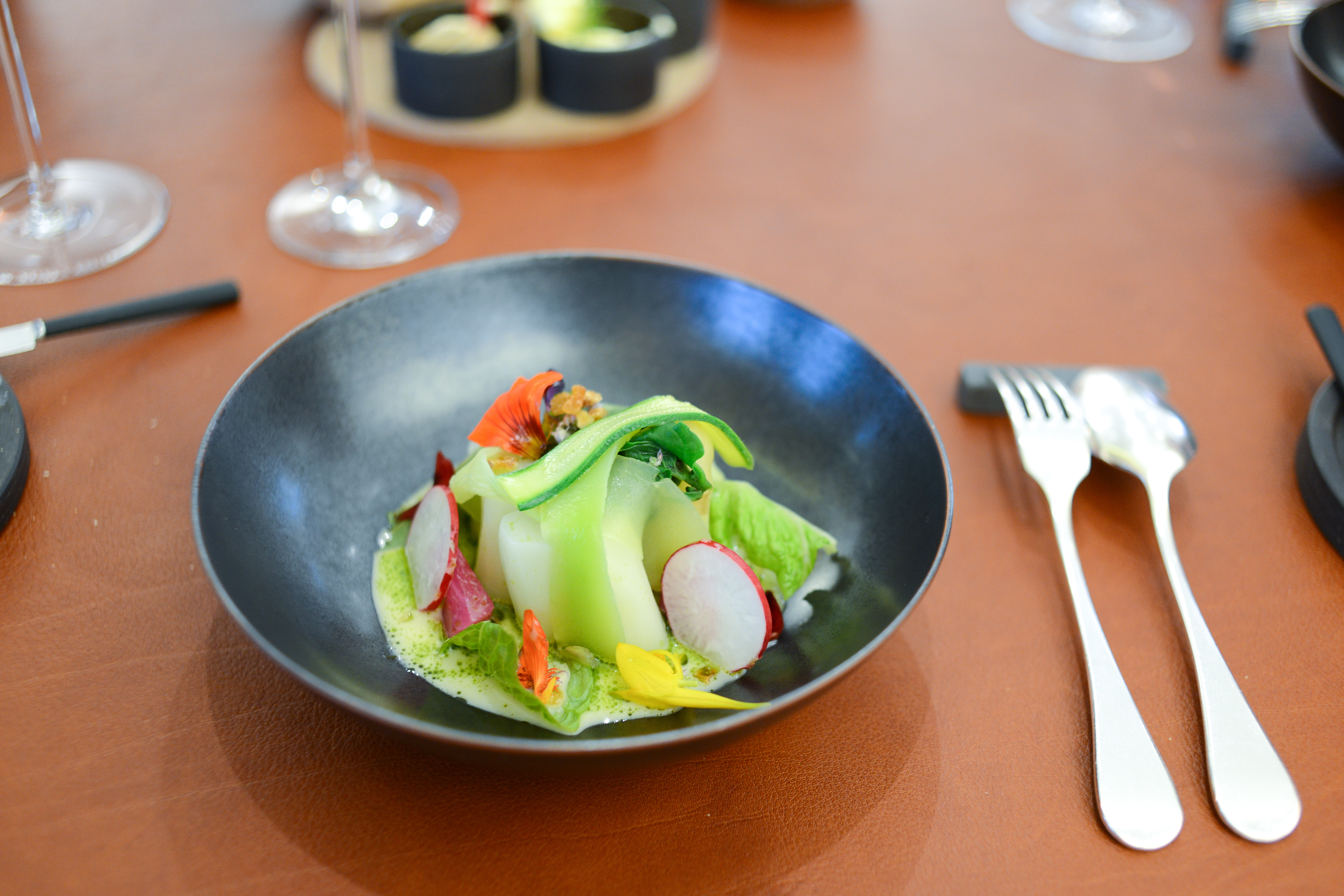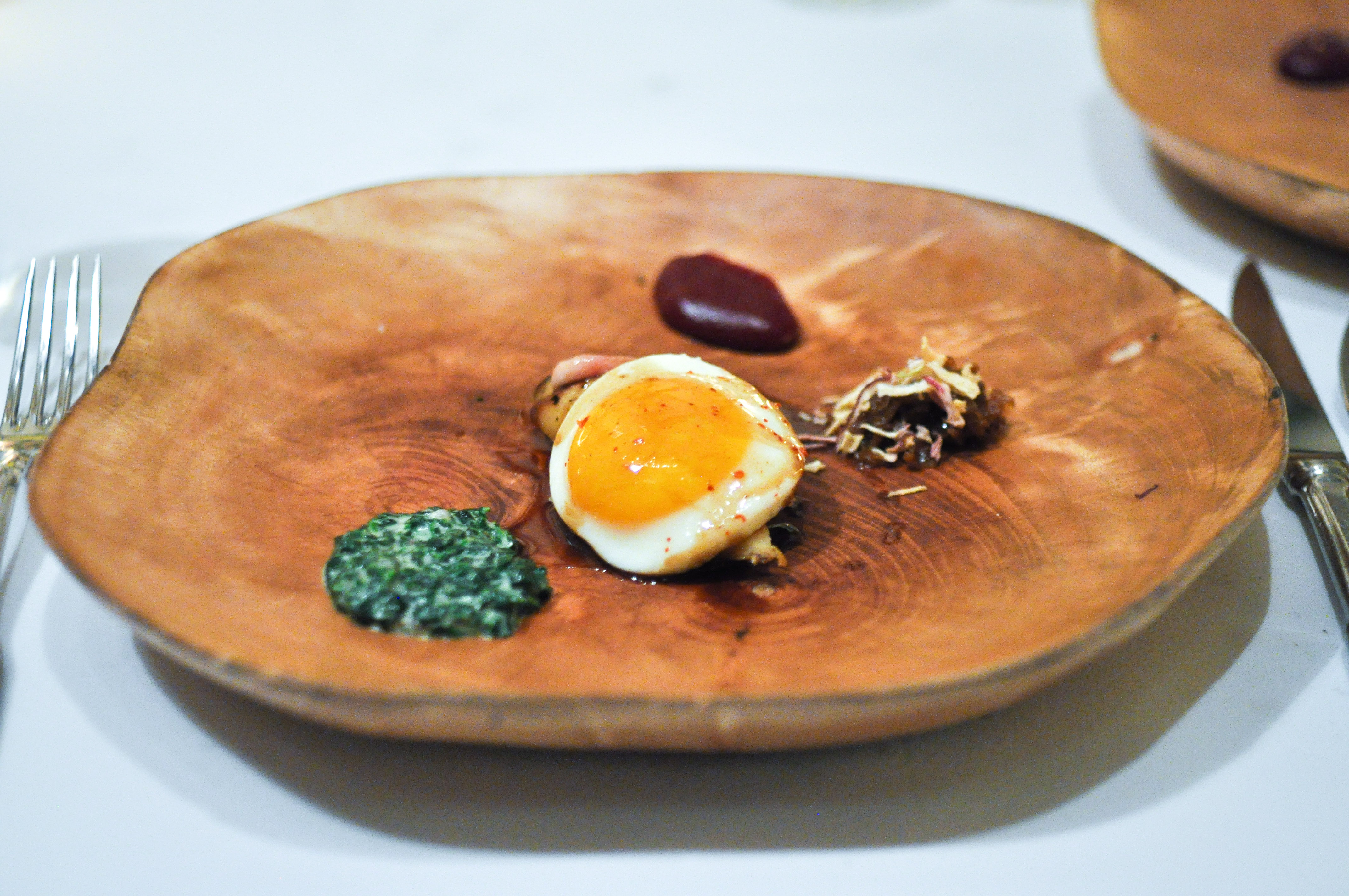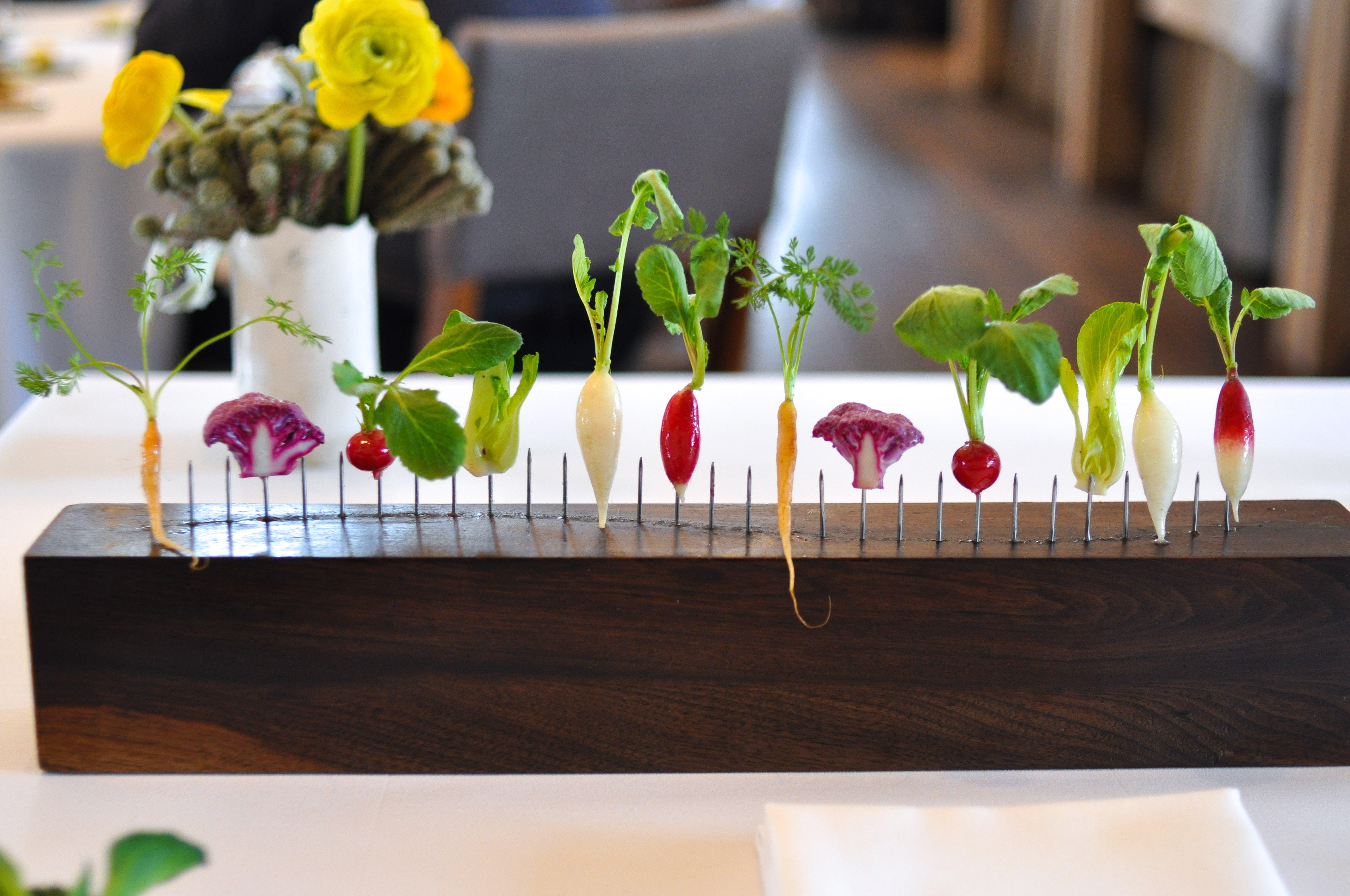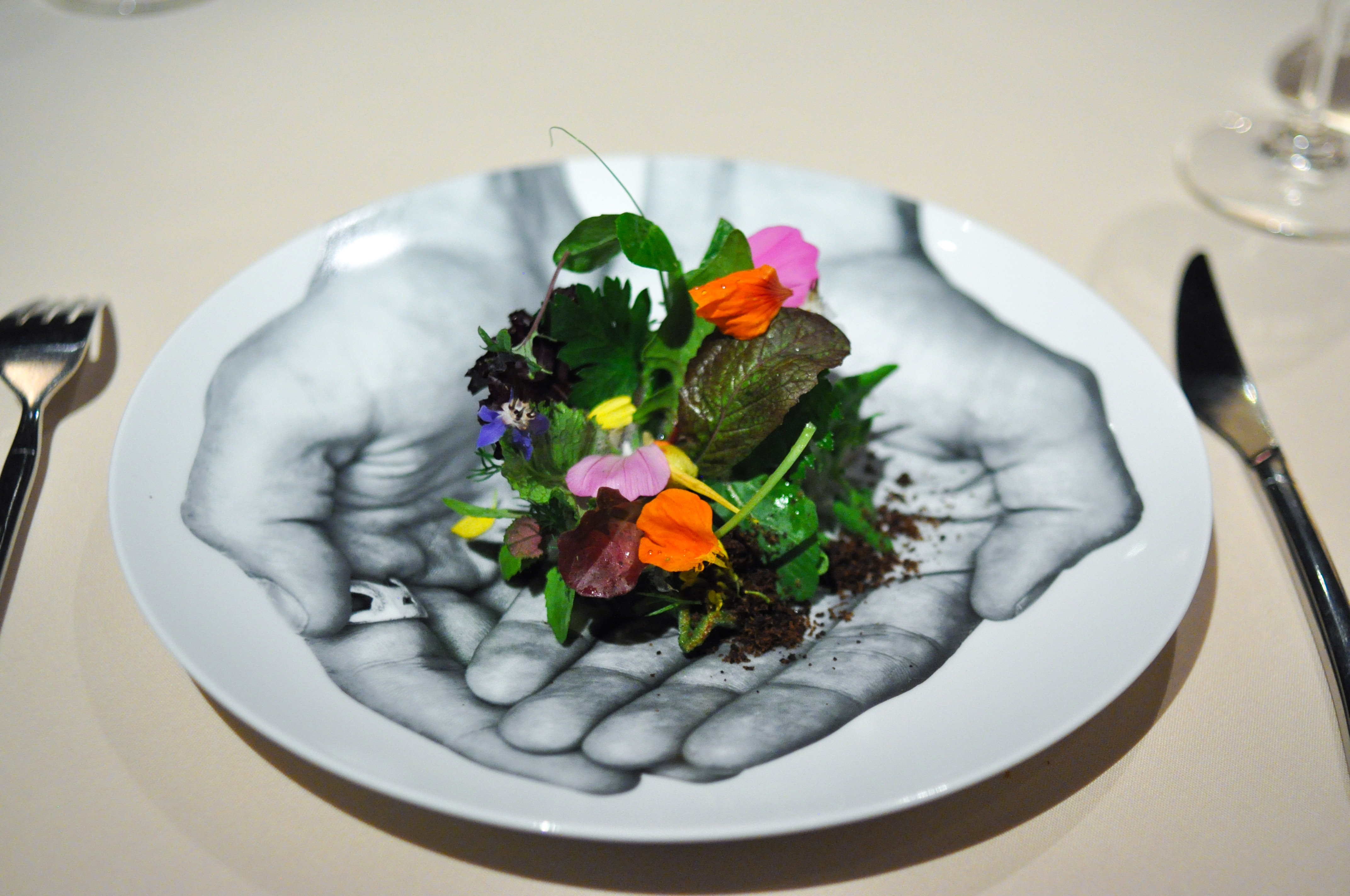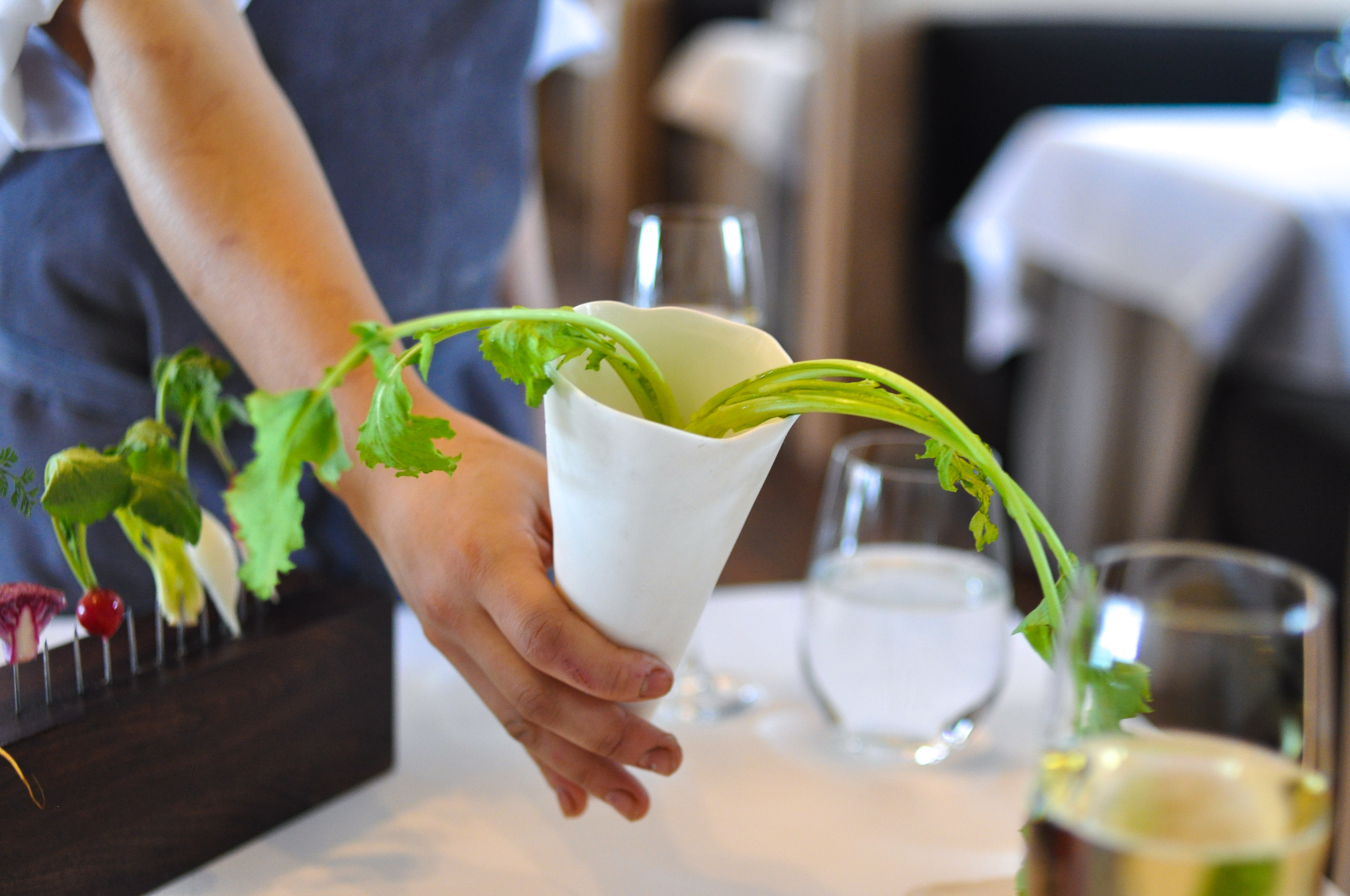 Into the vegetable garden… A consistently stunning homage to Le Gargouillou by Michel Bras. A flawless journey of pea leaves, lambs quarters, nasturtium, beet, malabar spinach, ice plant, arugula, wild dandelion, and many other vegetables, leaves, and flowers.