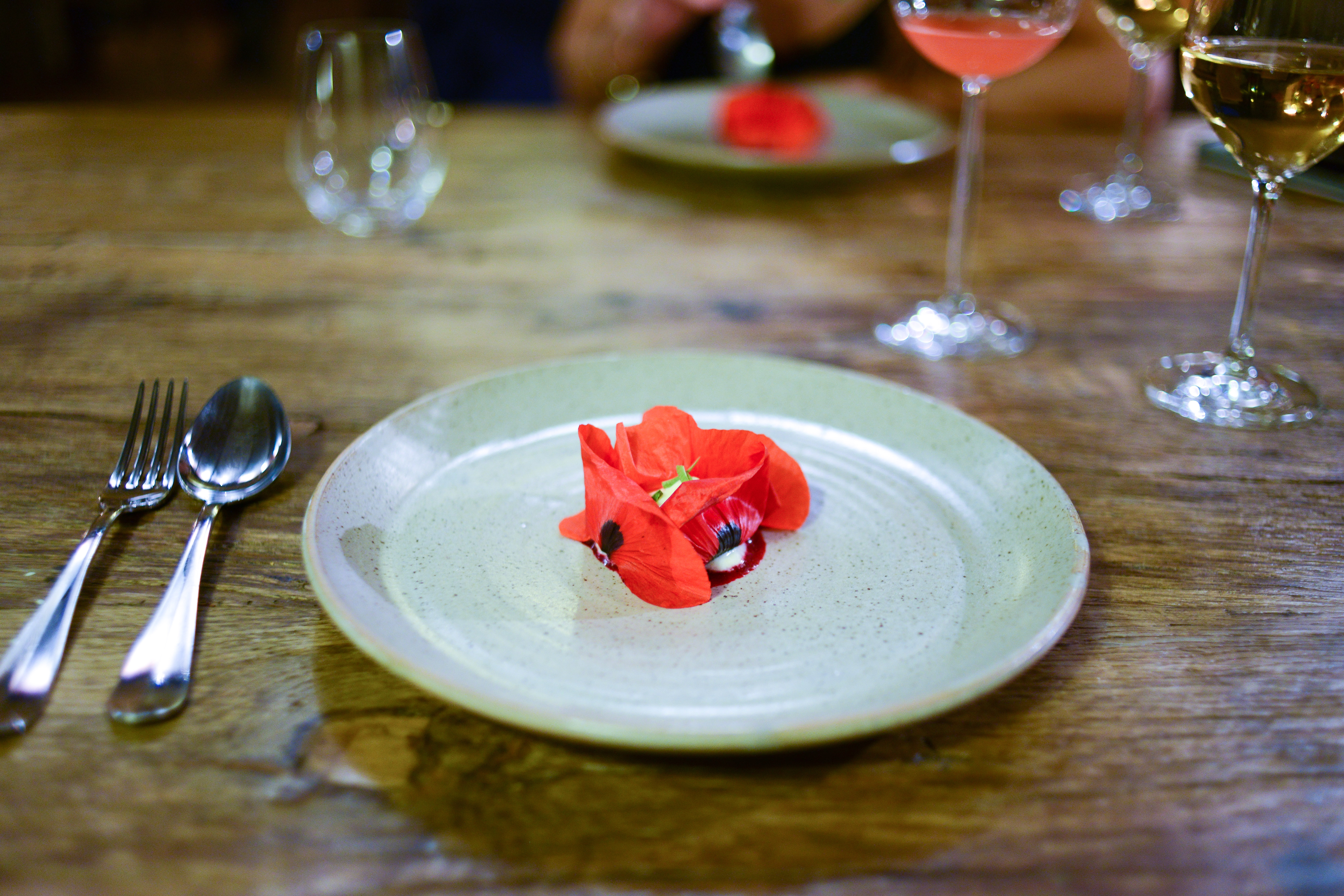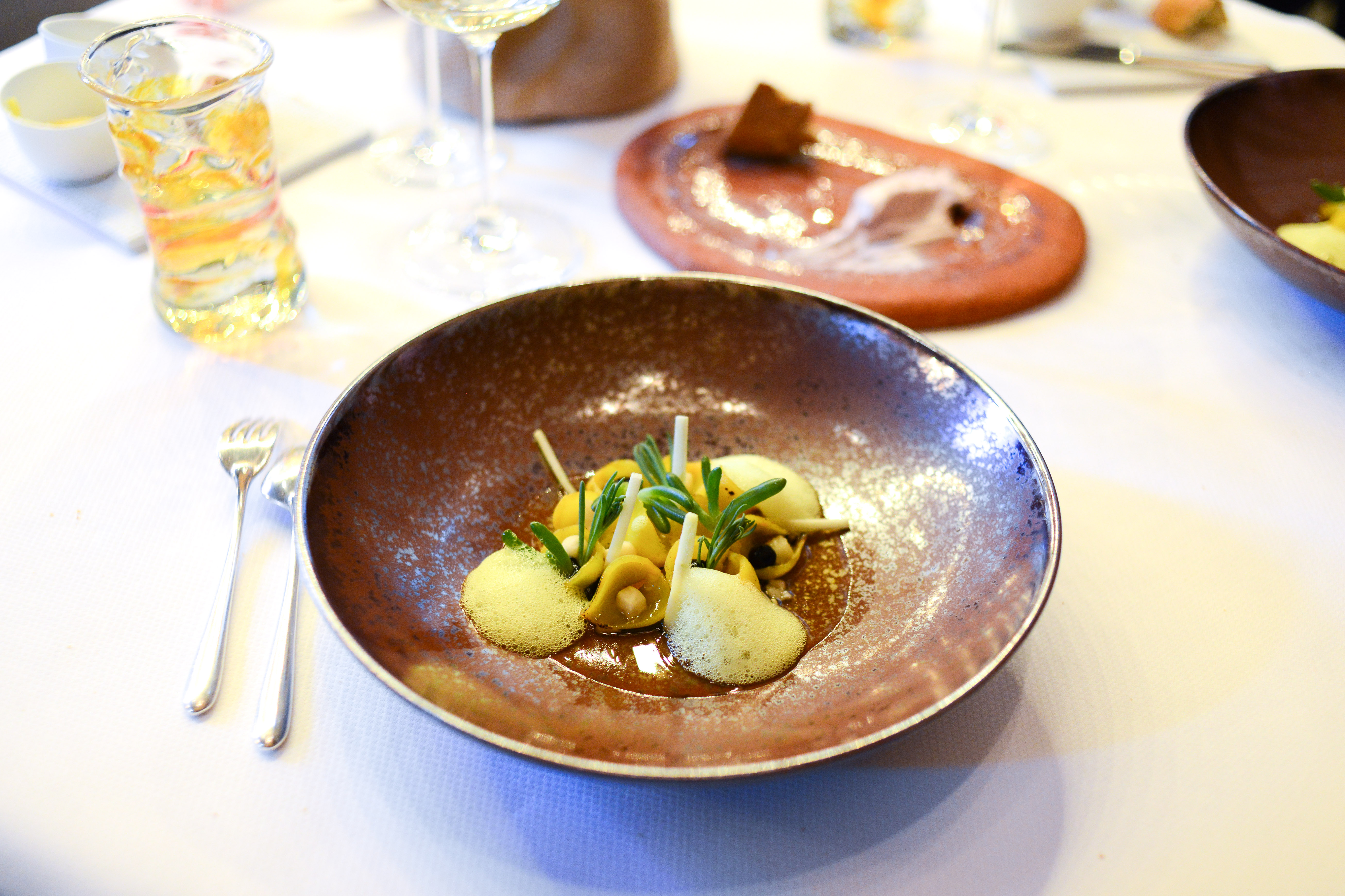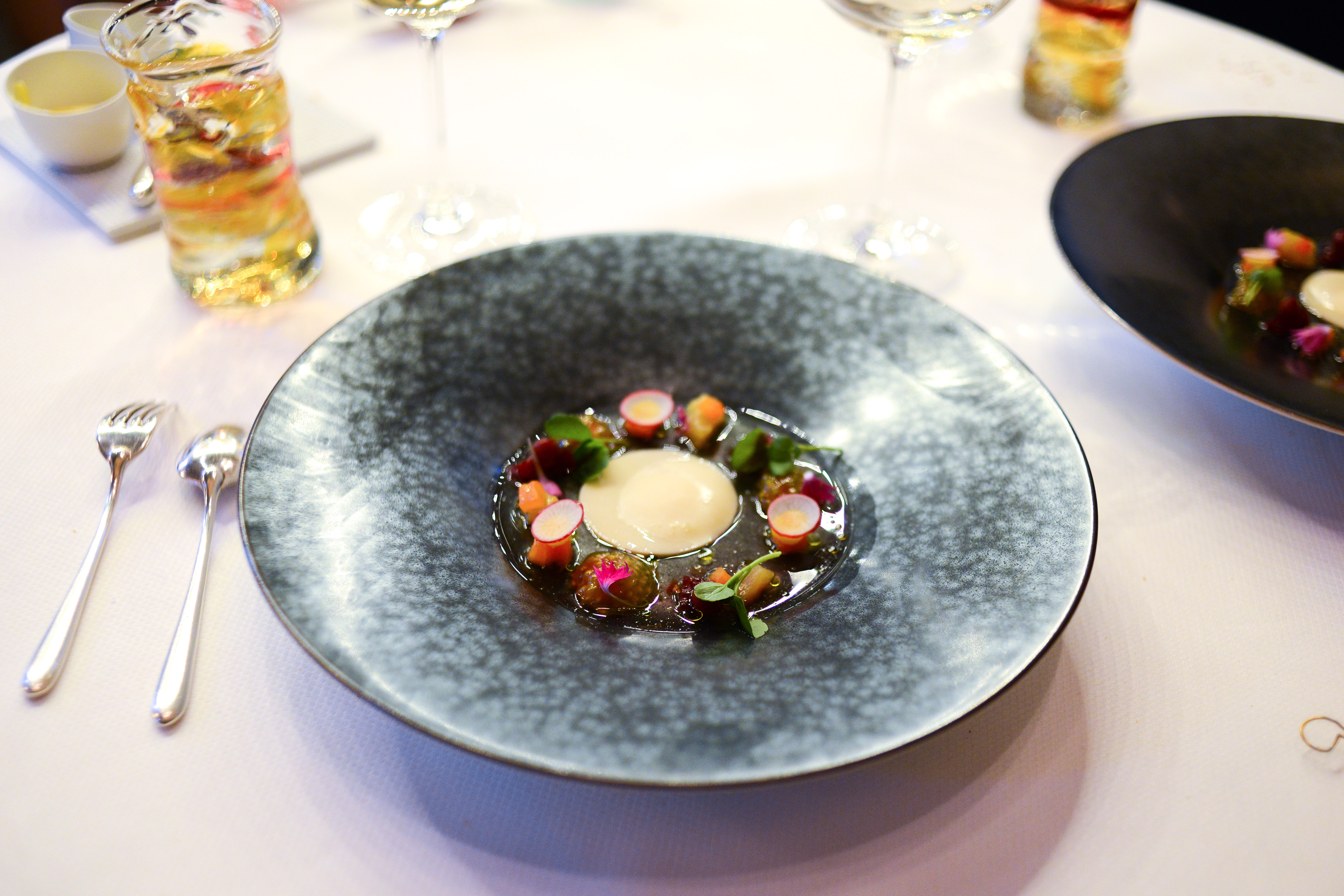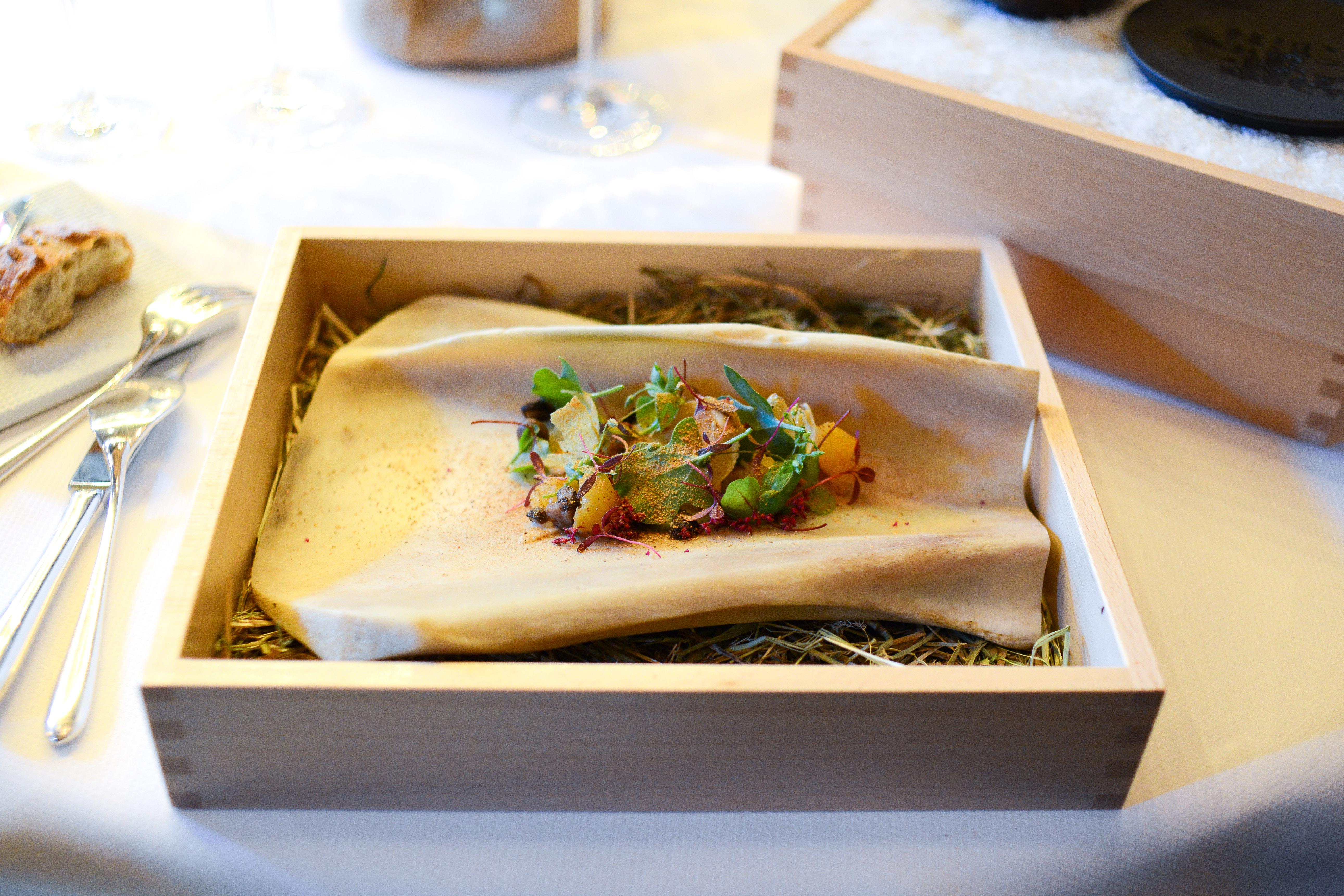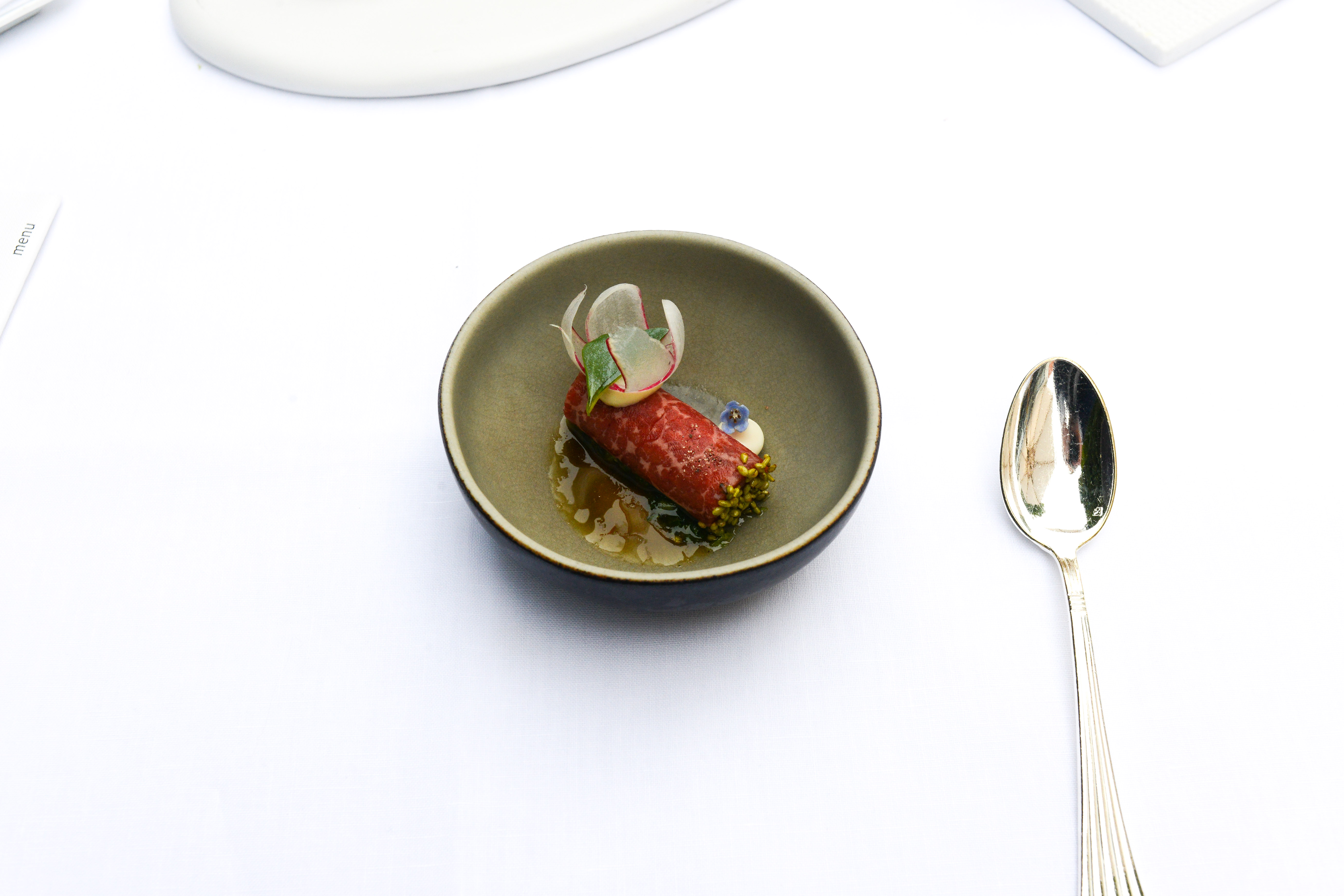 Into the vegetable garden… A consistently stunning homage to Le Gargouillou by Michel Bras. A flawless journey of pea leaves, lambs quarters, nasturtium, beet, malabar spinach, ice plant, arugula, wild dandelion, and many other vegetables, leaves, and flowers.