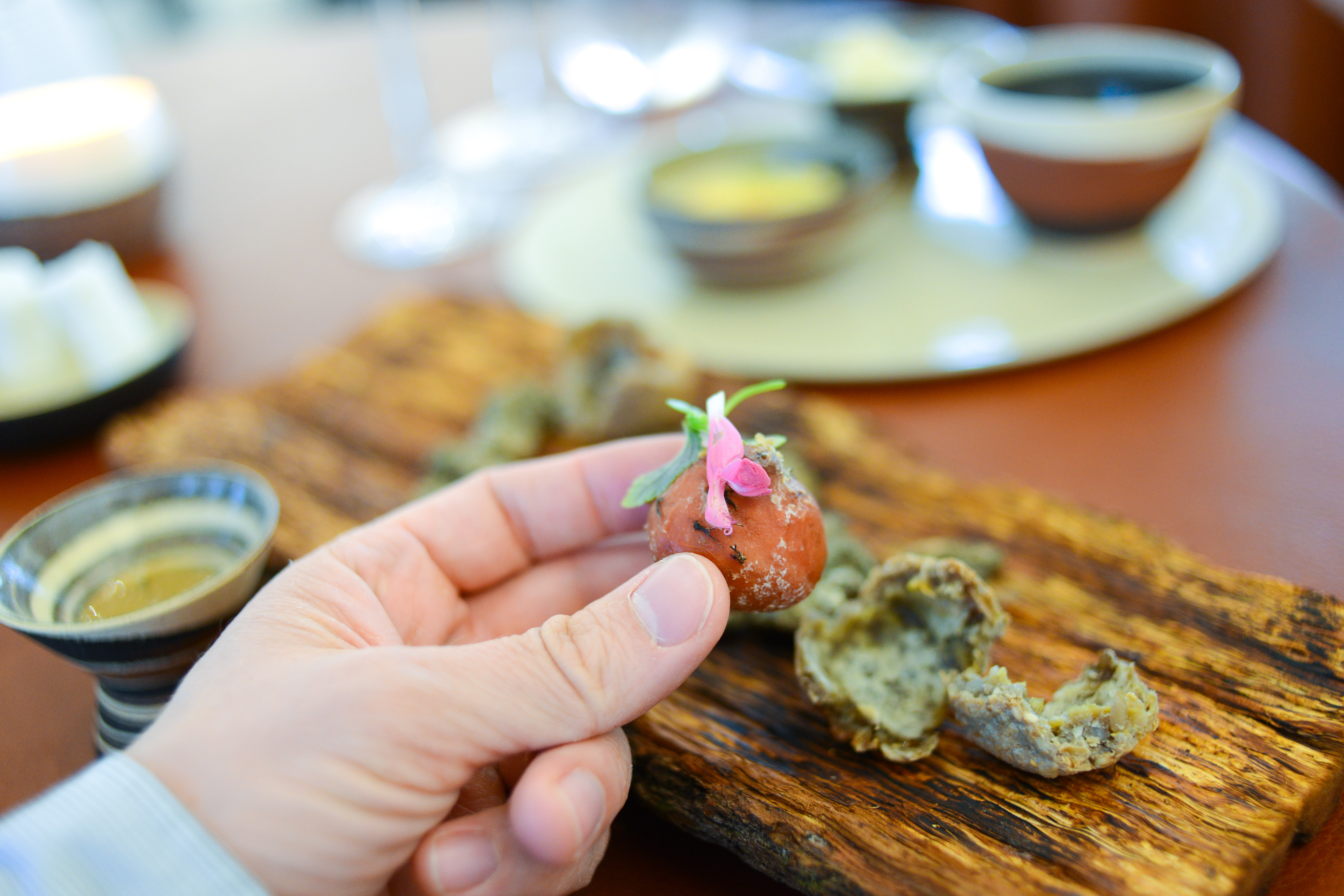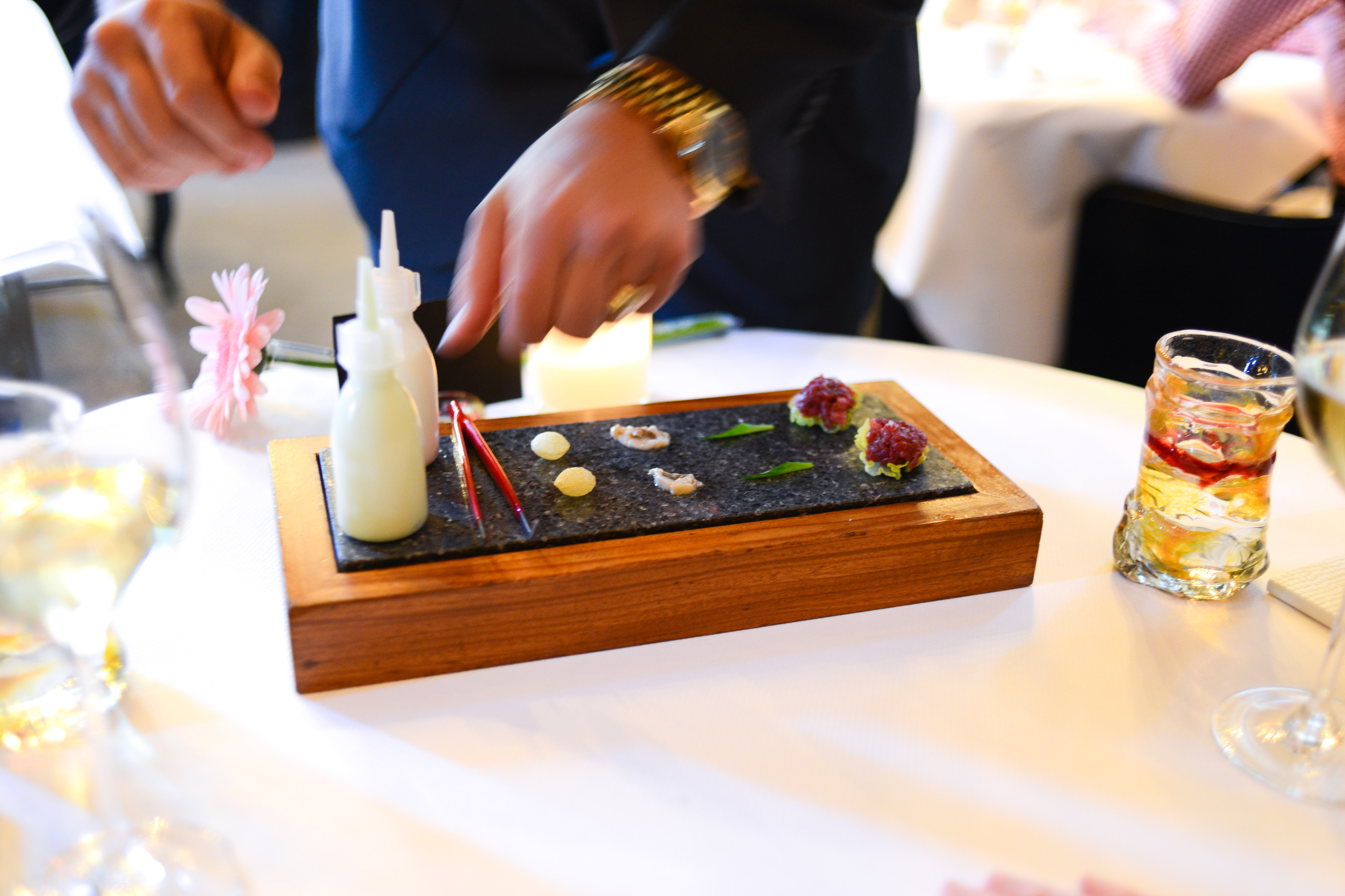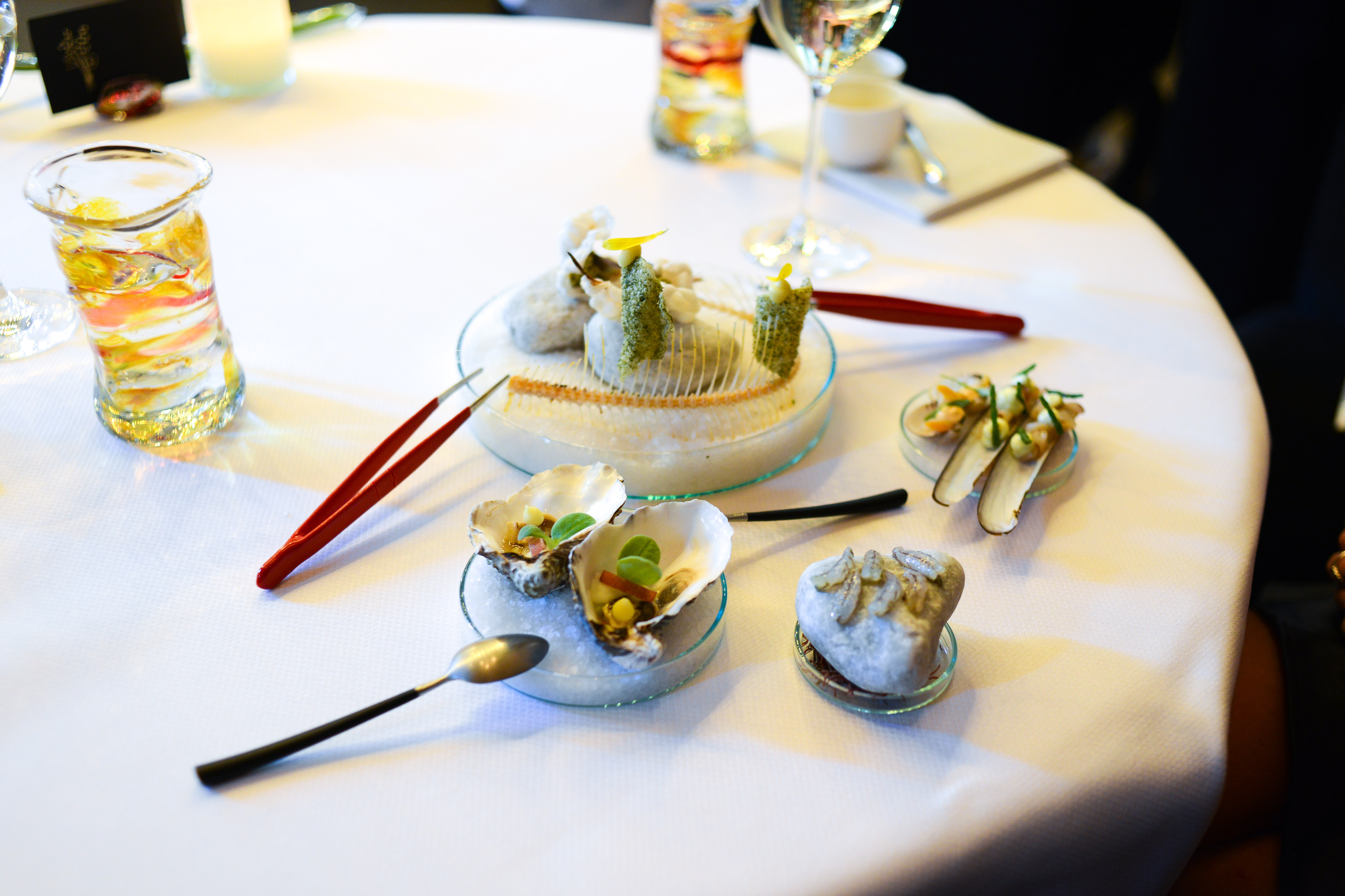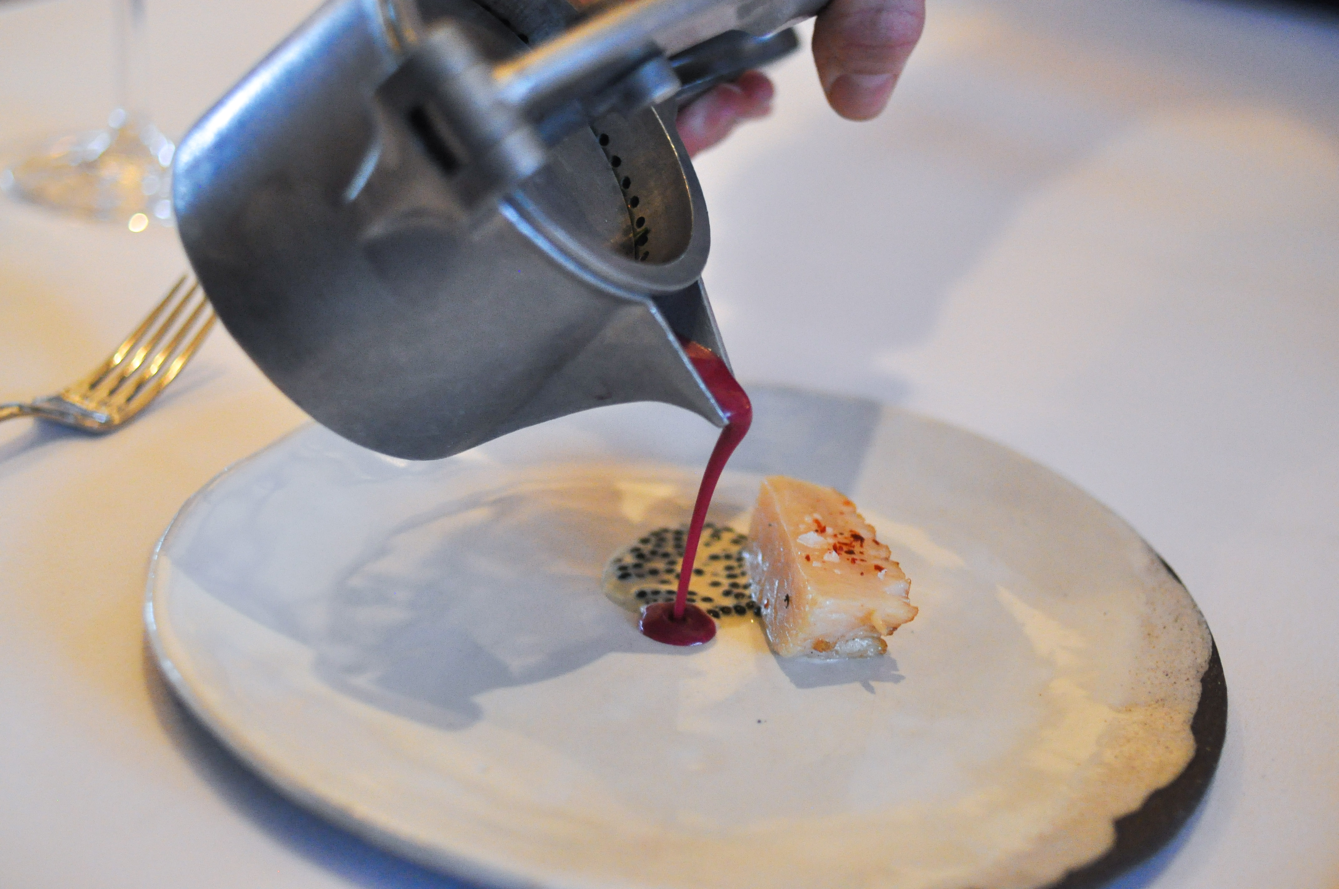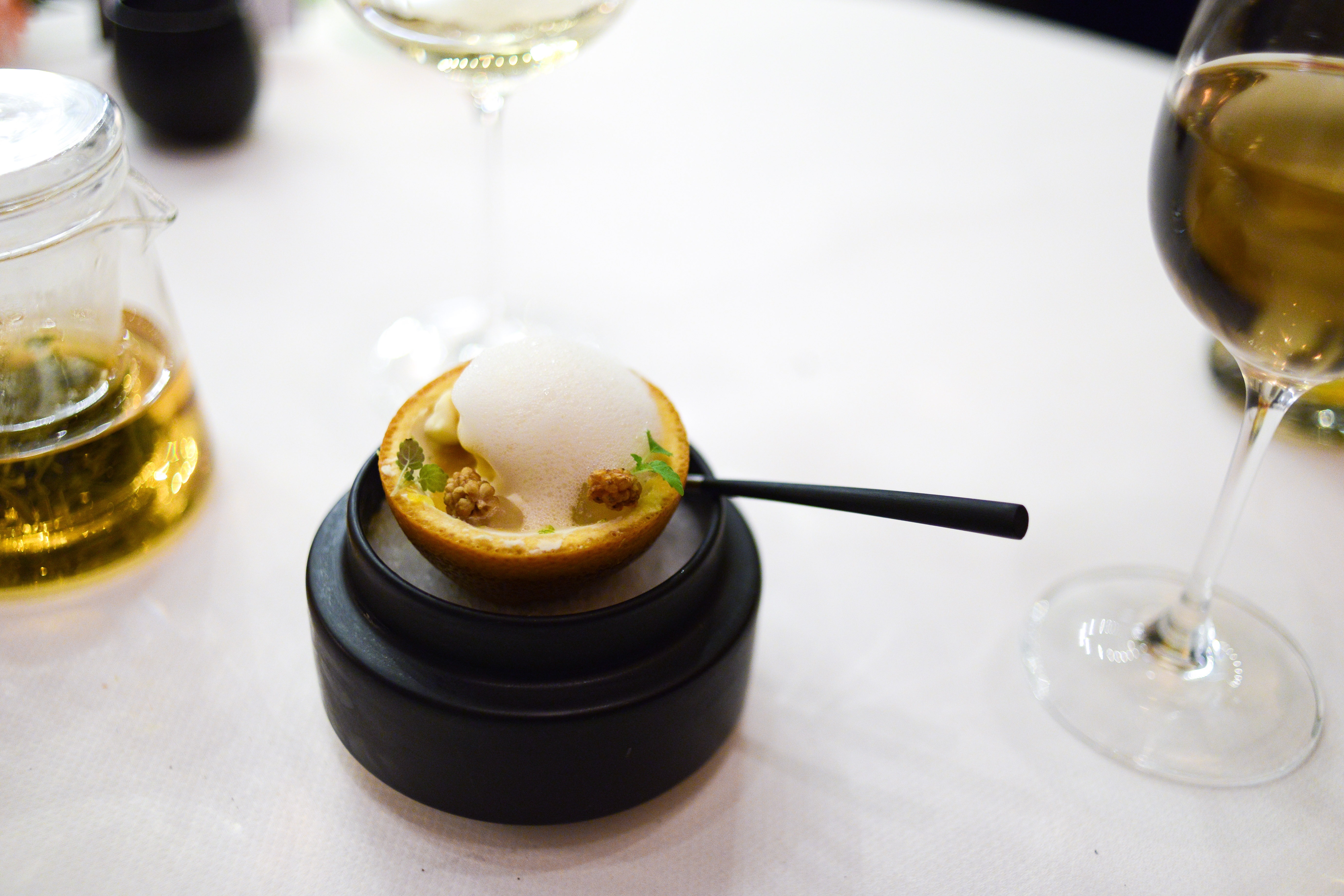Into the vegetable garden… A consistently stunning homage to Le Gargouillou by Michel Bras. A flawless journey of pea leaves, lambs quarters, nasturtium, beet, malabar spinach, ice plant, arugula, wild dandelion, and many other vegetables, leaves, and flowers.