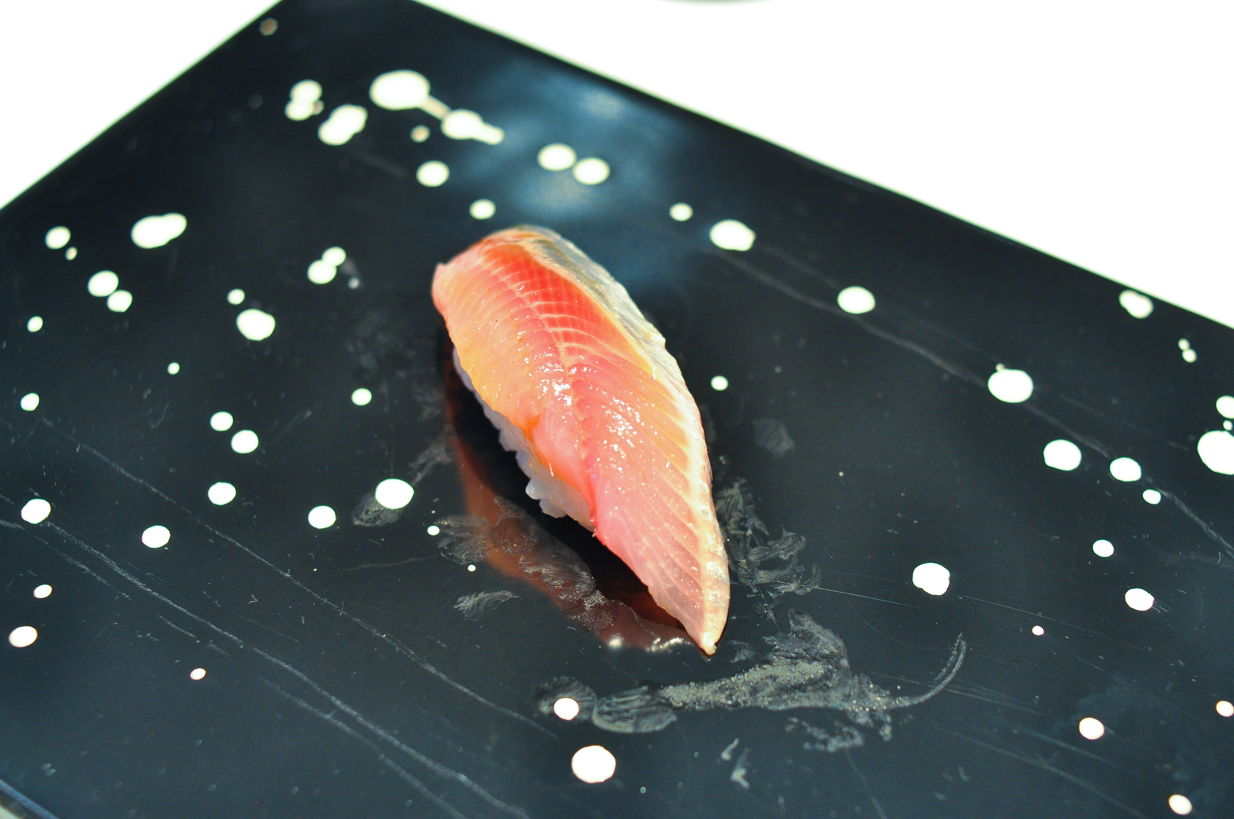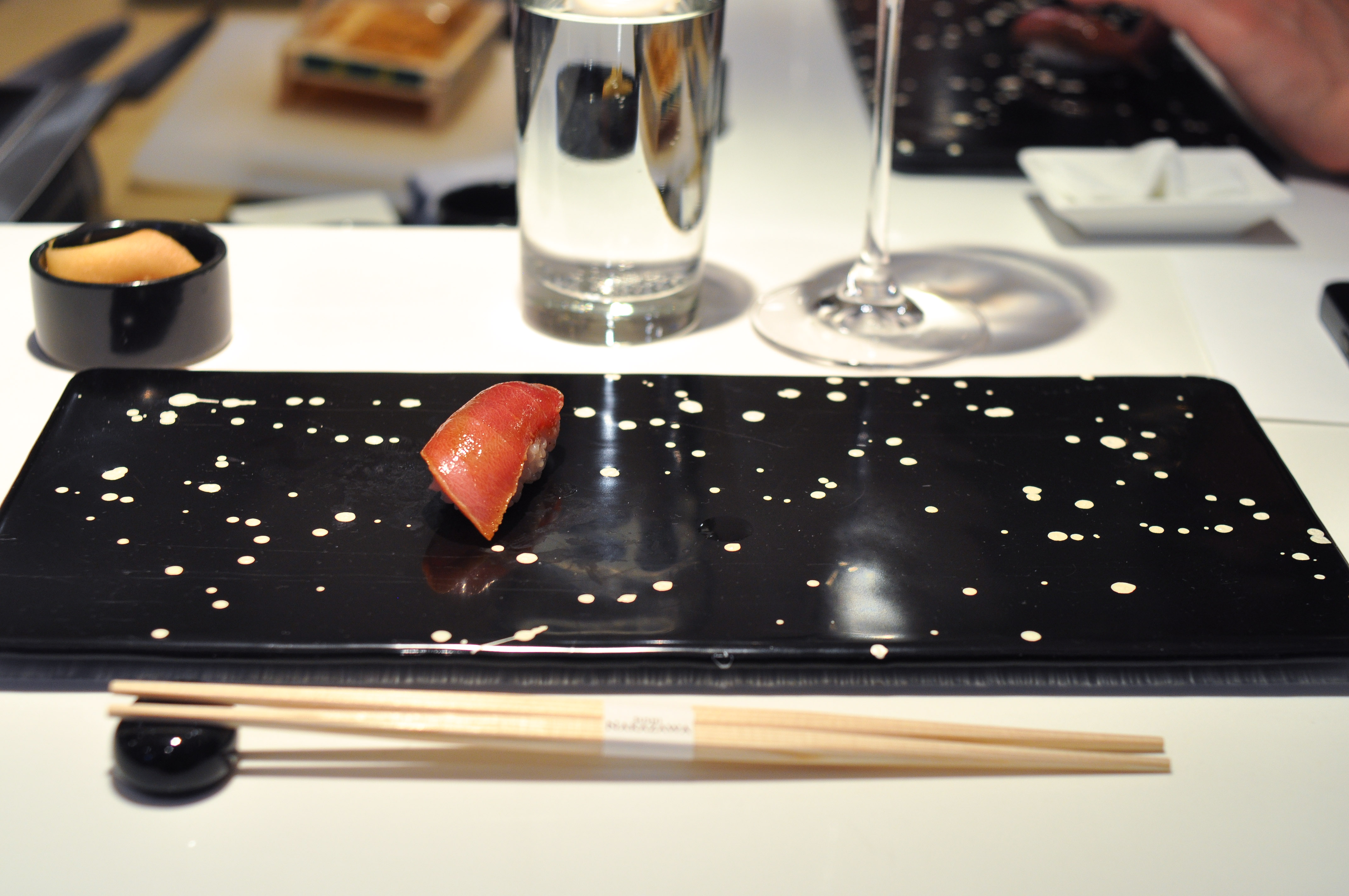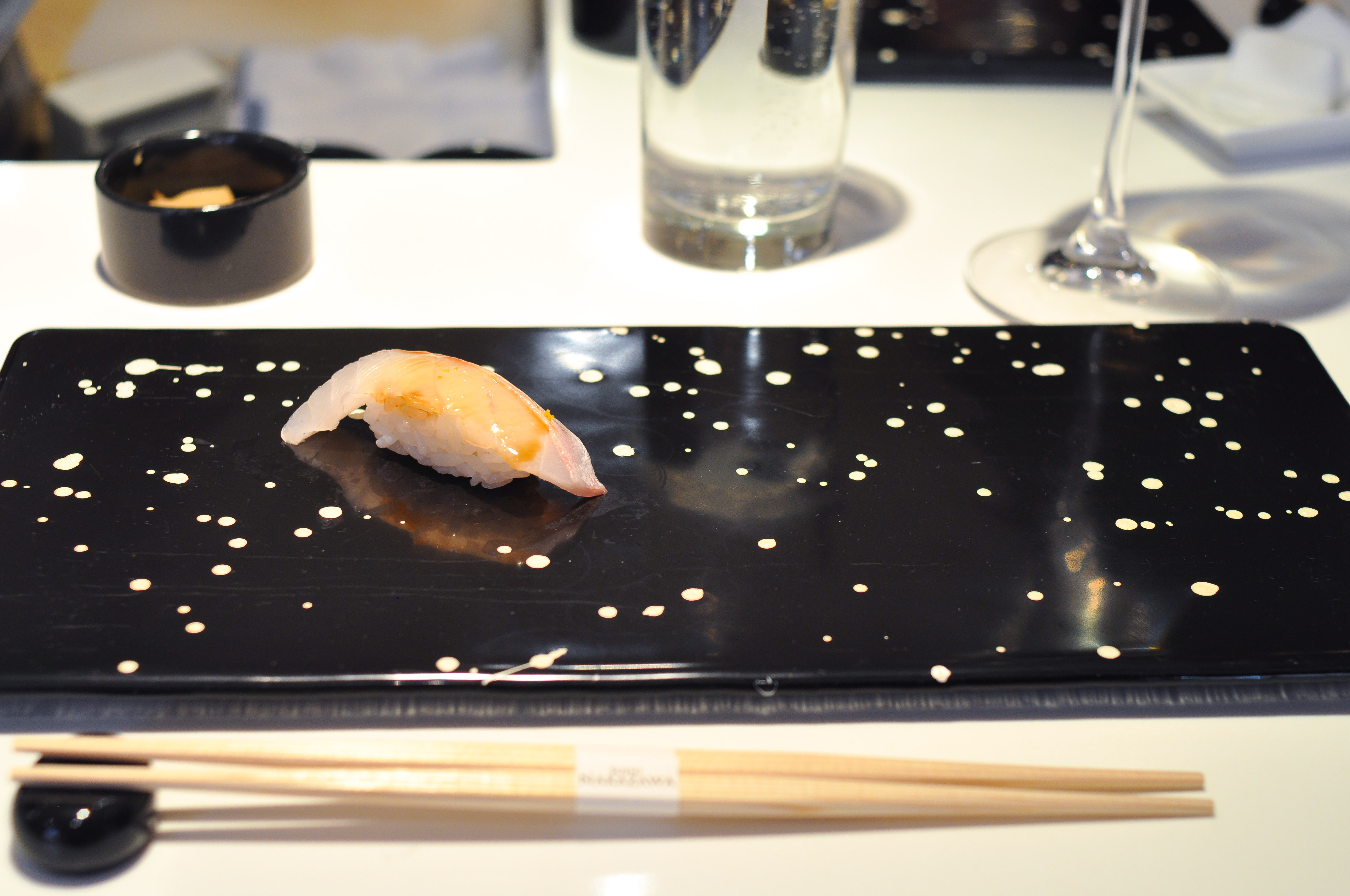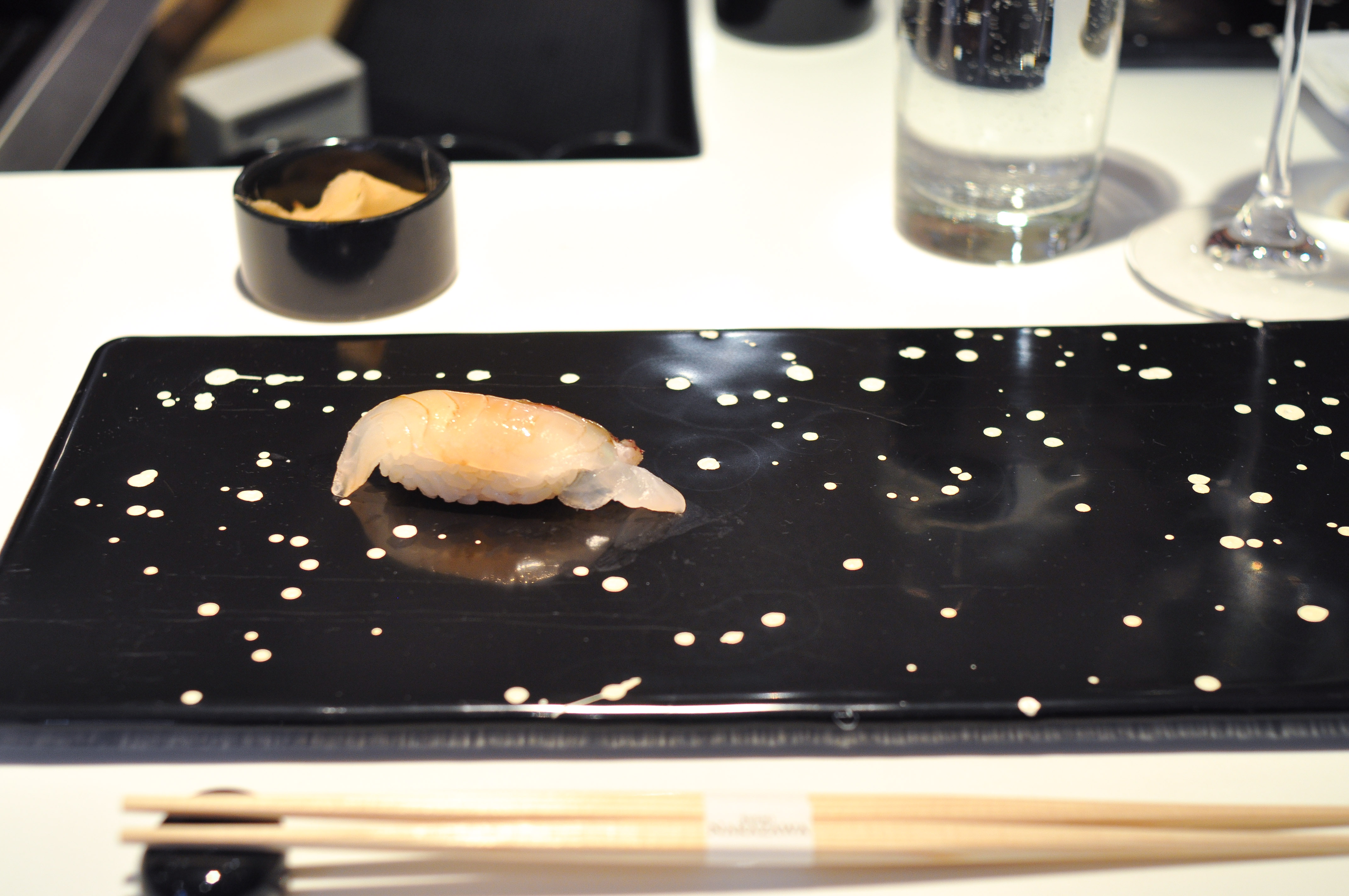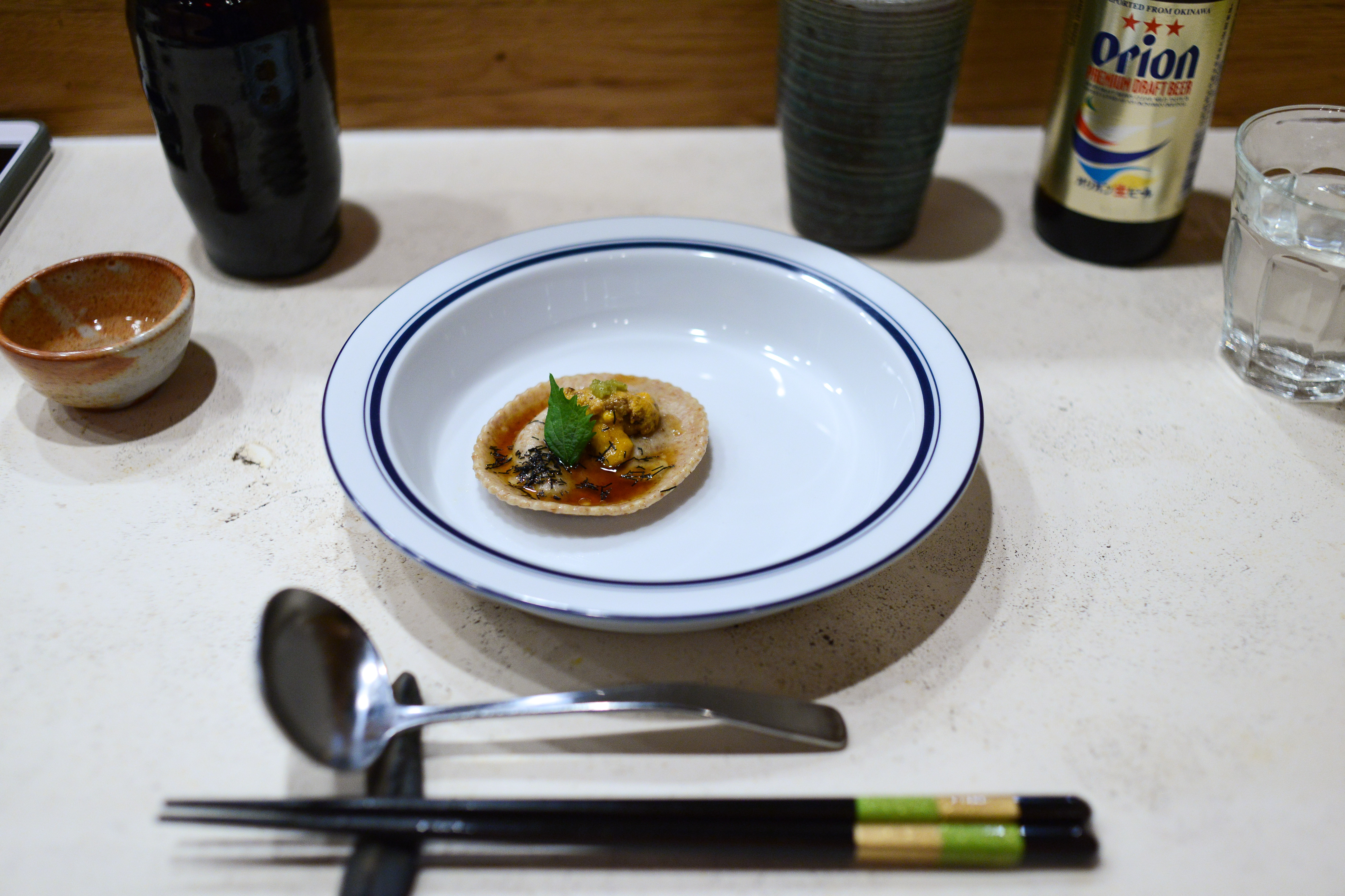Petit fours “red pepper-black olive” Kinch’s signature opener of red pepper pate de fruits and black olive madeleines. Good vegetal balance in the PDF and lightly sweet, nicely dense madeleine.