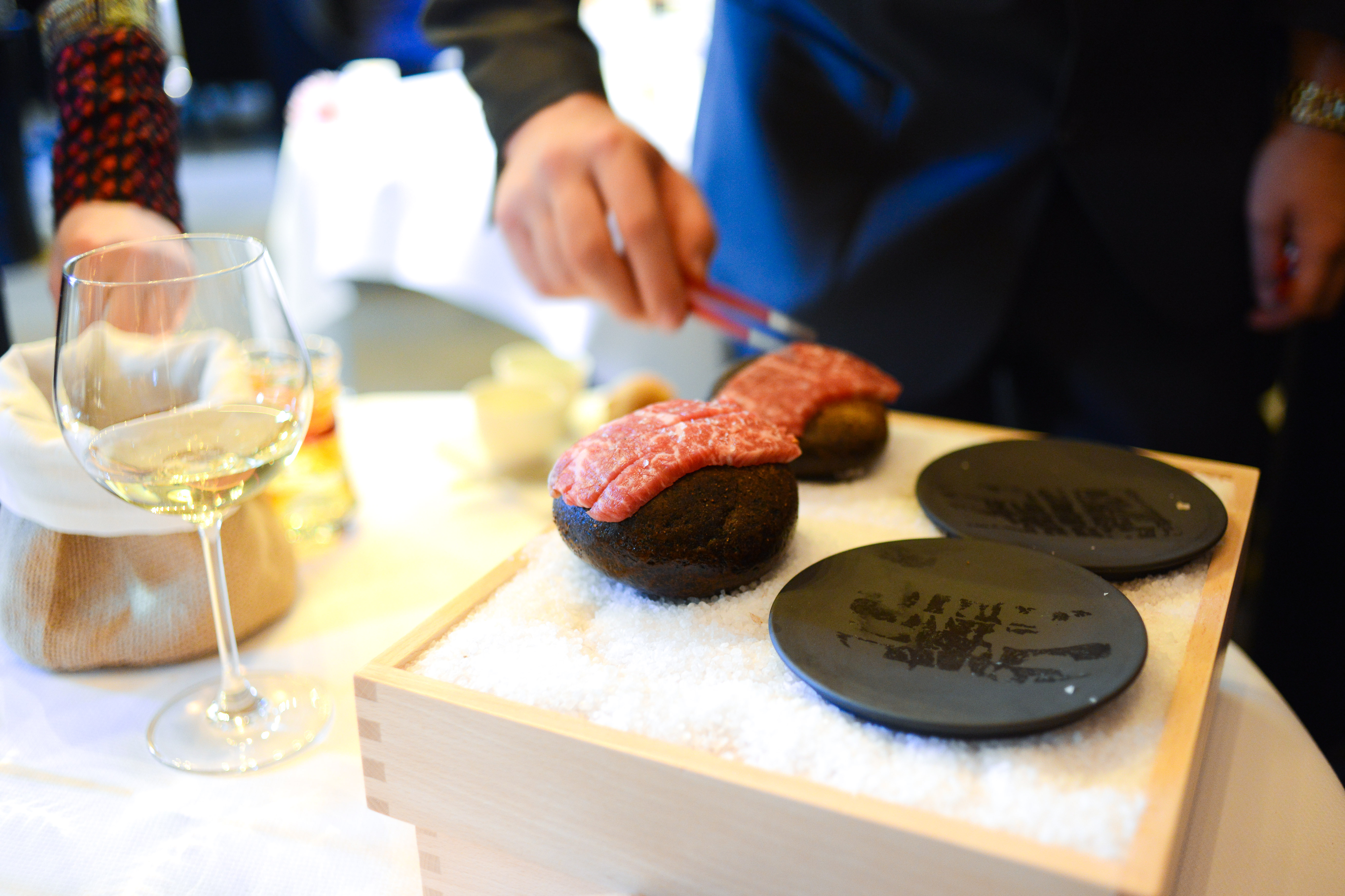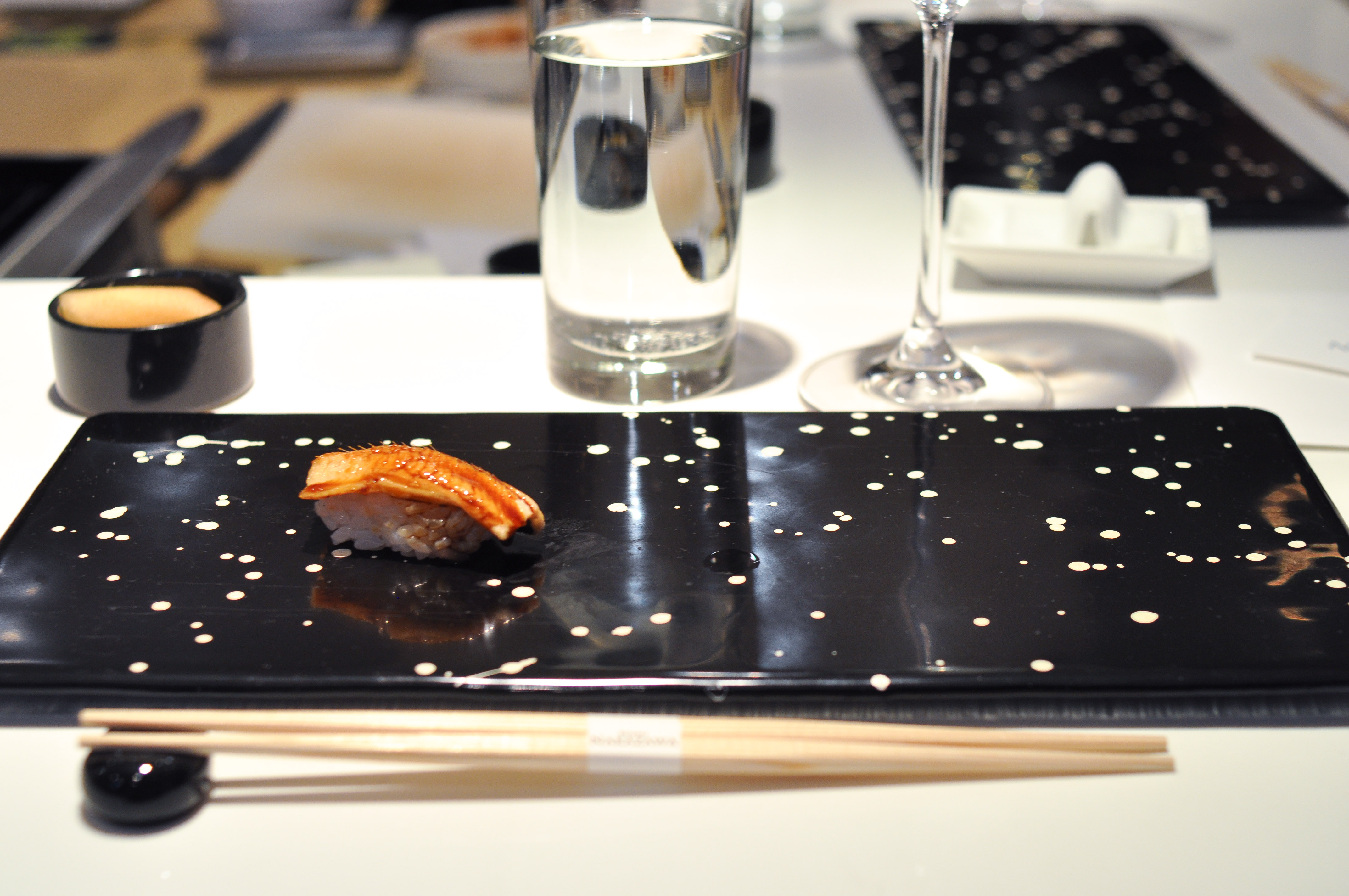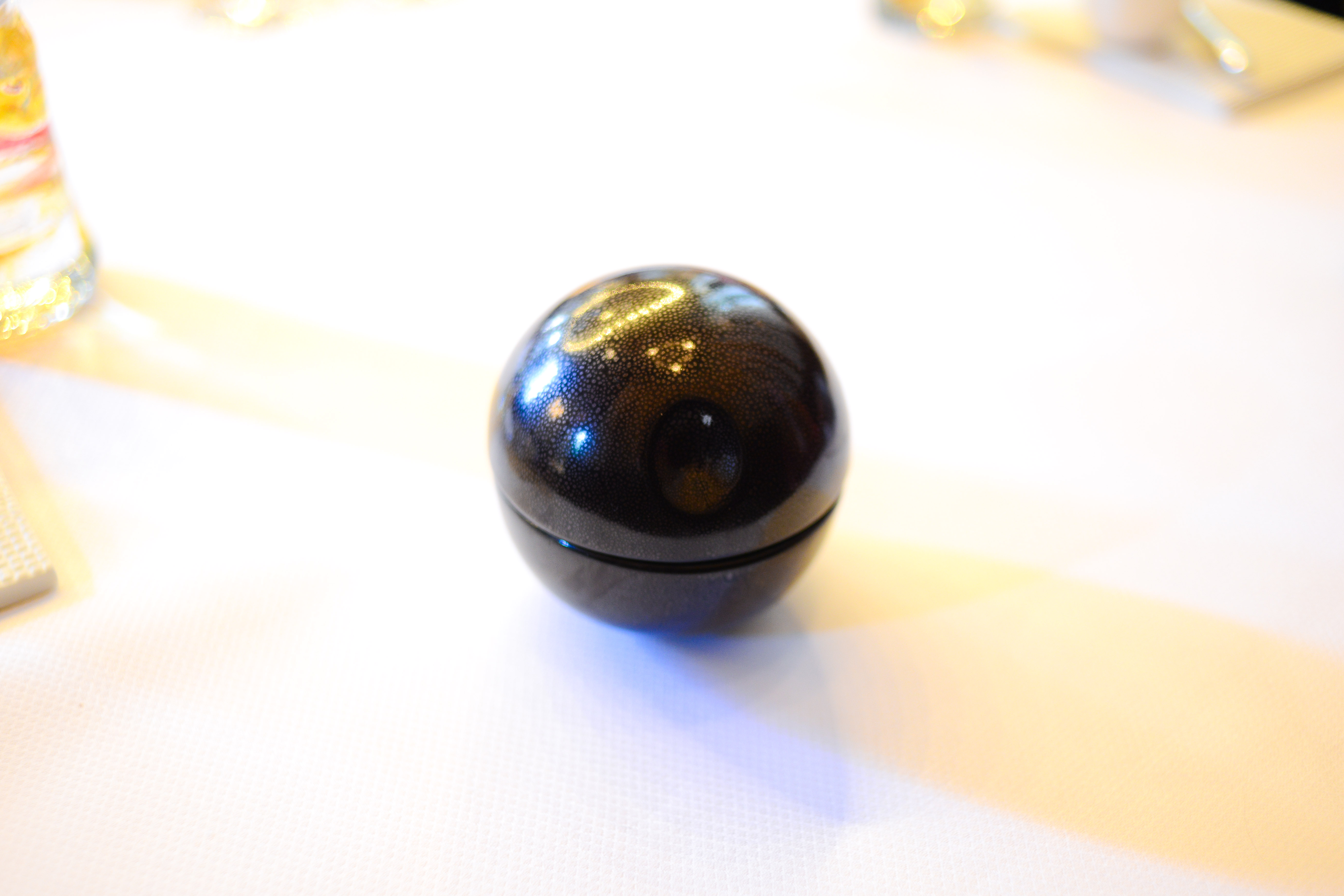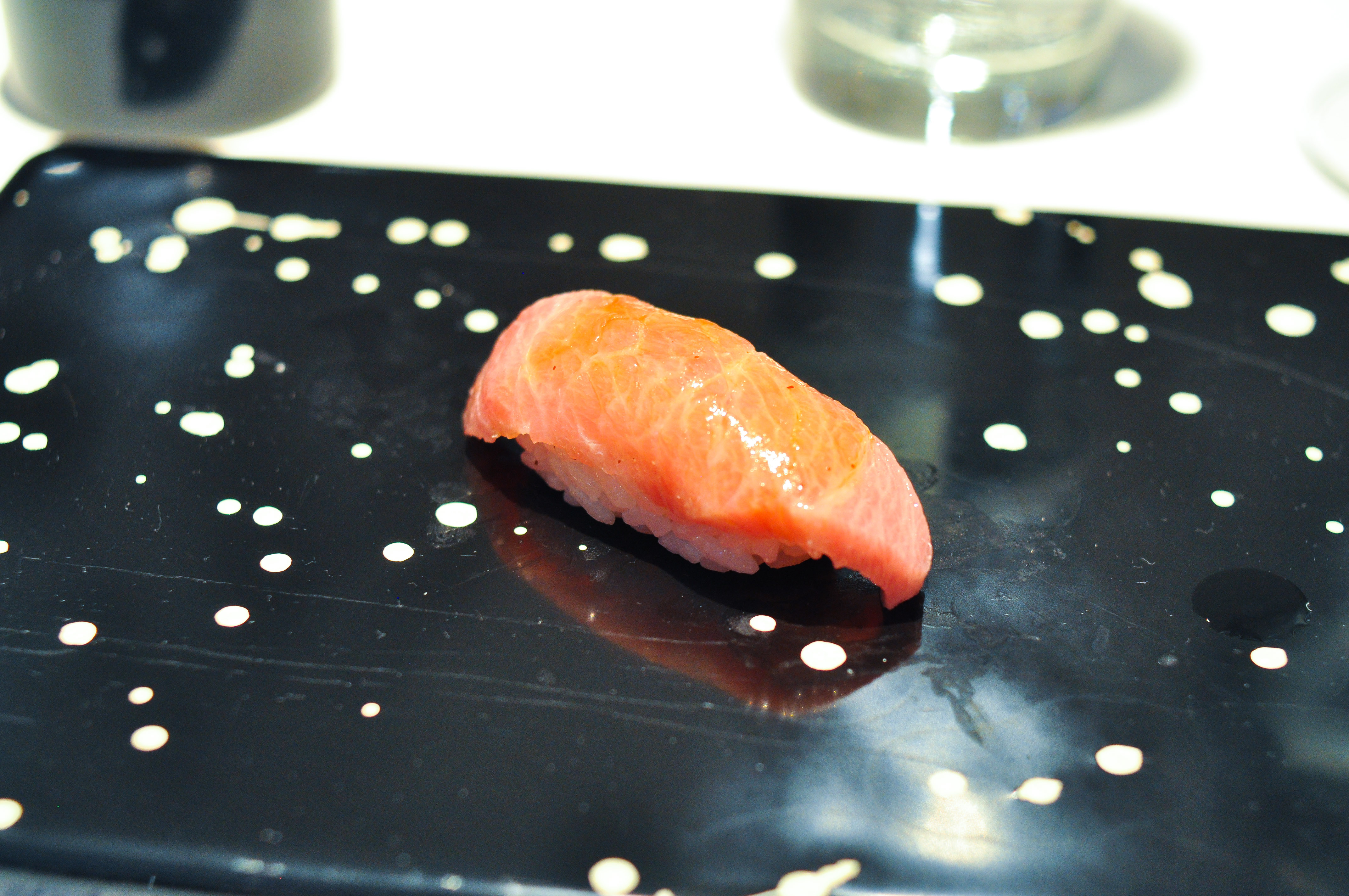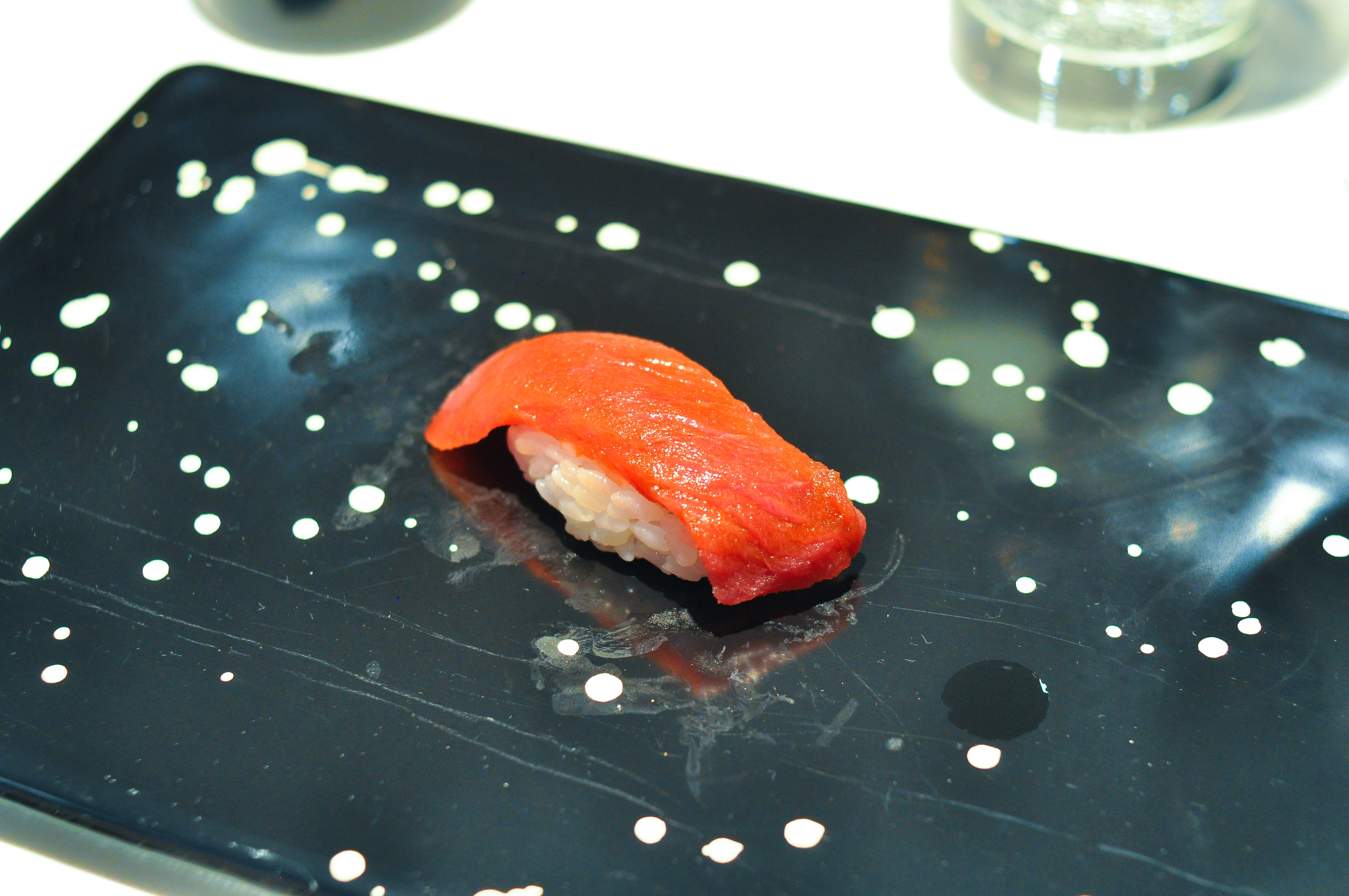 Petit fours “red pepper-black olive” Kinch’s signature opener of red pepper pate de fruits and black olive madeleines. Good vegetal balance in the PDF and lightly sweet, nicely dense madeleine.