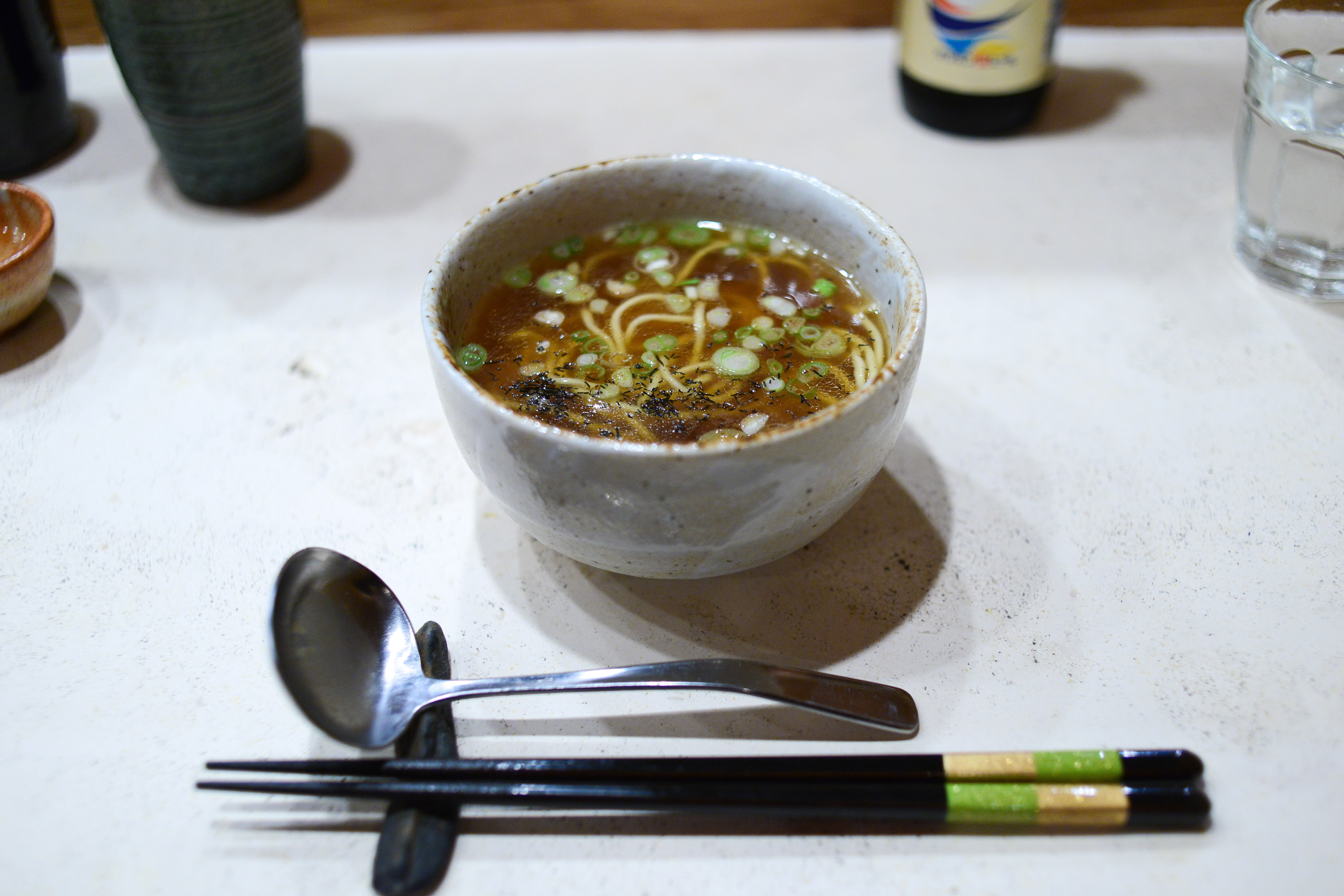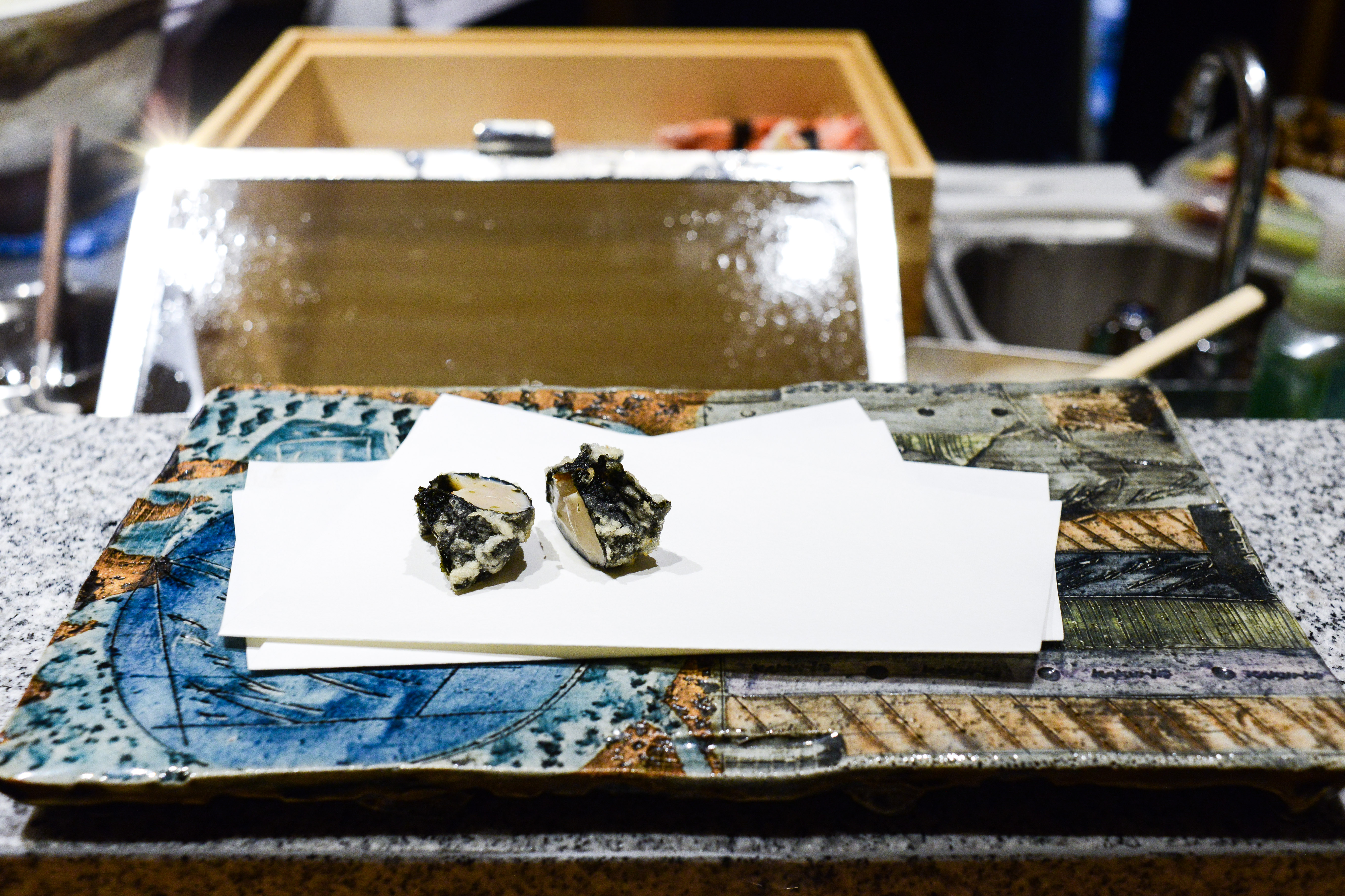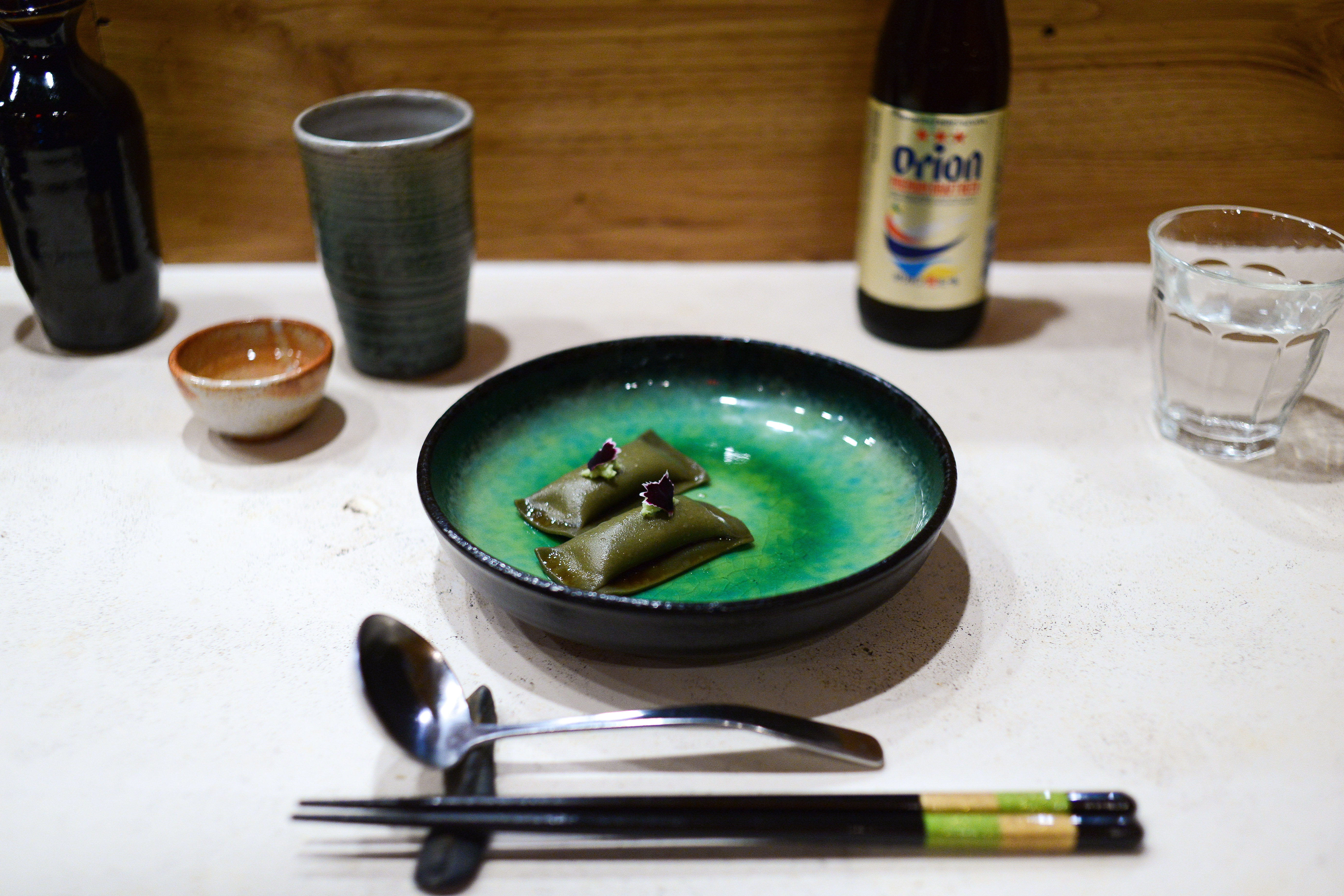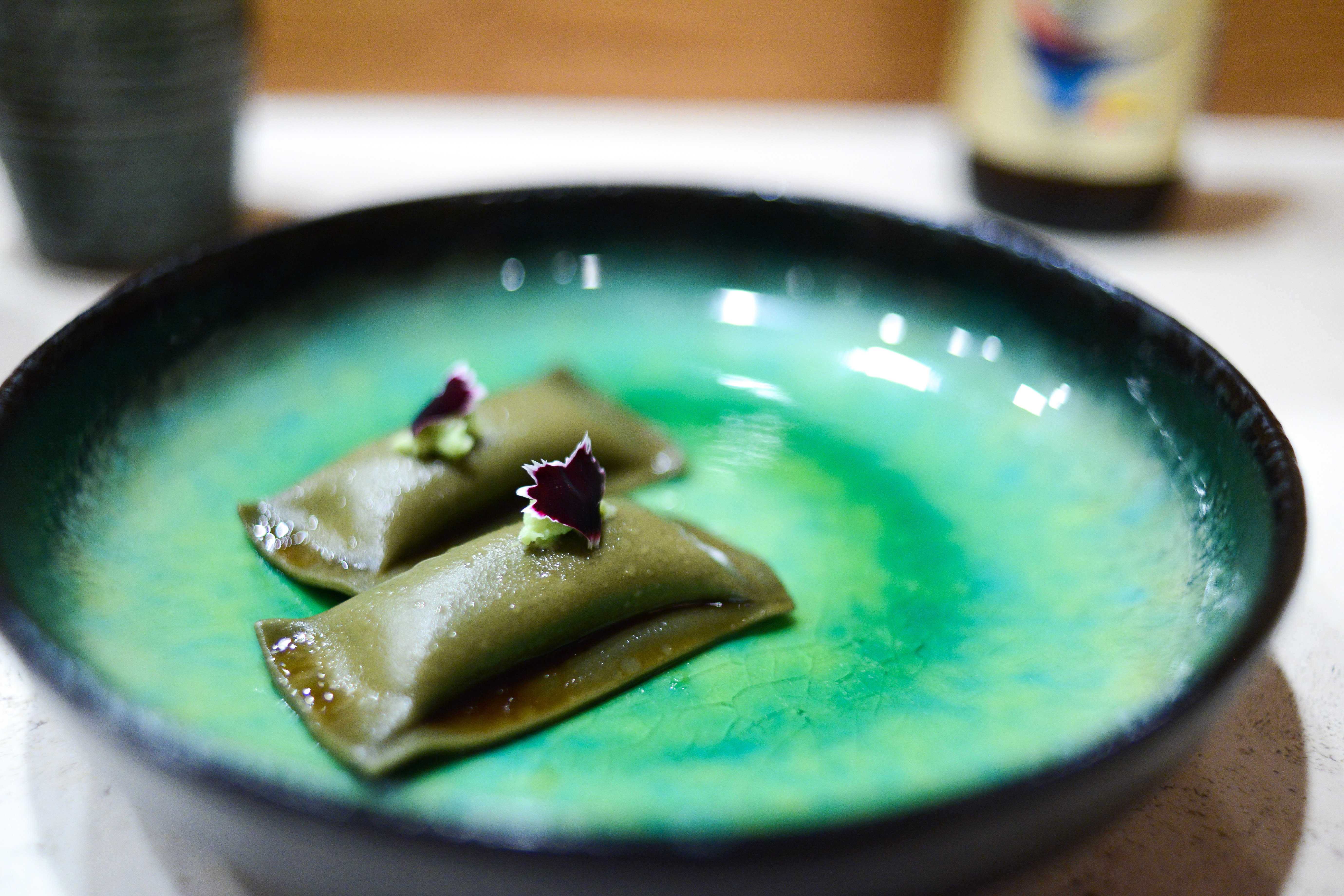 Summer clams and beans in a pine mushroom broth Various clams with seabream in a dashi broth accompanied by matsutake mushrooms, seaweed, beans, and peas. Badass savory layers.