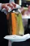 Petit Fours: Salted Brownie, Peanut Butter and Jelly Macaron, Milk Chocolate Bacon. The bacon chocolates tasted remarkably more like pork than chocolate. The macaron meringues had a great texture. As for the brownies, I’m betting I could down a pan of them without regrets.