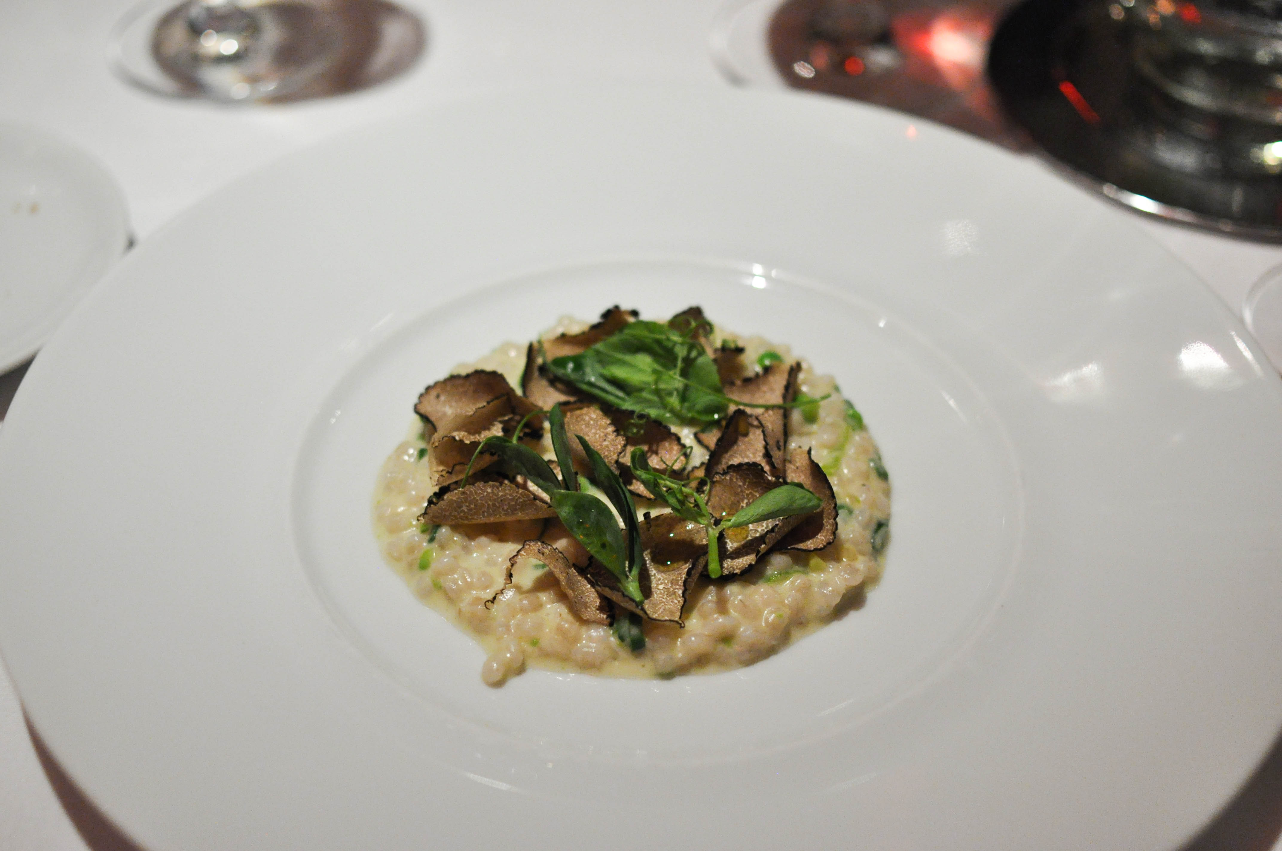 6th Course: Barley Risotto, English Peas, Summer Truffle. The grains were cooked well. The summer truffles were a welcome site, though I never get too crazy over them. Of course I adored the peas tossed in. I love leaves, but for me, they didn’t have a place here; dry and vegetal, they were distracting and didn’t add to the dish. There was preserved lemon which did well to brighten the rich butter and mascarpone binding, but left some bites very tangy.