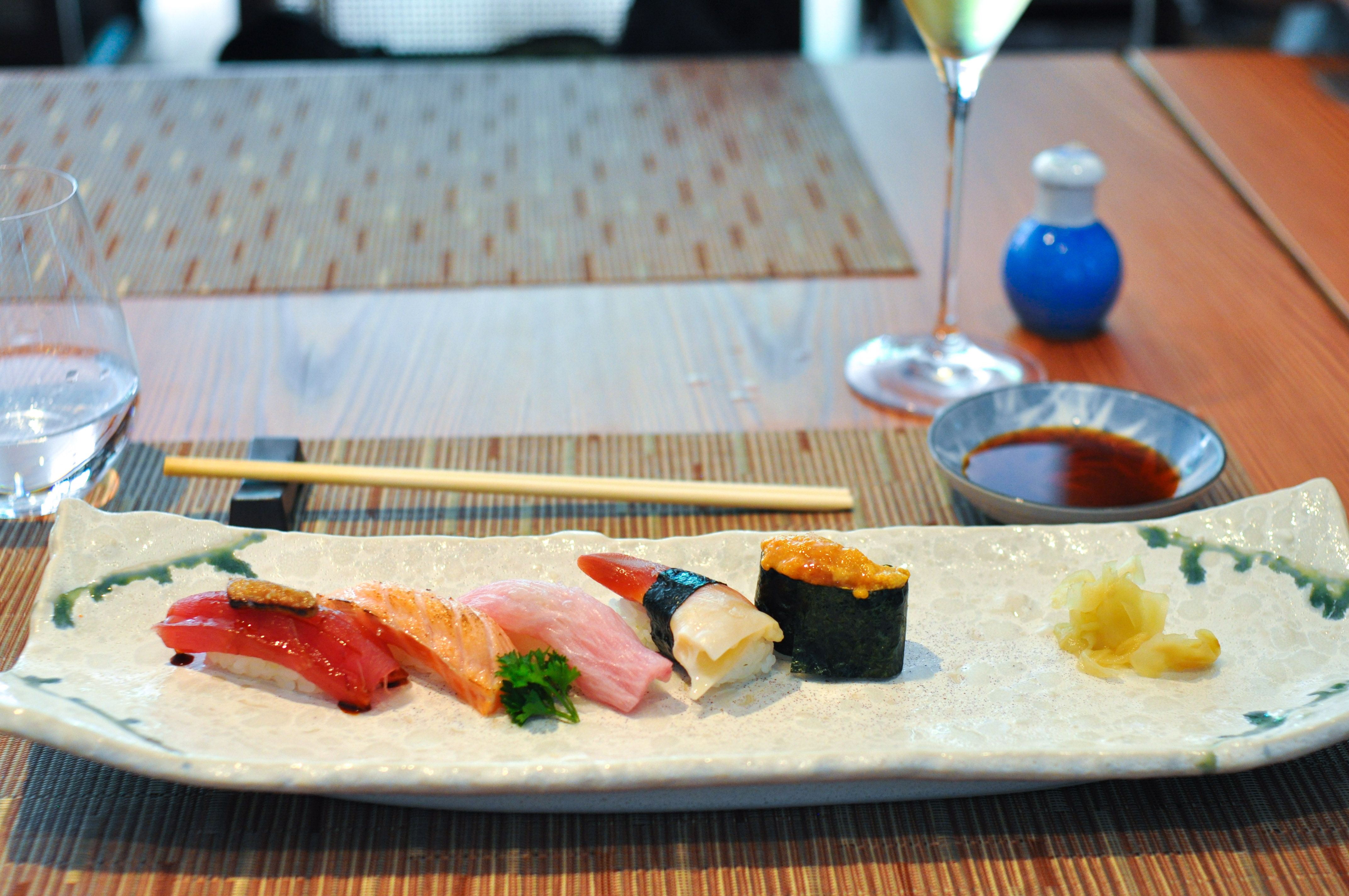 Kinoshita sushi. The tuna, foie gras, and teriyaki was decent enough. Salmon with white truffle oil was strong on the truffle taste. Yellowtail with fleur de sel was very nice with pure fish taste. Hokkigai surf clam had  great density with a good chew. The uni was fantastic and sweet. Accompanied by a subtle Japanese soy sauce.