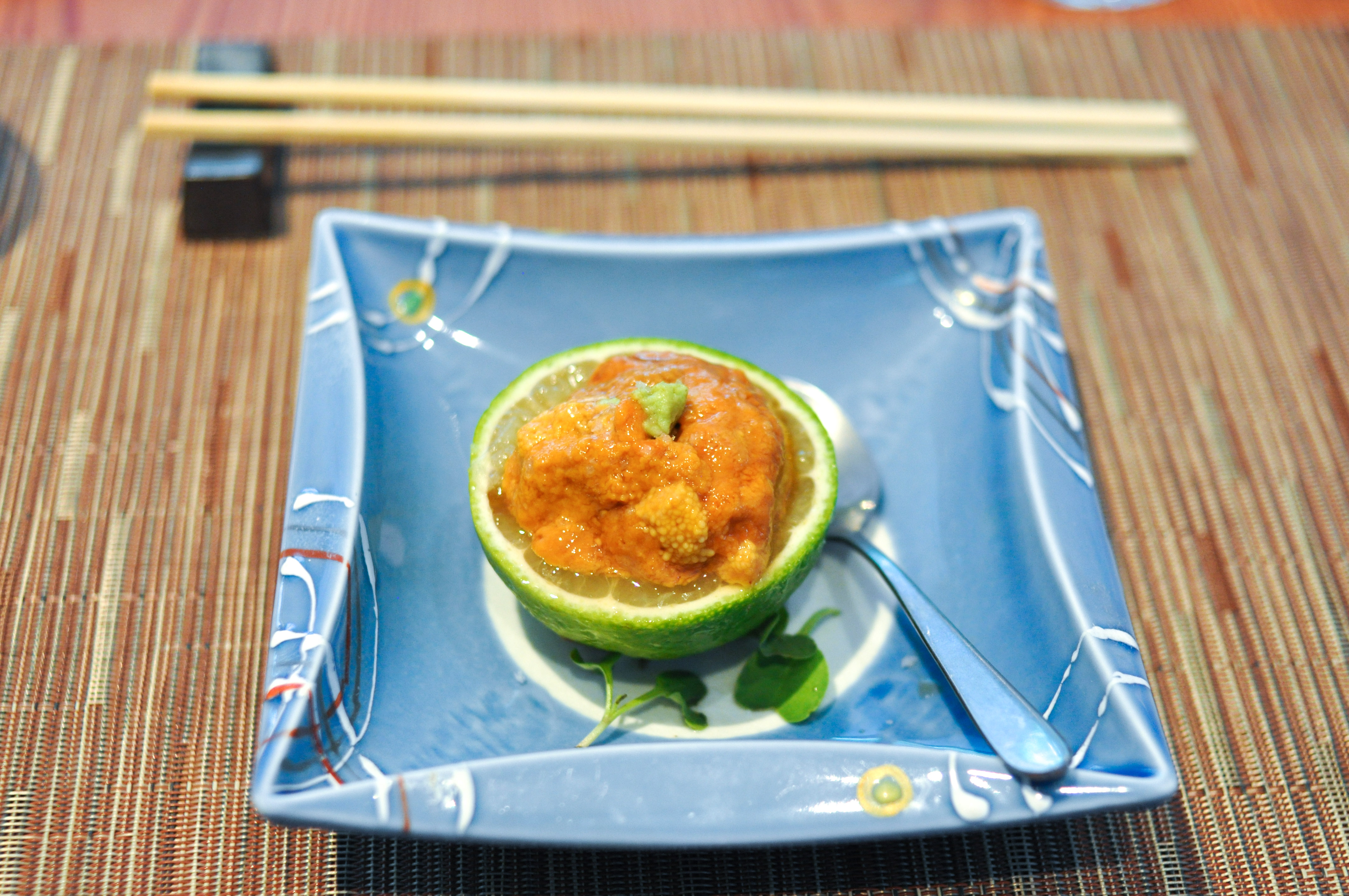 Uni in lime with wasabi. At first Marc Z and I both agreed the lime was too strong for the uni. Then we agreed again that a little wasabi balanced it all out really nicely.