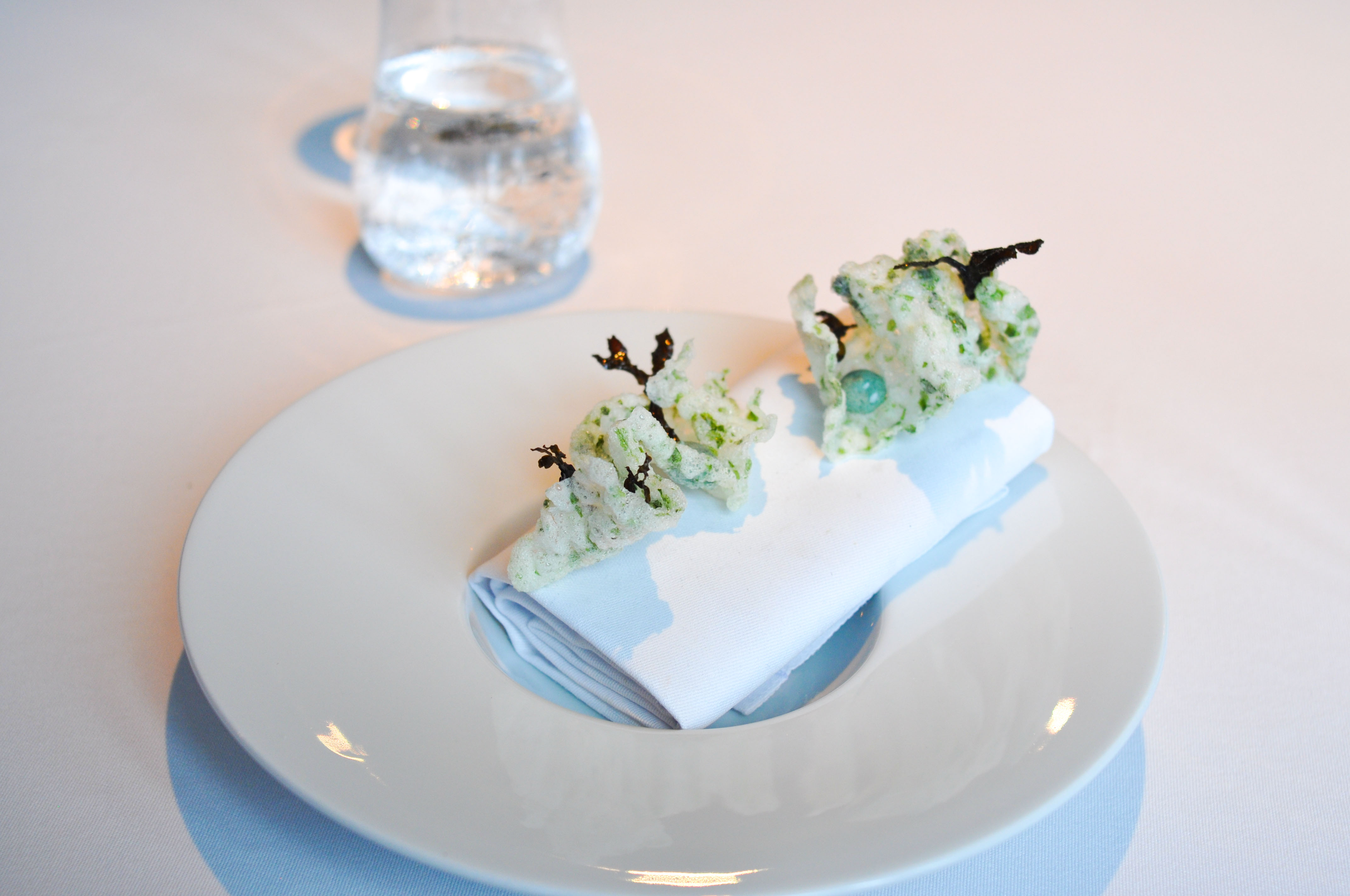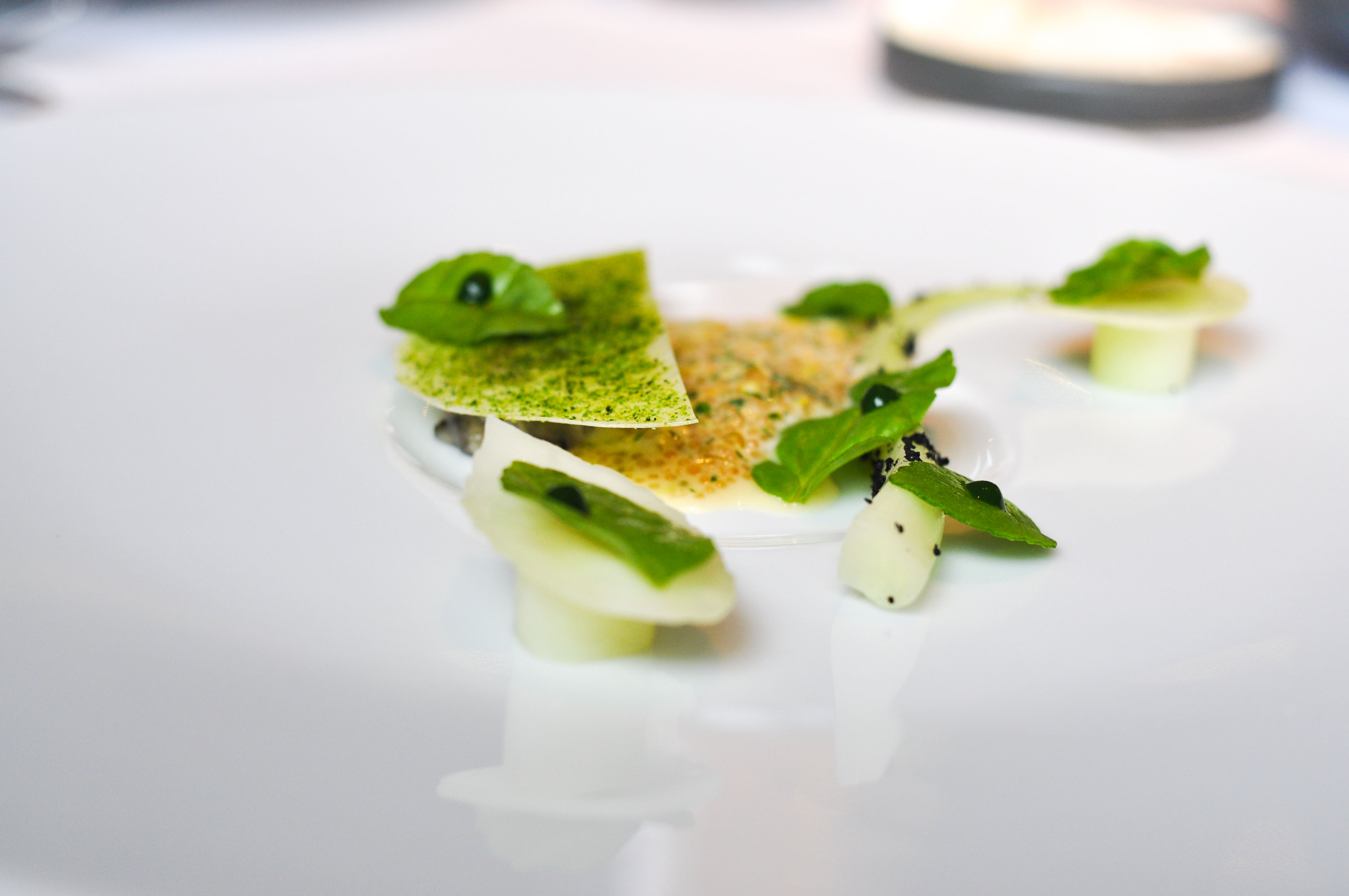 Dried courgettes and bitter leaves. Third course of the vegetable menu. I could be way off here, but I think they may have said that this zucchini was also dehydrated and rehydrated, then dusted with seaweed and salt. Rocky told me this was the only time she enjoyed eating zucchini that wasn’t baked into a cake.