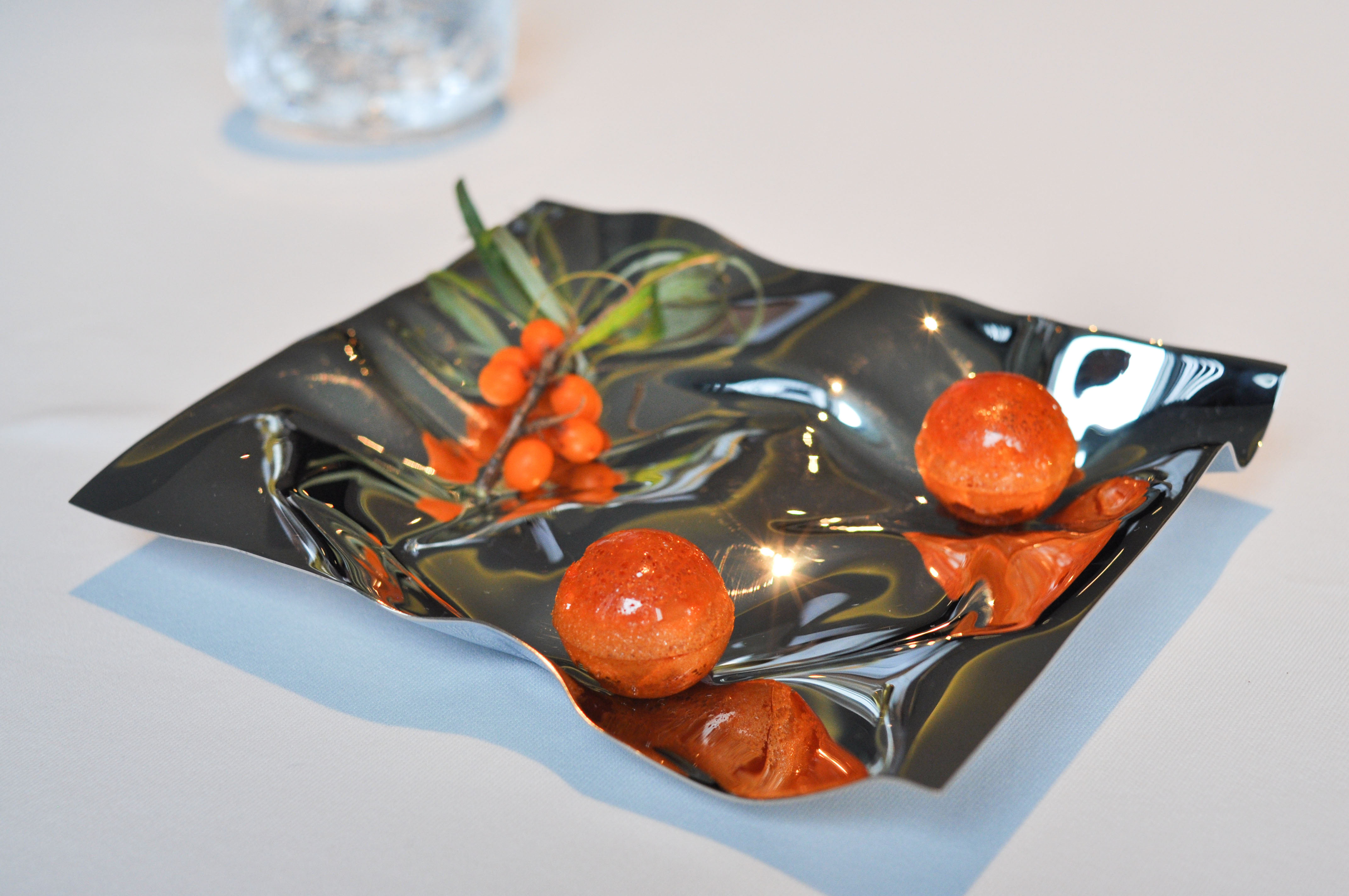 Söl toffee. Seaweed accented toffee on small pastry tarts. Small, rich bites to finish the meal.