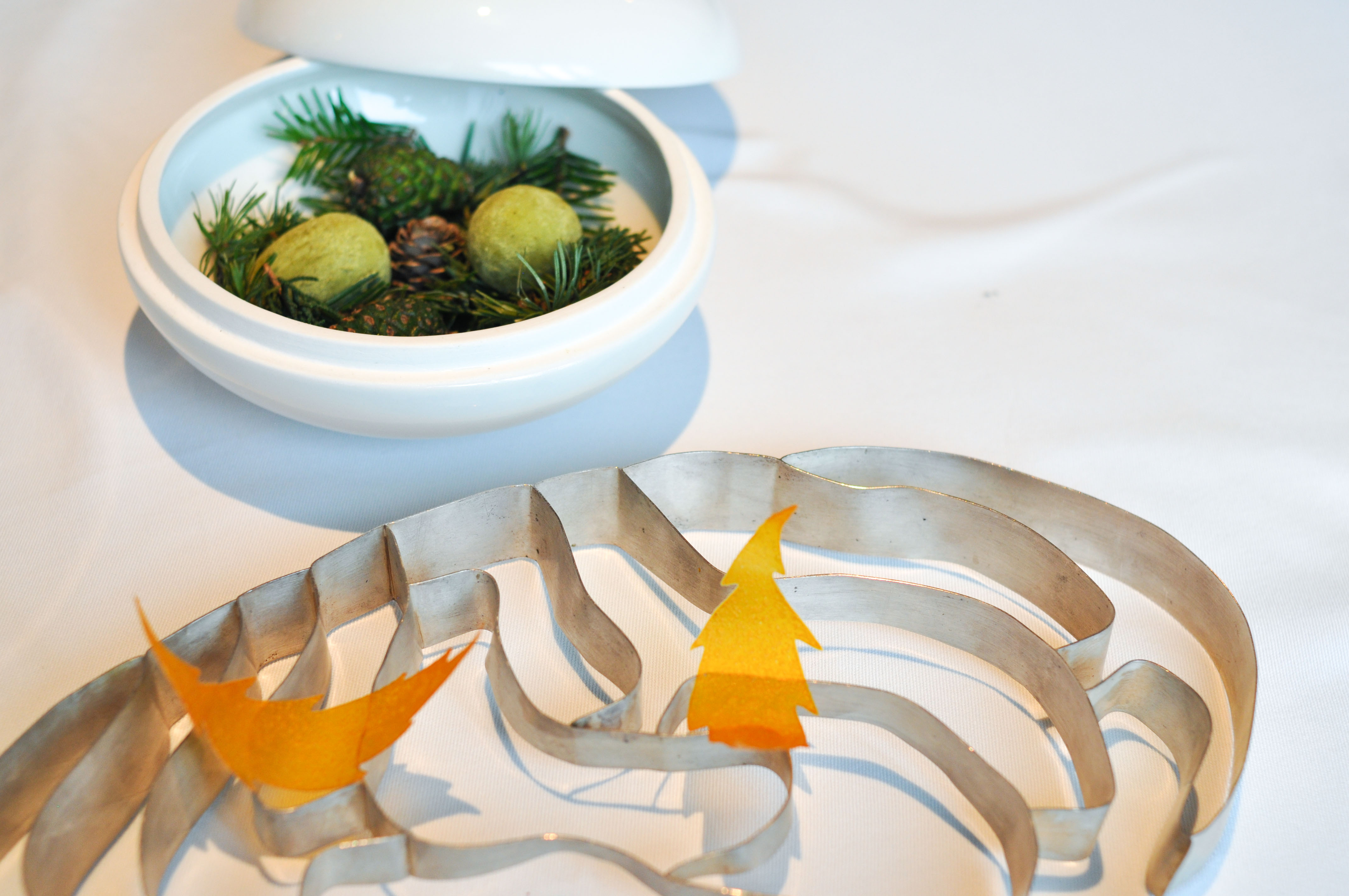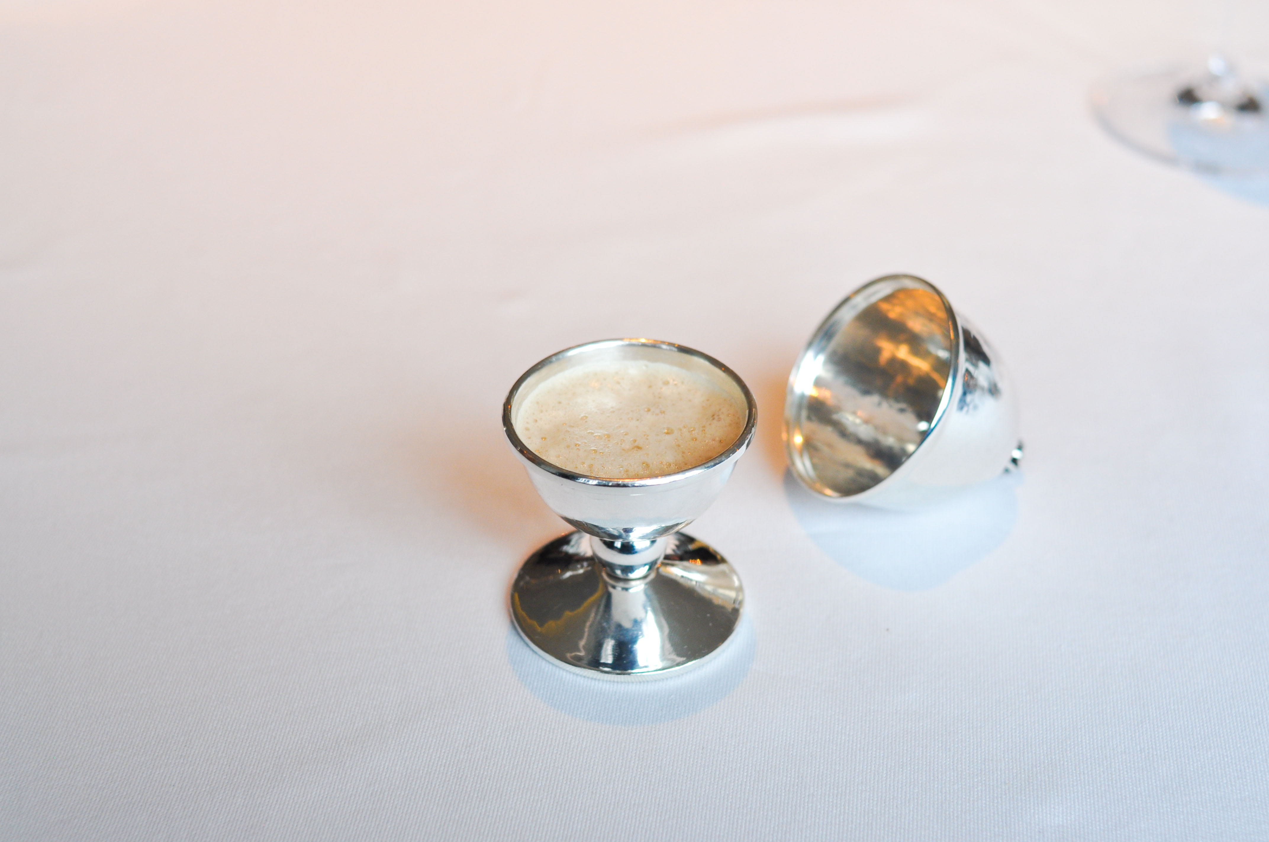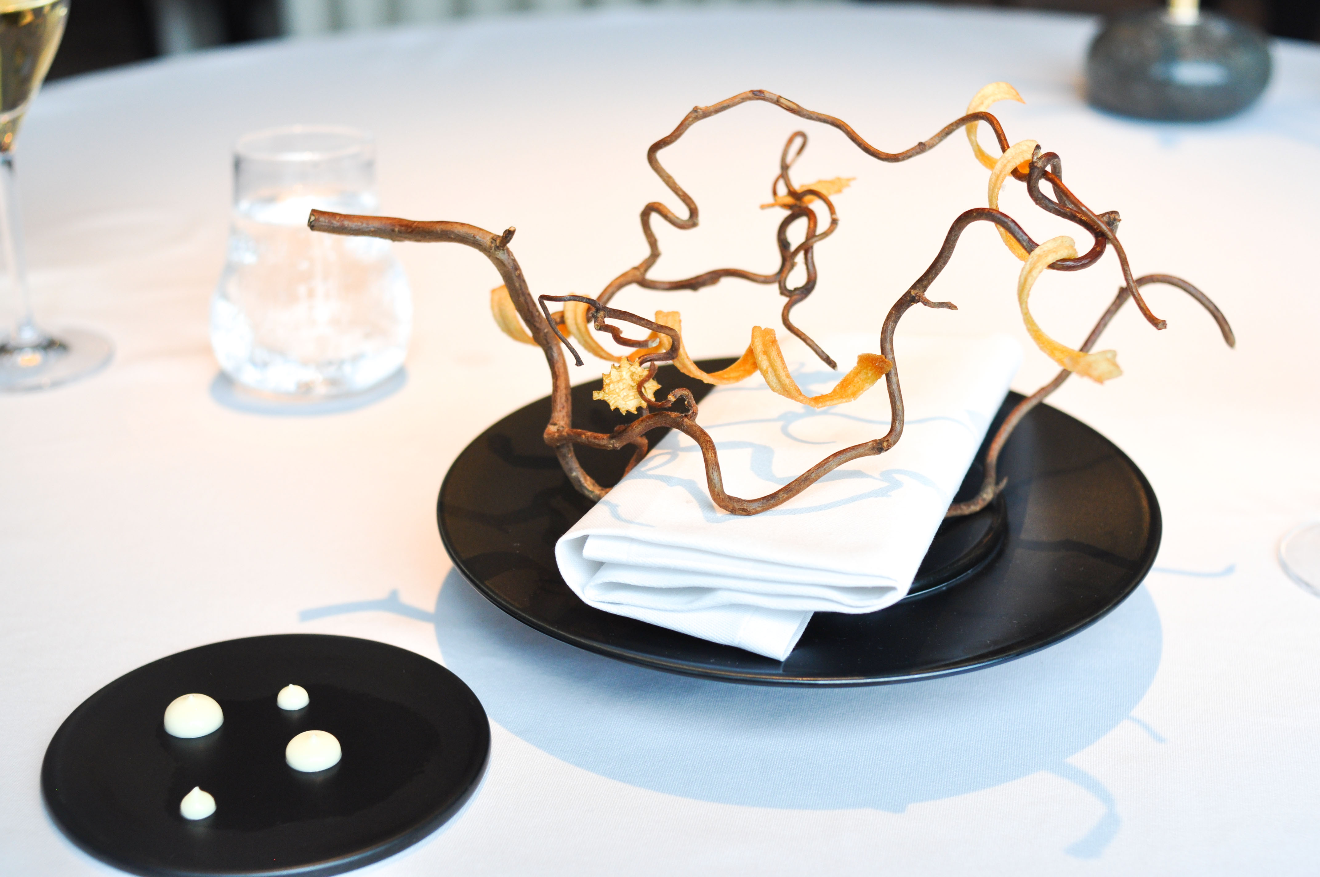 In front of each of us was a drawer containing a menu, napkin, and enough silverware to make it through the meal. The menu presented two options for dinner. Jonas The Dane and I ordered the chef menu and Rocky opted for the vegetable menu(which differed only in two of the four courses). Supplements were offered in three places, so of course, we added all three: a small starter, a cheese course, and a post dessert.