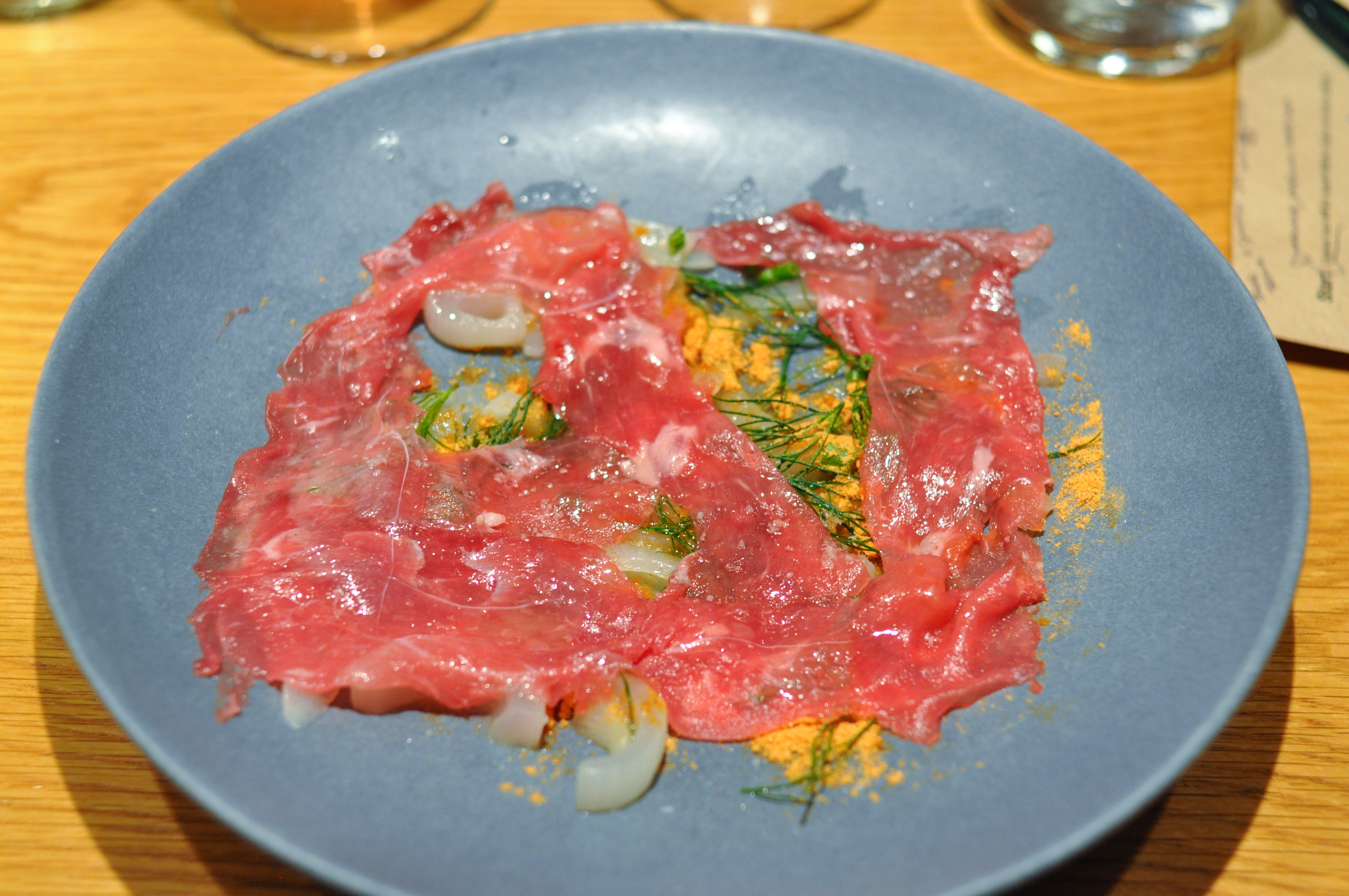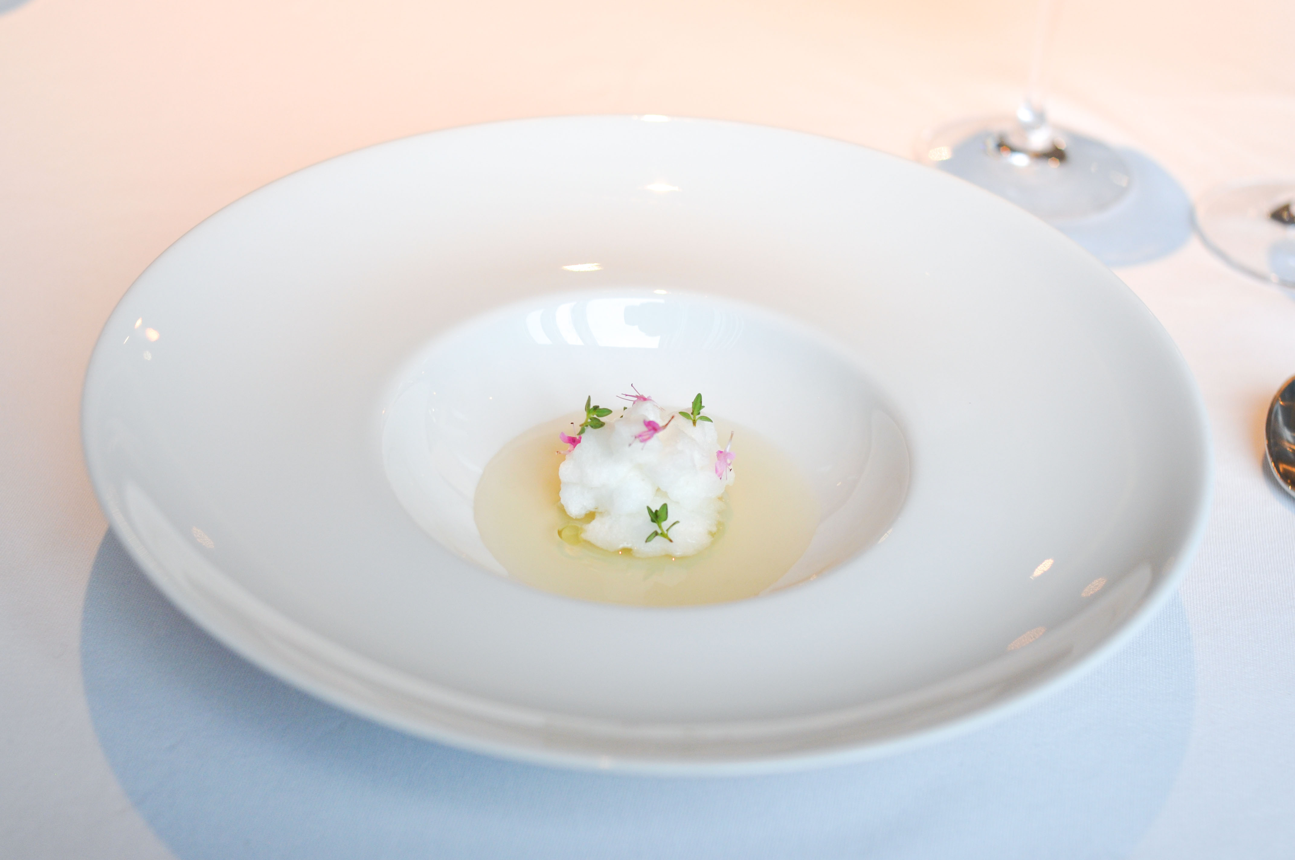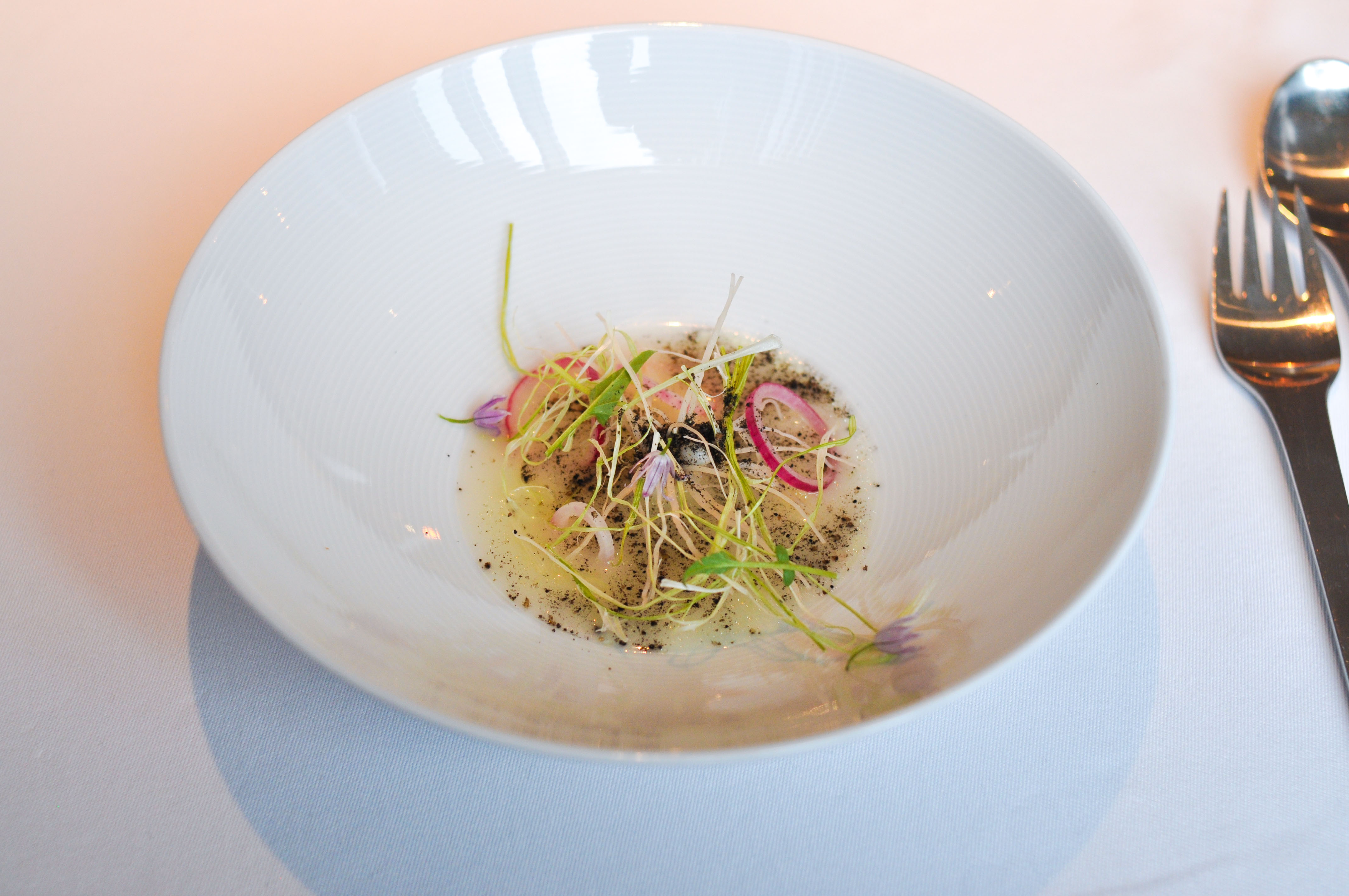 Eggplant, seawater and elderflower. First course from the vegetable menu. I had been on a stretch of having terrible eggplant dishes at great restaurants the previous couple months. When I saw Rocky’s dish show up, I thought the streak would continue. This however was fantastic. Nicely salted, good acid, and honest eggplant flavor.