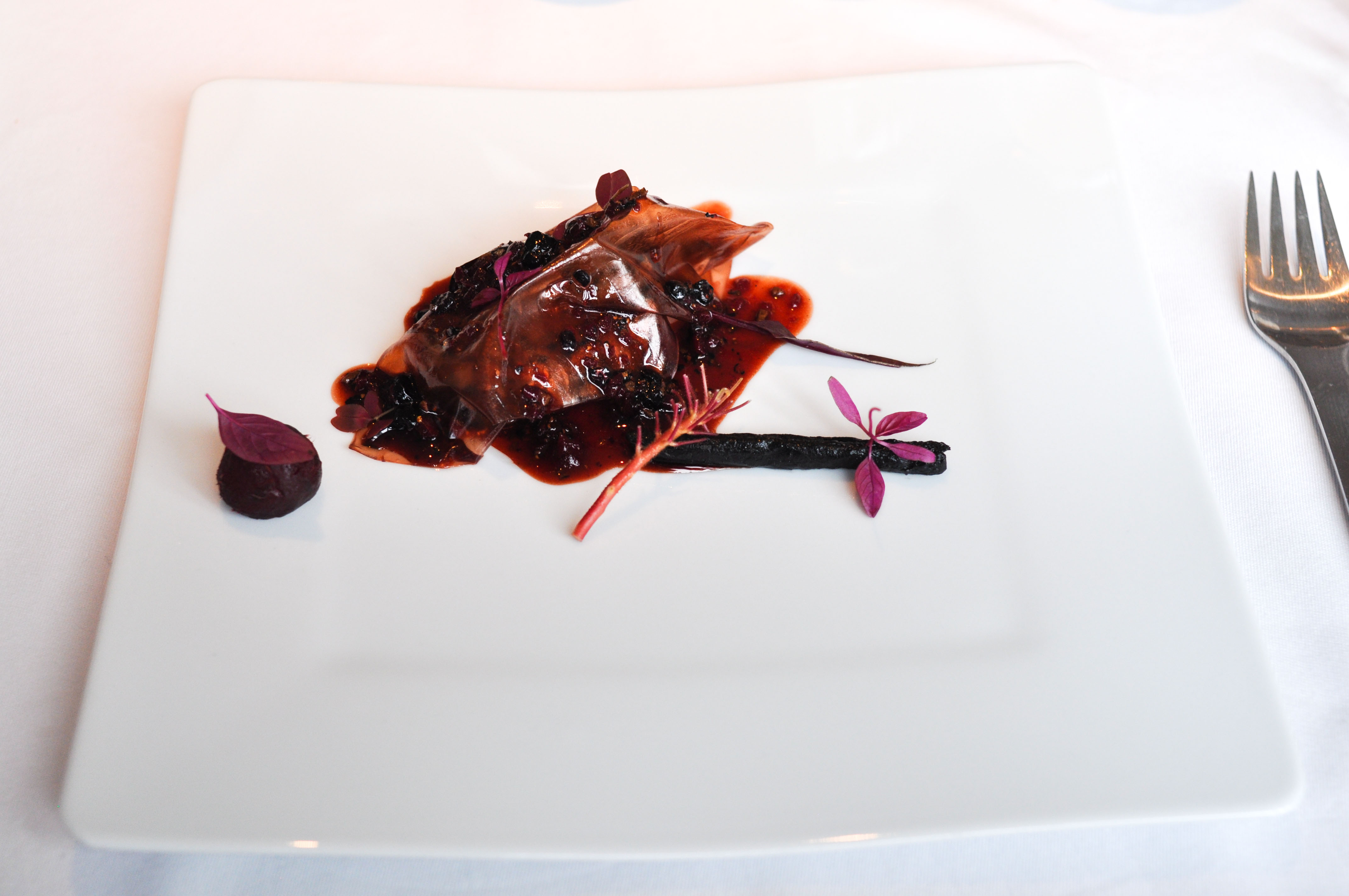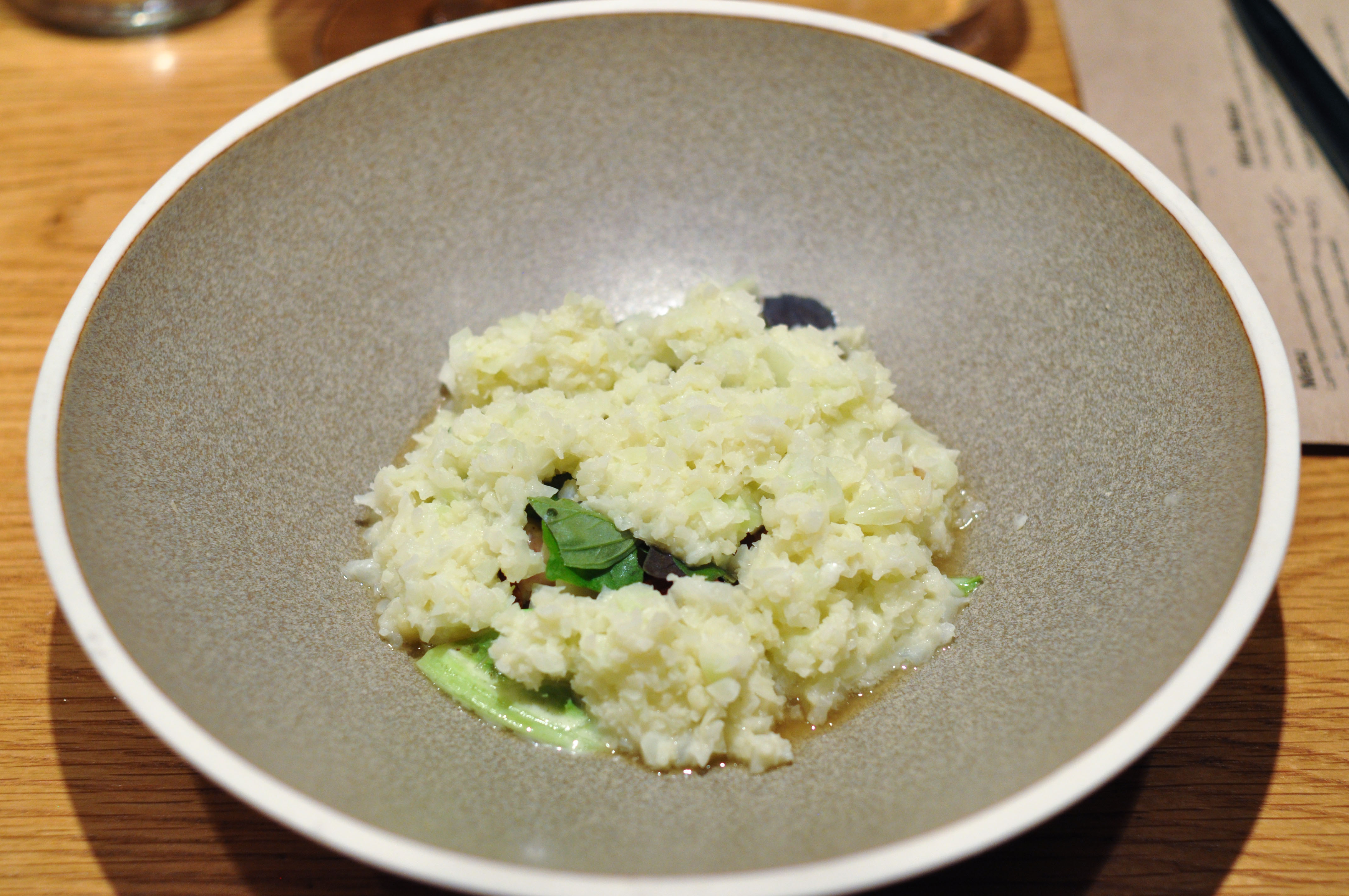 Veal sweetbread, cauliflower and basil. I love cauliflower. I love basil. Sometimes I like sweetbreads. Every now and then I love sweetbreads. I was astounded by how good this plate was. The glands were cooked perfectly. The chopped cauliflower was seasoned superbly. Taking the time to thoroughly chew these bites was a wonderfully rewarding experience.