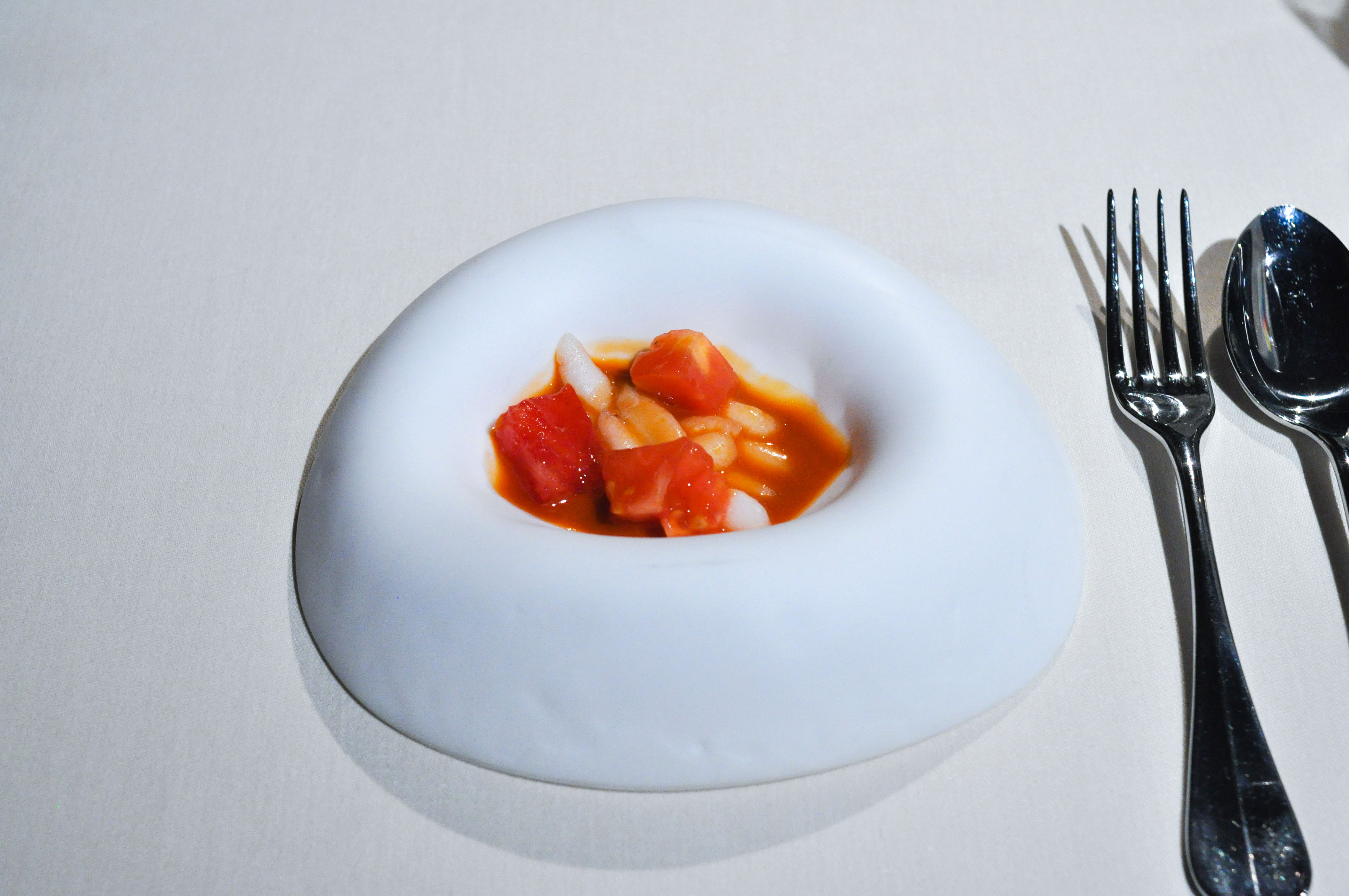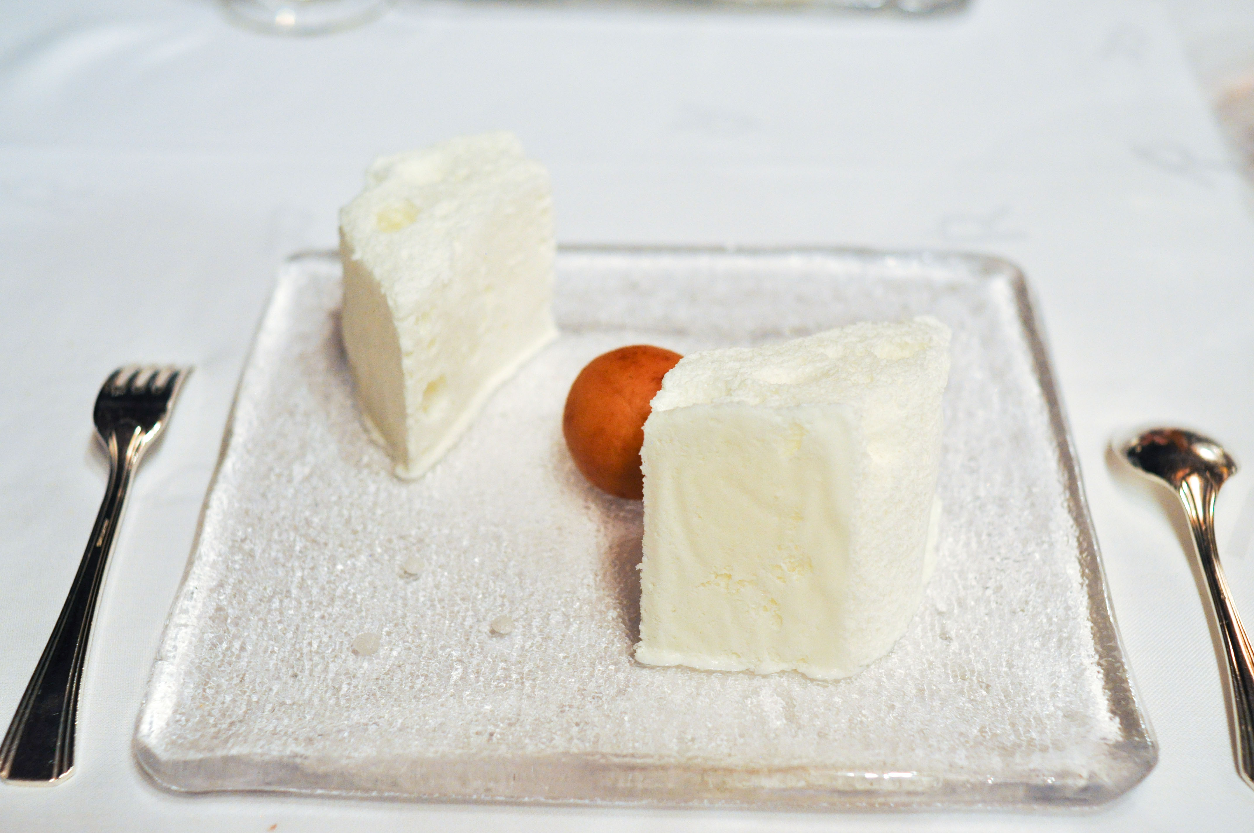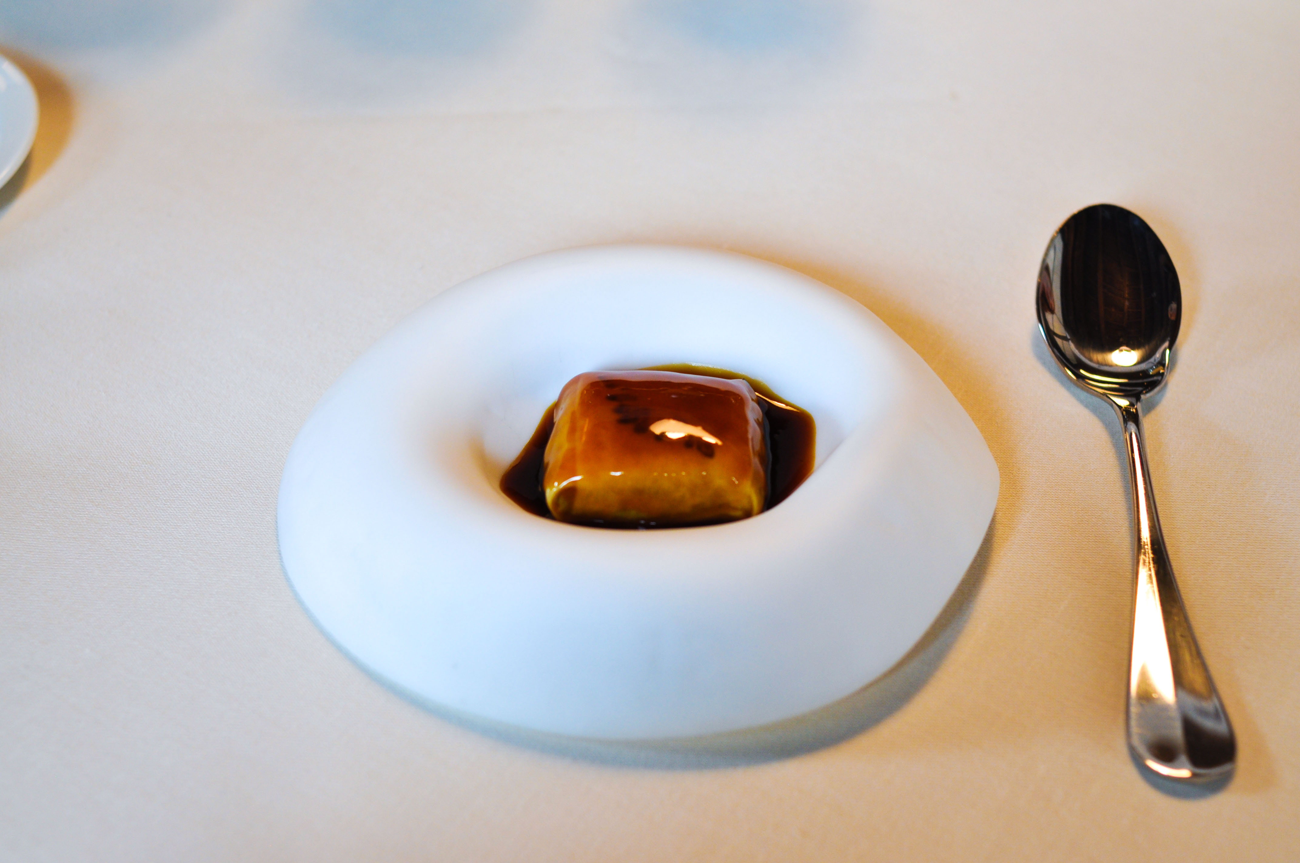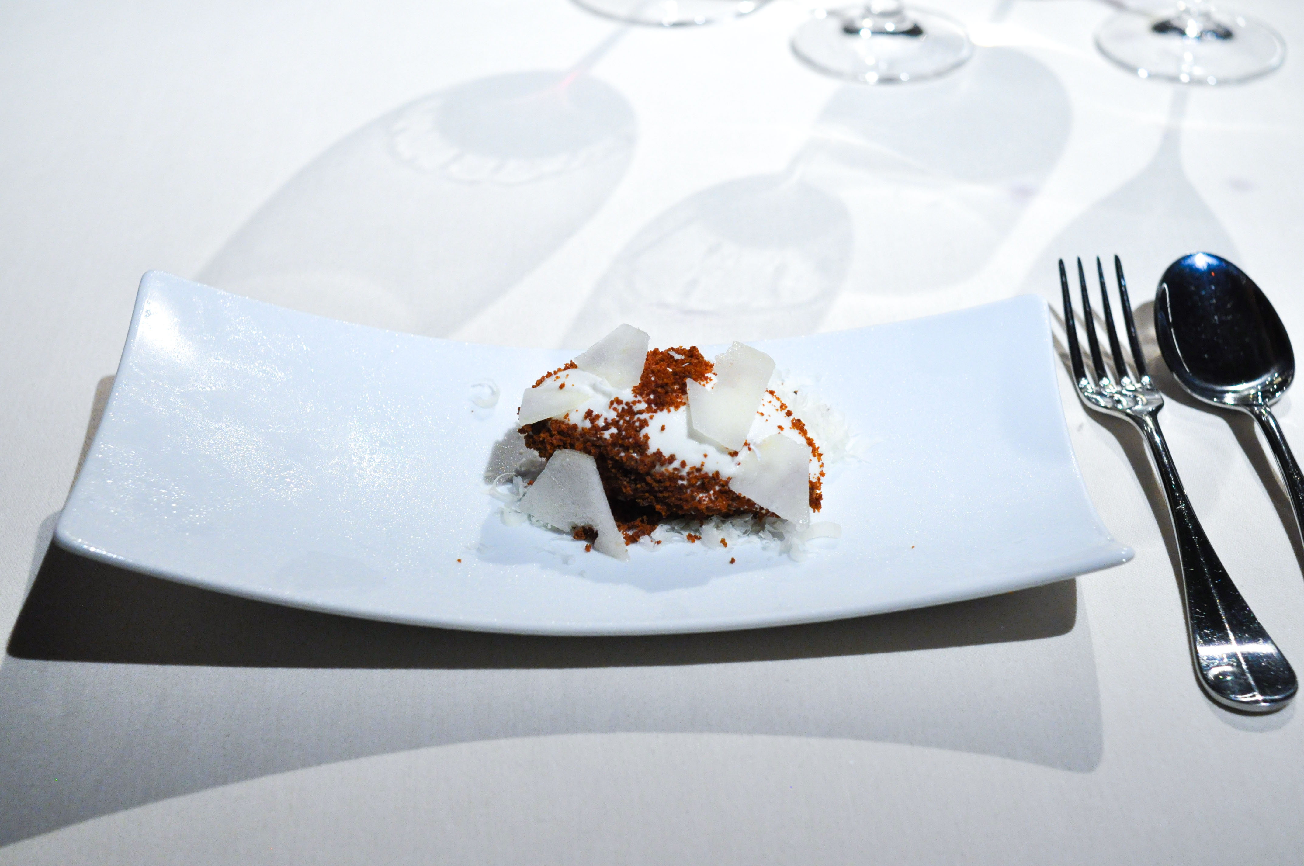 “Xaxu” and Coconut Iced Mousse. An egg and almond donut-like pastry served with light, aerated coconut ice cream. Rocky’s portion was at most half the size of mine and when the server dropped them, he teased her for having such a small serving(which she is still upset about). At the same time, Chef Subijana was arrogantly generously gracing us with a visit to our table and he also joked about how small Rocky’s dish was. Thanks Chef. I didn’t know what real hospitality was until you made fun of my girlfriend and the measly plate you served her.