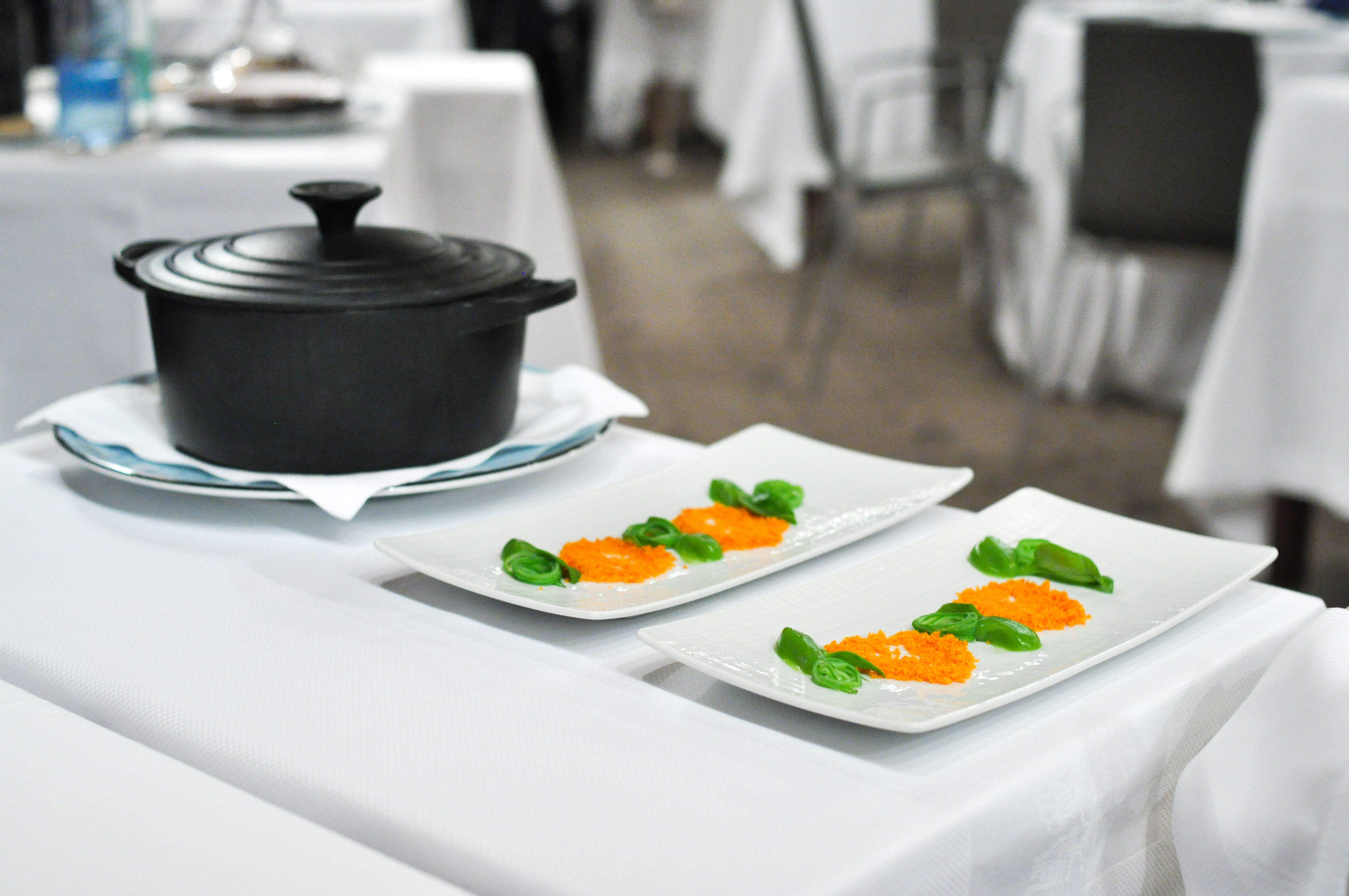 Prawns and French Beans cooked in “Orujo” Fireplace. Wonderfully juicy Spanish prawns cooked perfectly table side over lava rocks with Orujo, a Spanish spirit similar to Grappa. Served with green beans, green bean puree, and a crumble of shrimp shells and rice. A strong opener, and probably my favorite plate of the night.