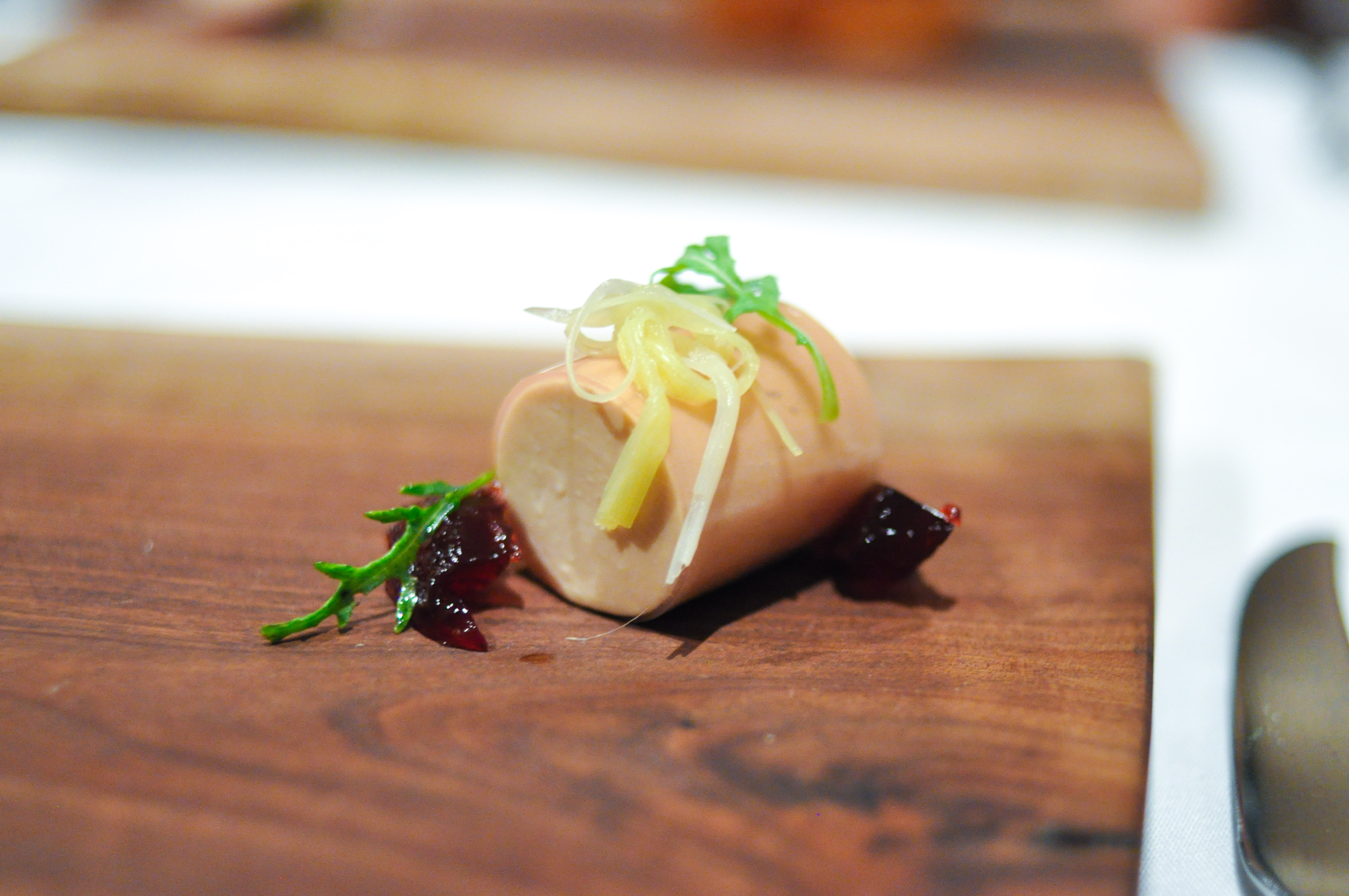 Foie Gras. Super smooth rich foie wrapped in grape gel with ash roasted leeks, hibiscus jelly, and a slice of brioche. Rocky said it was her new favorite ‘PB&J’.