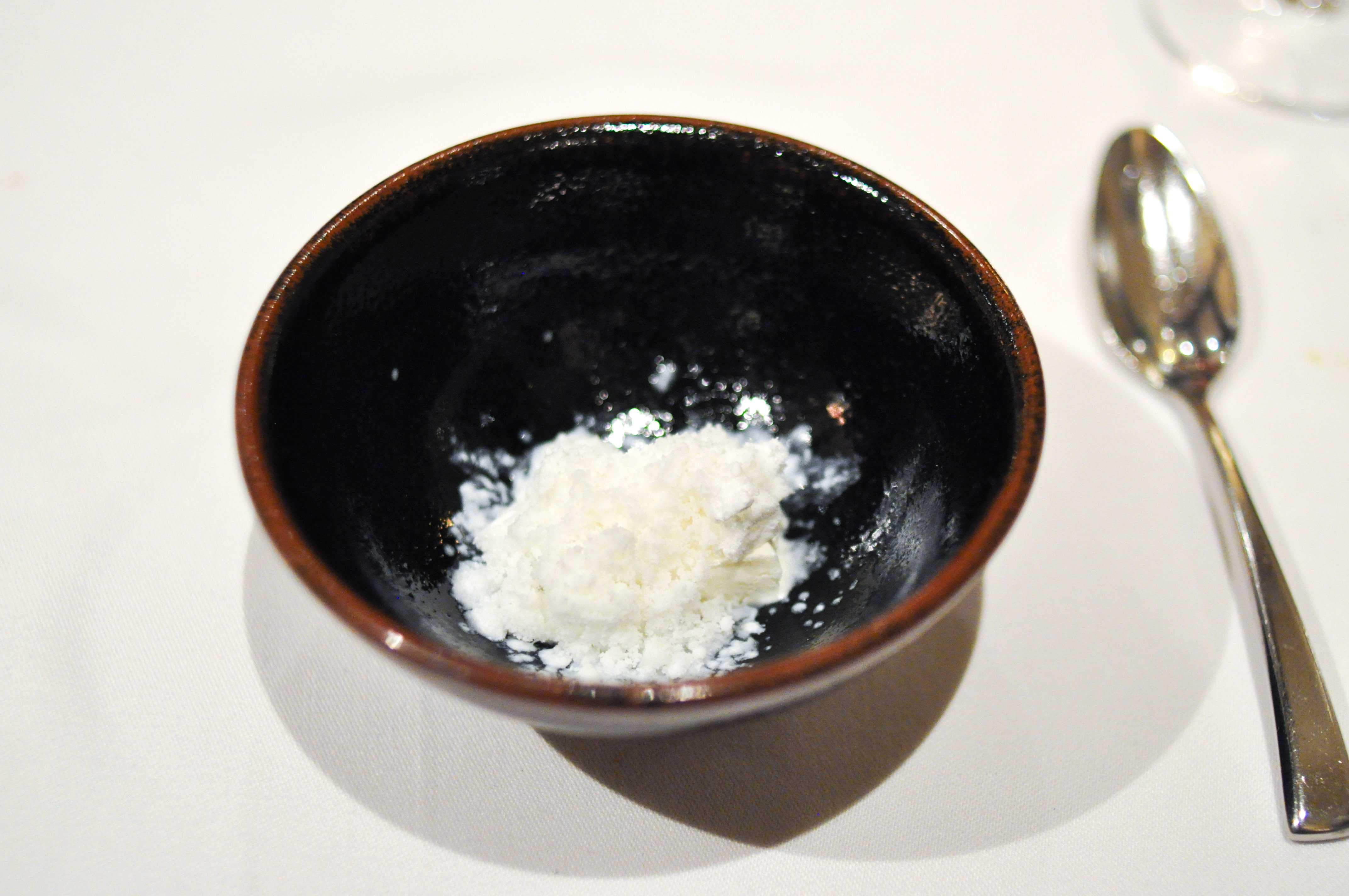 Cheese. Ossau-Iraty, a Basque sheep’s milk cheese served warm with a crumble of Thai Long pepper, Japanese barley, and a rich, earthy chicken and black truffle sauce.