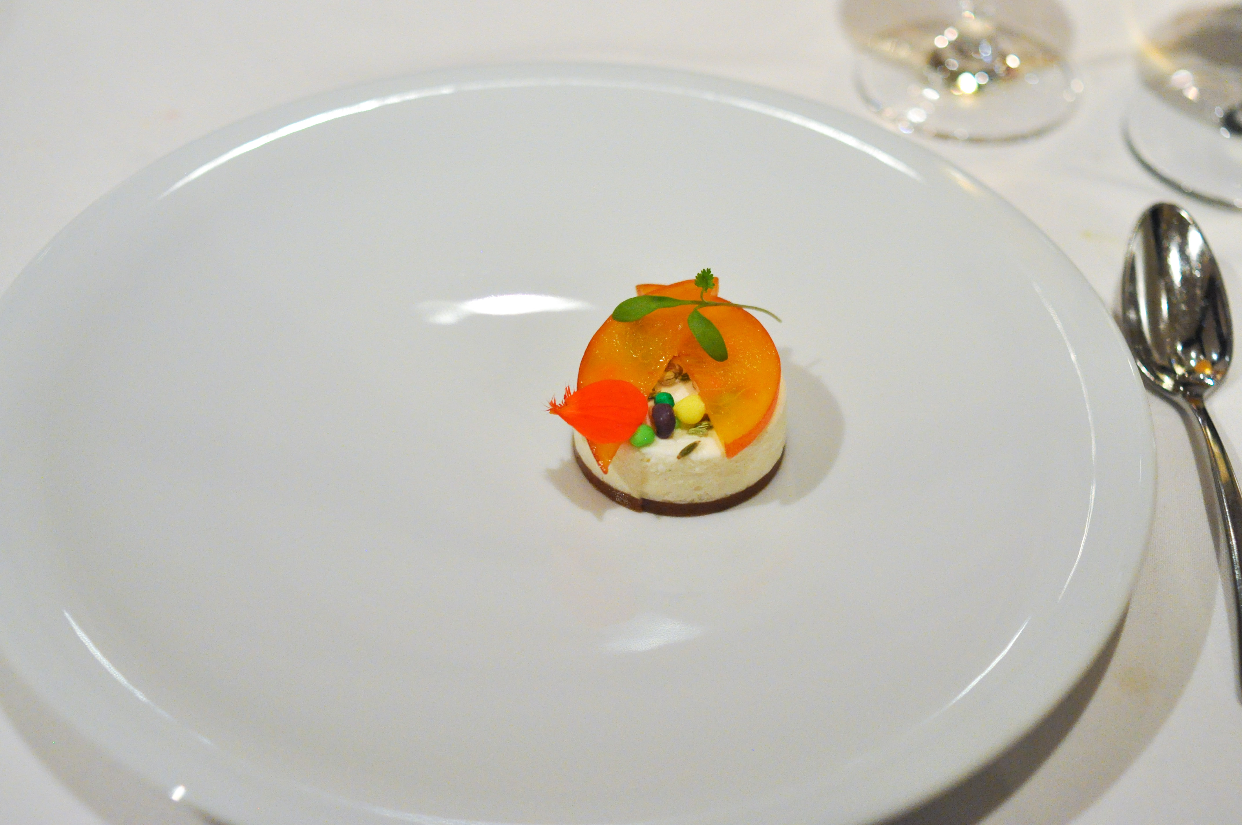 Bavarois. Sheep’s milk bavarois with compressed peaches, sable, and nerds. Delightful. An incredible composed dessert.