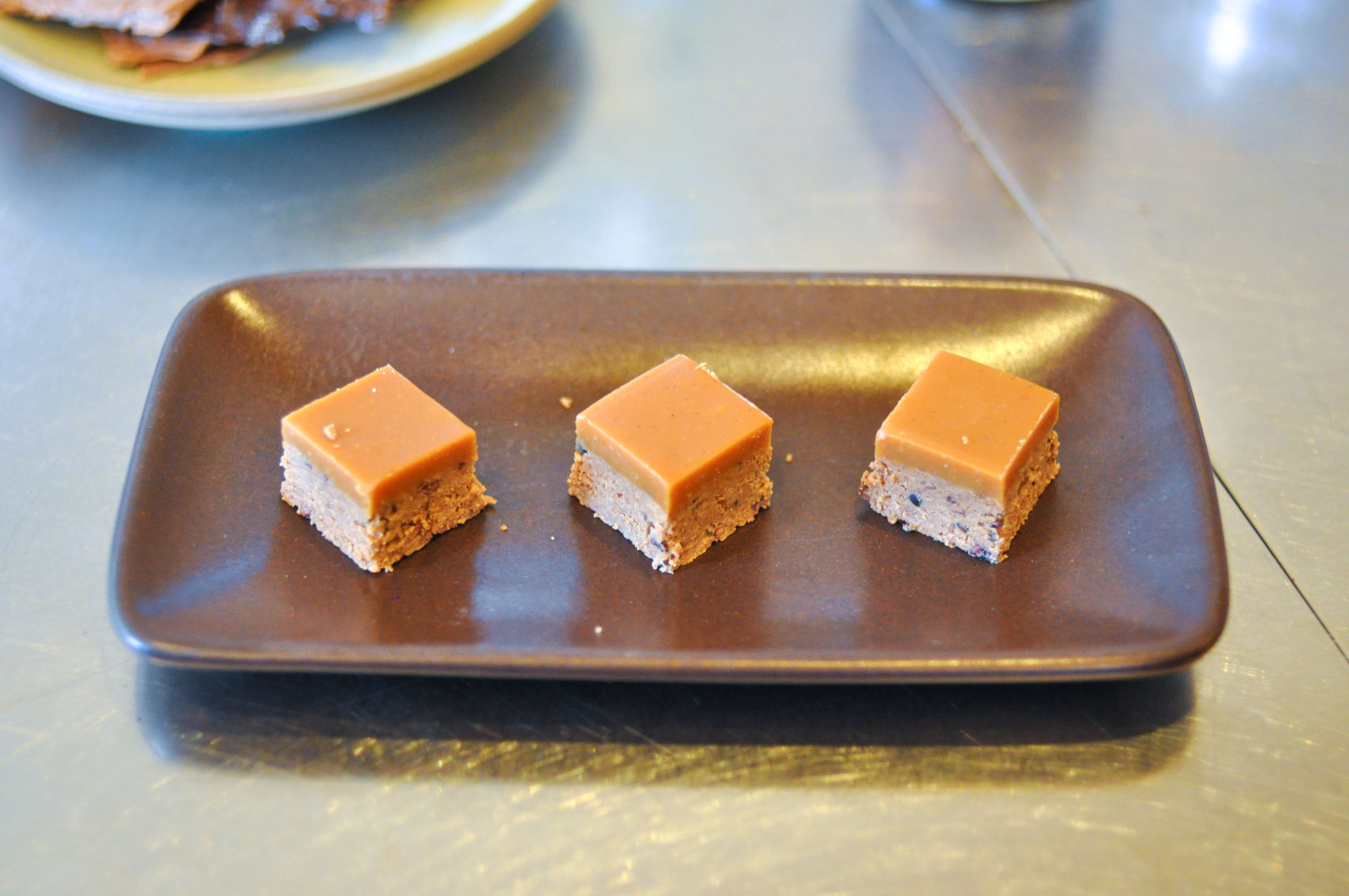 Nutter butters. These little guys were effing awesome. A crunchy, buttery, striated base studded with cocoa nibs with a caramelly top.