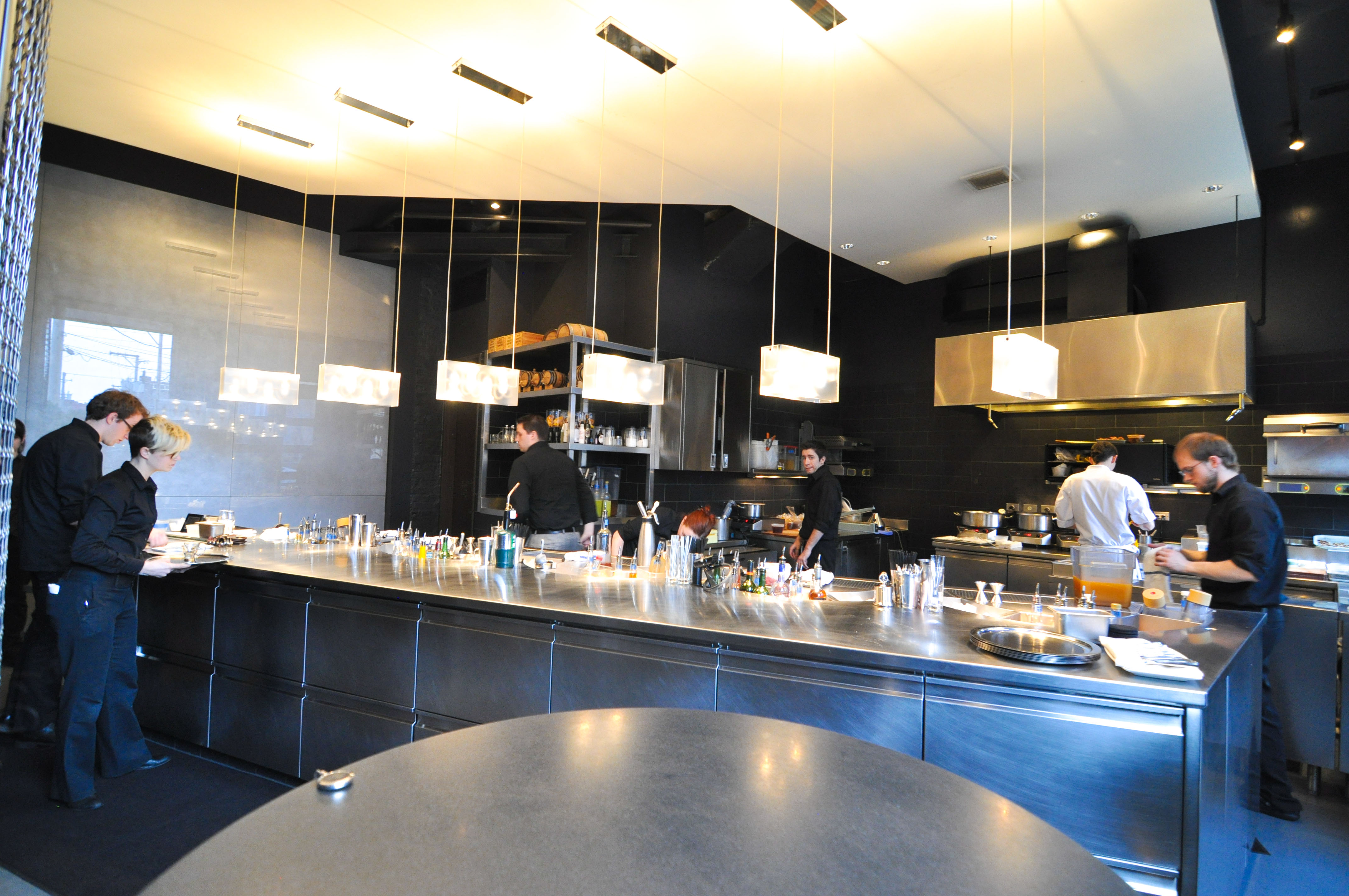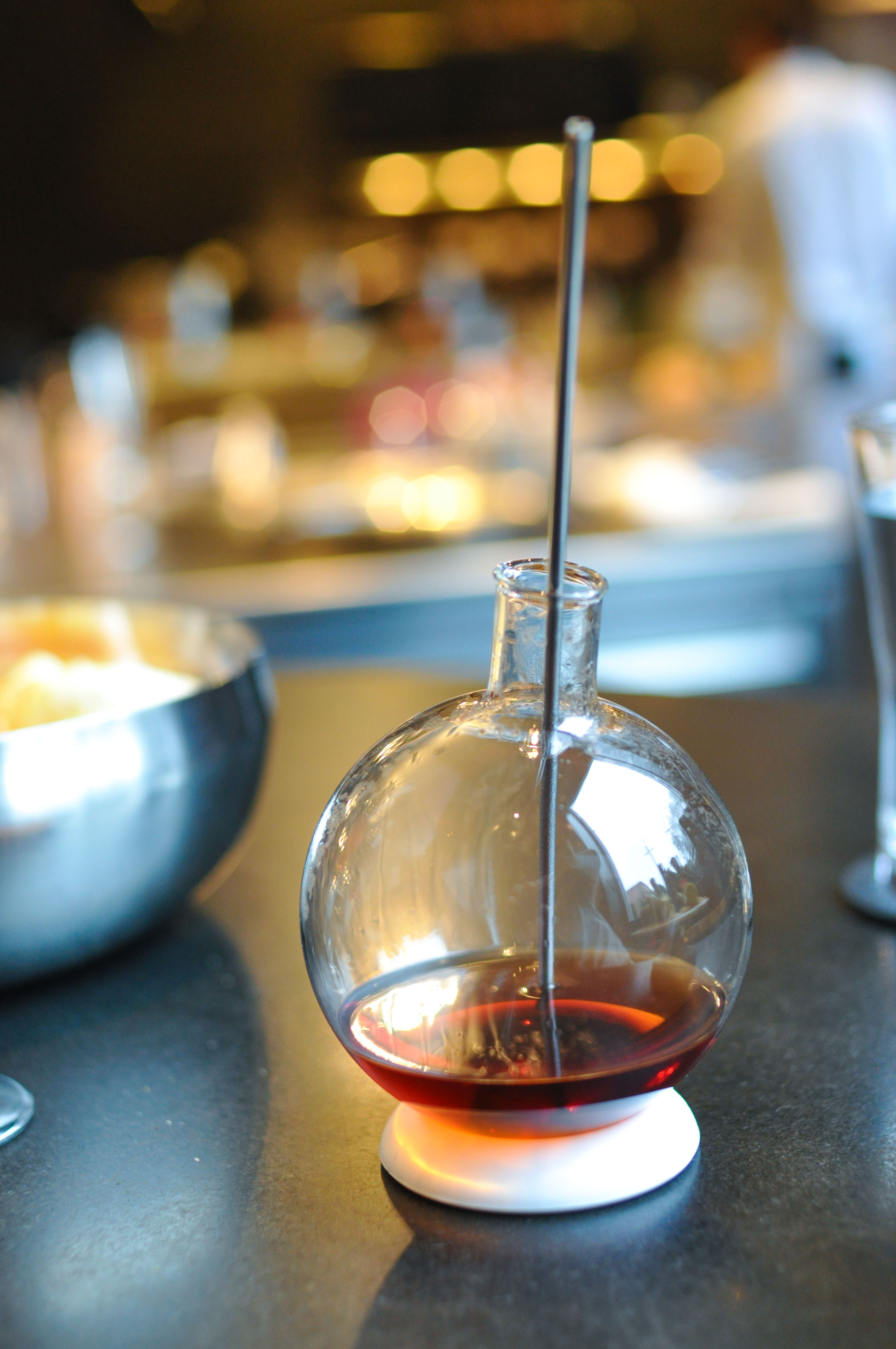 The experience at the chef’s Kitchen Table is billed as a 10-course cocktail tasting with food pairings. That’s f*cking sweet. We arrived, curious and eager with anticipation, and were escorted to a small round high-top table in the corner of the kitchen, facing the pass.