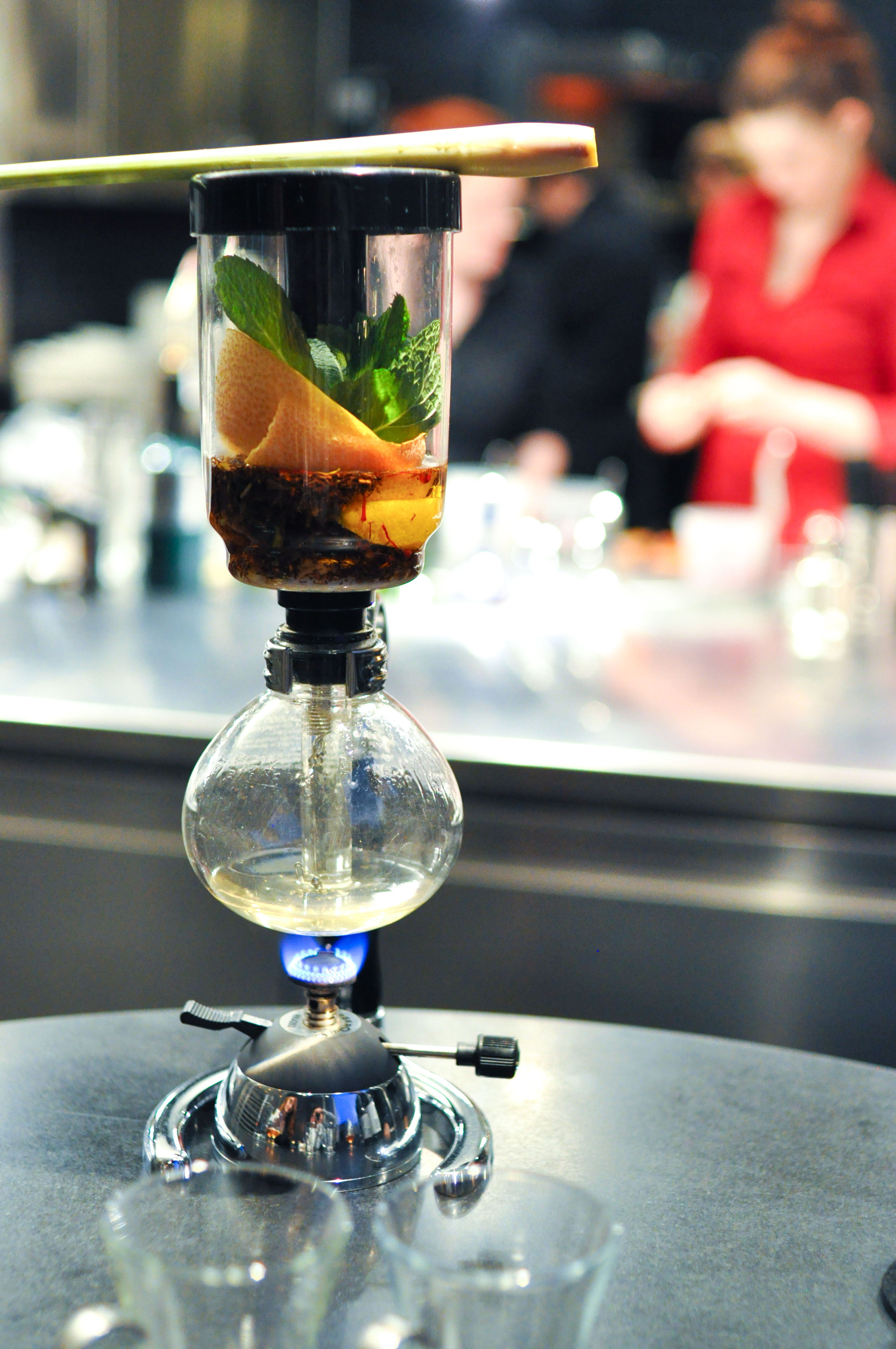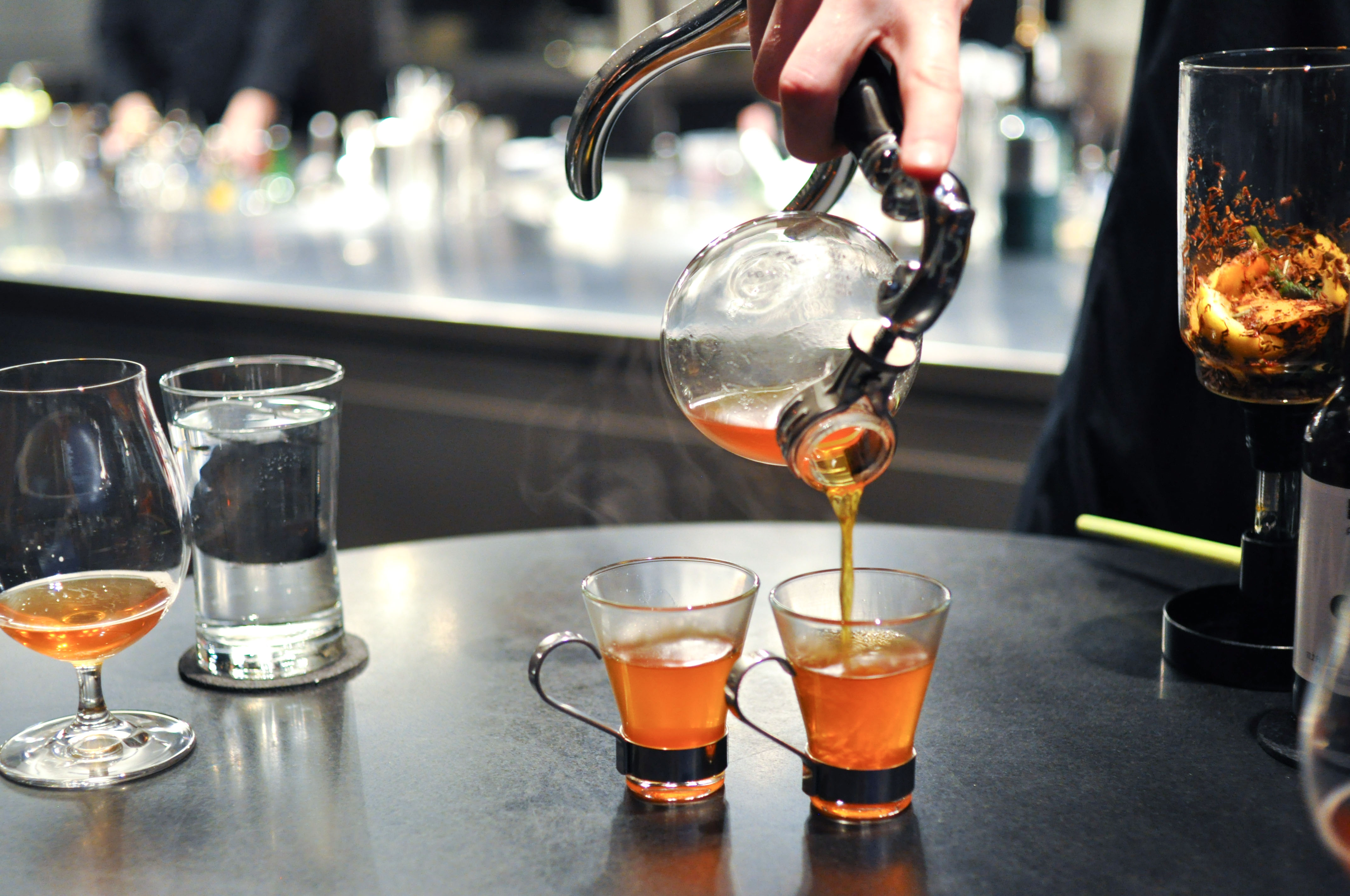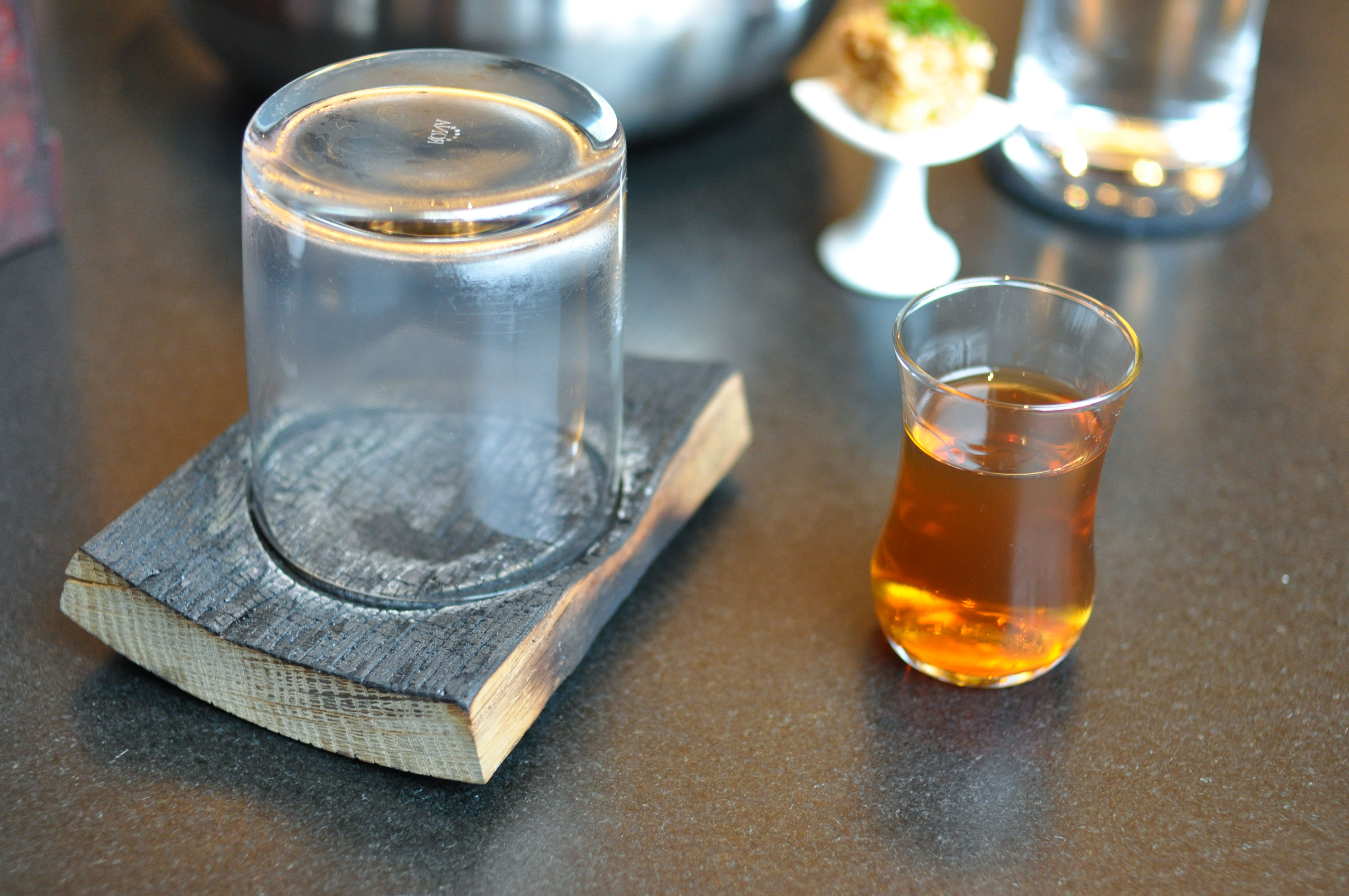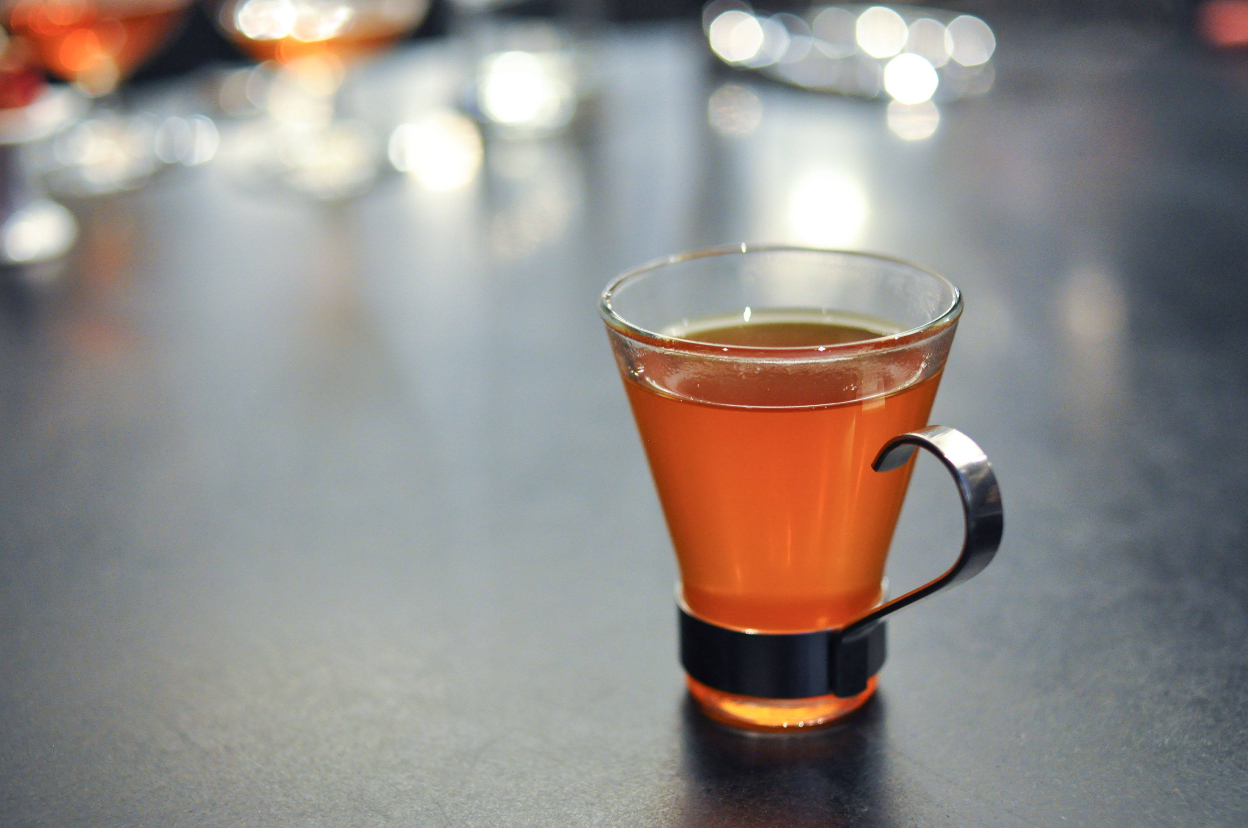 Thai Mountain. Saffron, rooibos, maraschino, reposado. With orange peel and tonka bean. Served not quite hot. A great depth of warm spices.