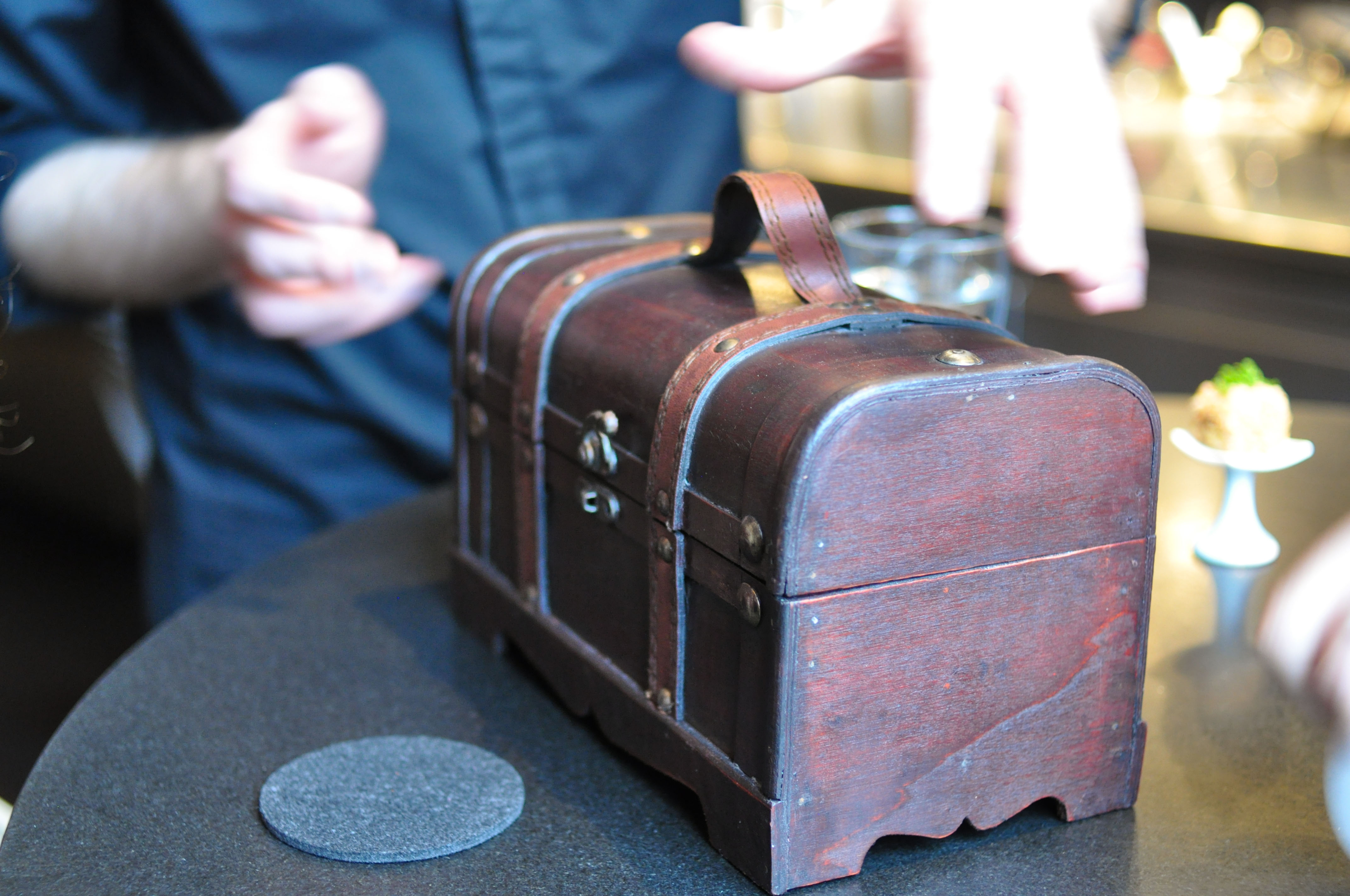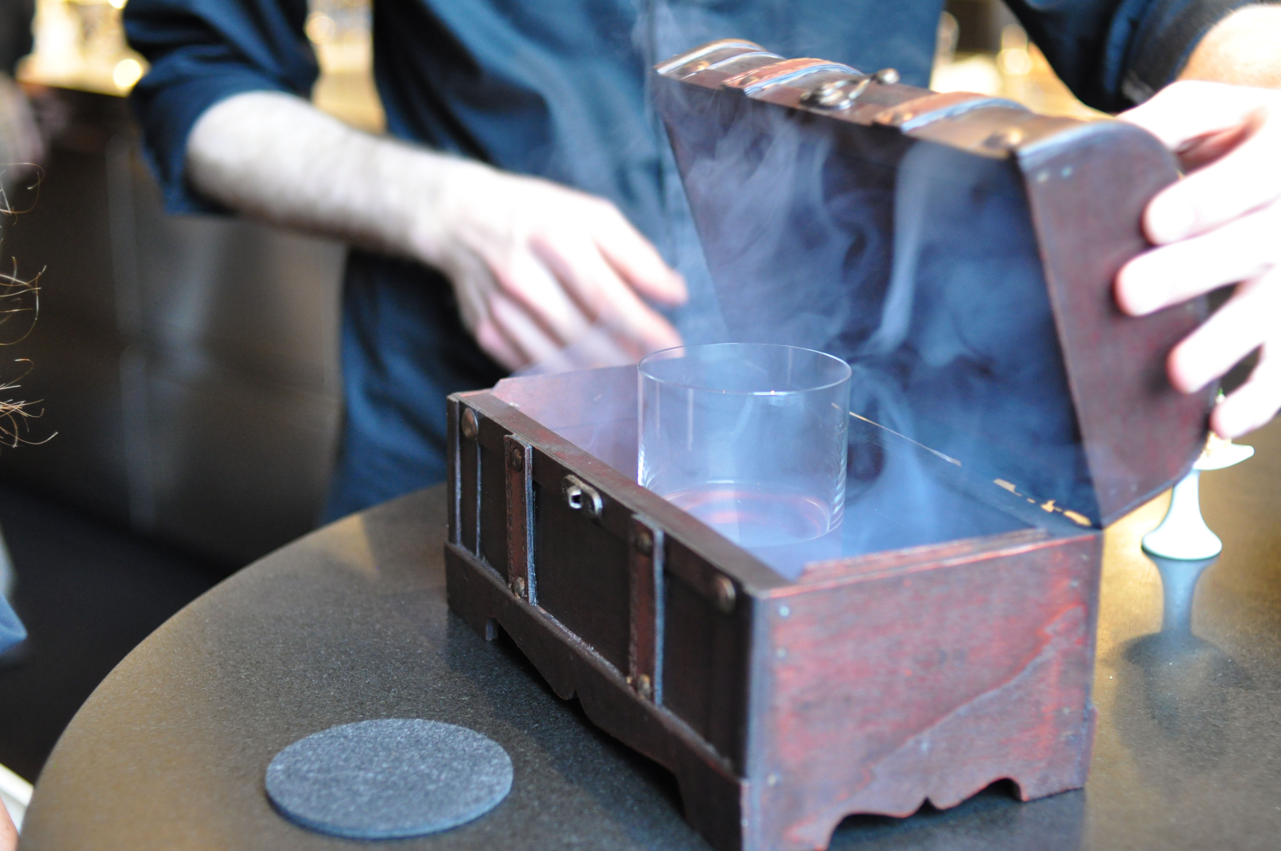 Infernal Imagery. Barolo, maurin quina, rhum. Served in a smoky treasure box.