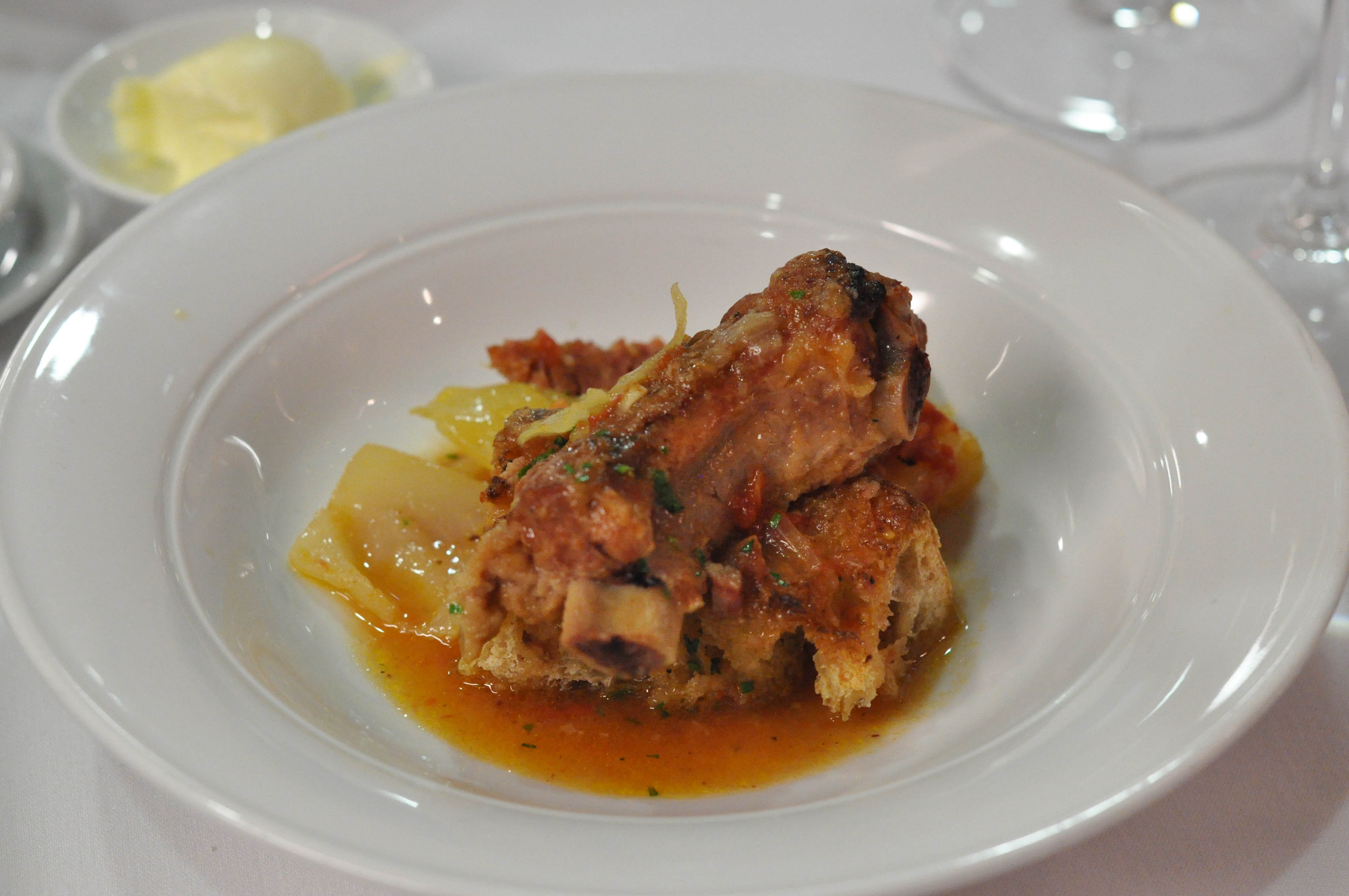 ‘Casöla Bergamasca’ – Pork Rib, Sausage, Cabbage, Filone. This was a winner. For a moment I thought it may be too heavy for its place in the tasting, but it was a spot-on perfect blend of richness, stewed vegetal flavor, saltiness and delicate acid. I could have knocked back a few more of these finger-tender pork ribs without skipping a beat in the progression. St Michael Eppan Lagrein was the matched wine here. For this dish, I would have opted for more intense tannin for the pork fat, but the clean, fresh minerality and light berry and earth flavors of the Lagrein shine a few courses later in the meal.