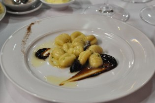‘Gnocchi alle Susine’ – Traditional Friulana Pasta. We were told this was the most traditional, typical dish of Friuli. Potato Gnocchi with Plum Sauce. The gnocchi was superbly textured and flavored. The plum added a full, sweet, almost jammy flavor, which complemented, but didn’t overpower the pasta. Matteo Correggia’s Barbera d’Alba: ripe dark berries, earthy herbaciousness, and slight oak, made for a great back-and-forth between wine and cuisine.