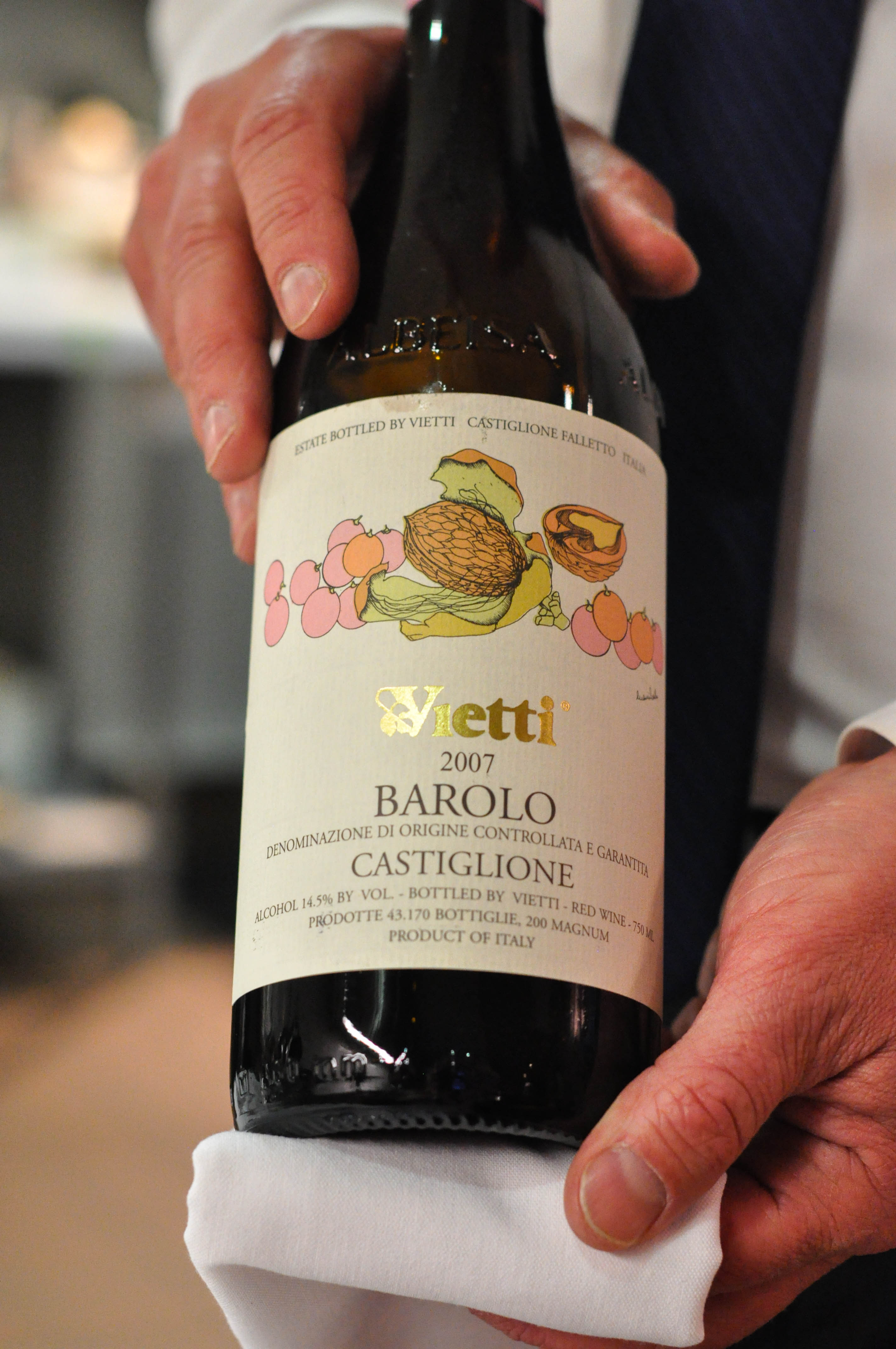 Now for a supplement. Neutral risotto with shaved Alba Truffles. The risotto, perfectly executed and plated on the table, acted as a vessel for the feature, offering a light snap of texture and heat to get the aromatics going. The white truffles of course speak for themselves. Worth mentioning are the fair generous supplement charge, and the treat of a pairing. 2007 Vietti Barolo Castiglione. I was worried this young wine would be holding back, but the nose was full of cherry, violet, mint, and tar; a great compliment to the earthy nose of the truffles. The palate was still full, with smooth tannin and fresh acidity that balanced the high alcohol.