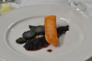 ‘Salmone’ – Alaskan Salmon, Red Wine, Sage and Potato. A mildly flavored cut of salmon. Purple potatoes(I assume blanched and roasted) treated with a helping of herbs. Carrot, onion, and red wine soffrito. Earlier, when drinking the Lagrein, I mentioned to The Bro: ‘This is the type of wine I was looking for to pair with that Arctic Char a few months back.’ So how fitting it was the wine re-emerged as the match for the salmon. The light fruit, earth, and mineral notes I mentioned earlier were ideal with the fish and sauce.