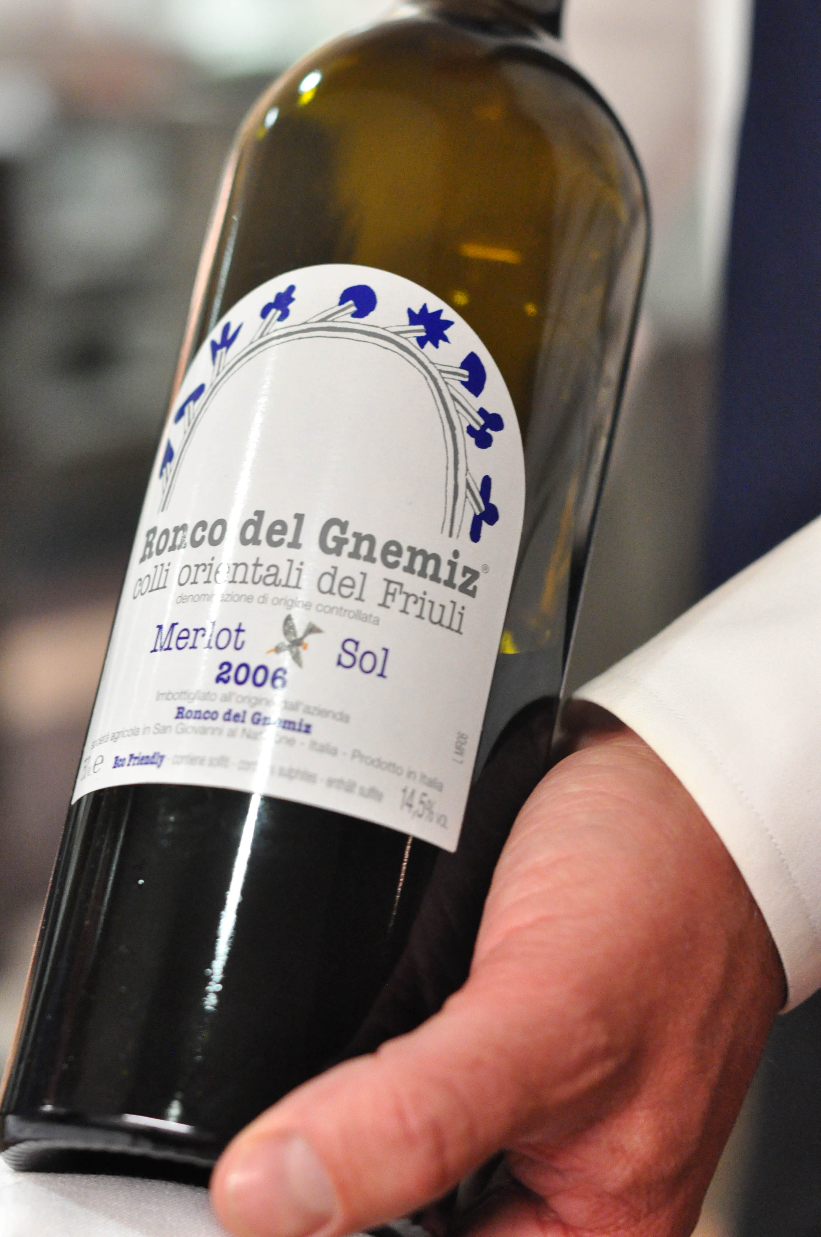 ‘Maiale Arrosto’ – Eden Farm Pork Loin, Barley, Chanterelle and Hazelnut. The loin was precisely tender, juicy, and beautifully flavored. The pearl barley added a fun, savory snap. The mushrooms supplied peppery earthiness. The kale, a clarifying vegetality(a term I just invented). Accompanying the pig, a dynamite Friulian Merlot by Ronco del Gnemiz. The firm but refined tannins, elegant black fruit, and spice and leather notes could pass this wine off as a Right-bank Bordeaux. It was a pleasure.