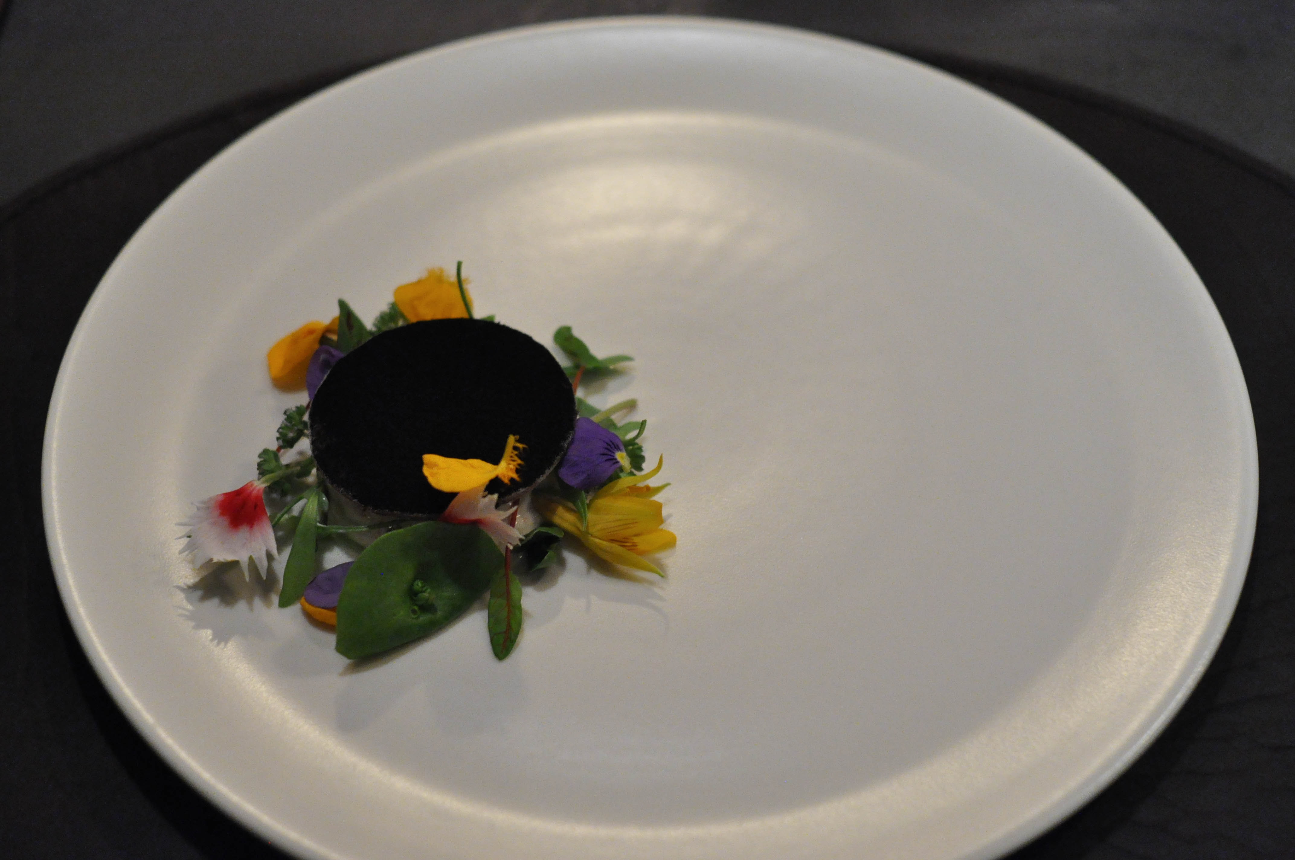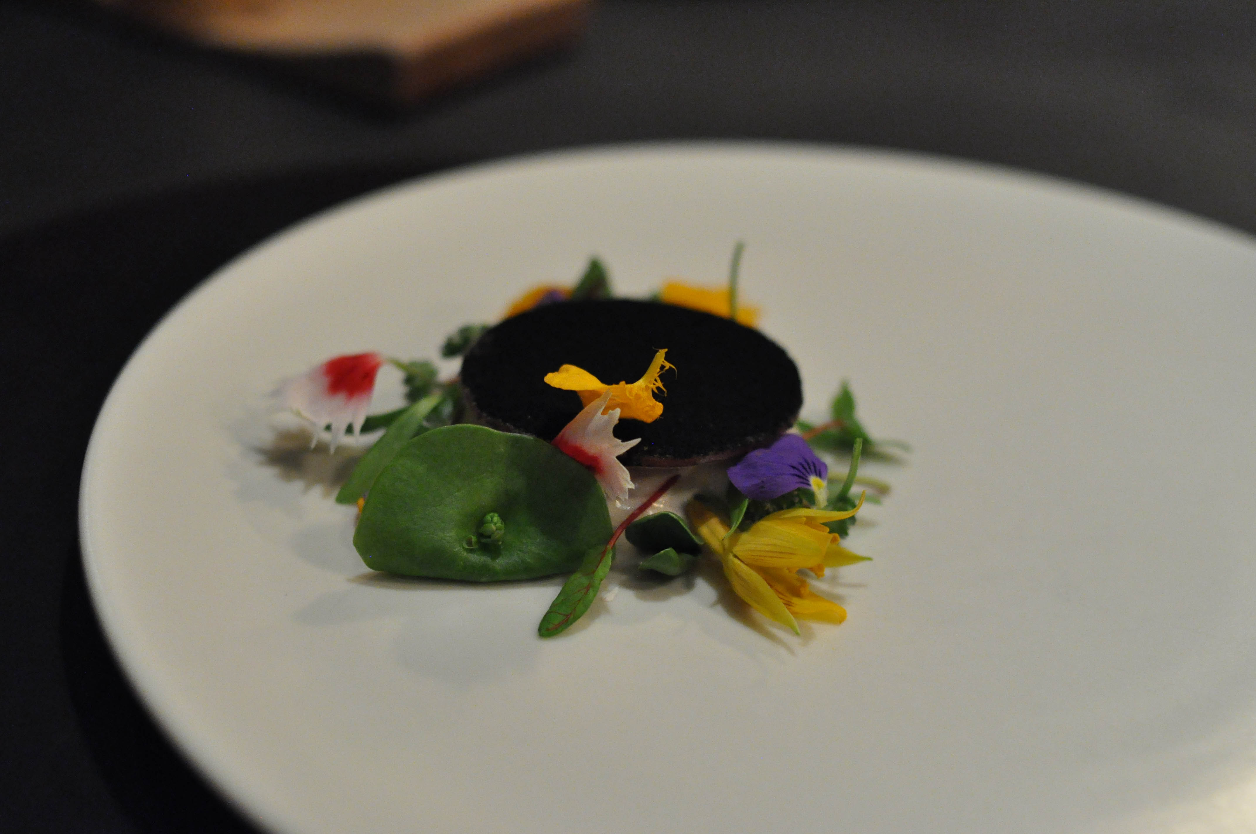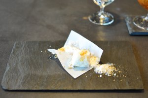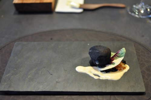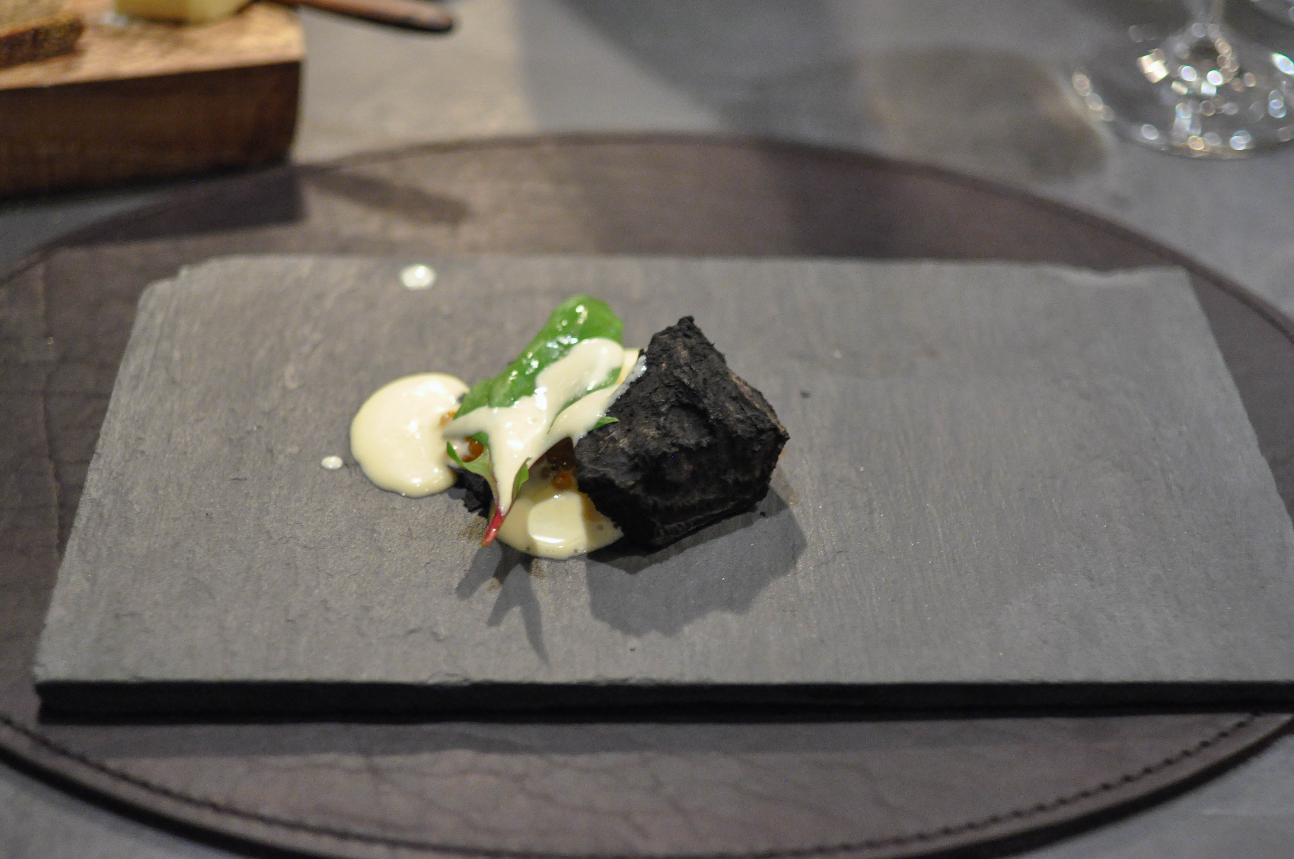 Pig’s Blood Wafer with Whipped Pork Fat. This was very interesting, if nothing else. I couldn’t decide if I liked it overall. I definitely like the crackle of the cracker, and there was some pleasant bitterness.