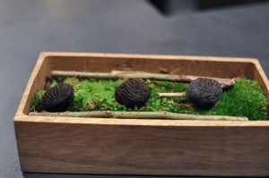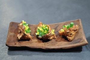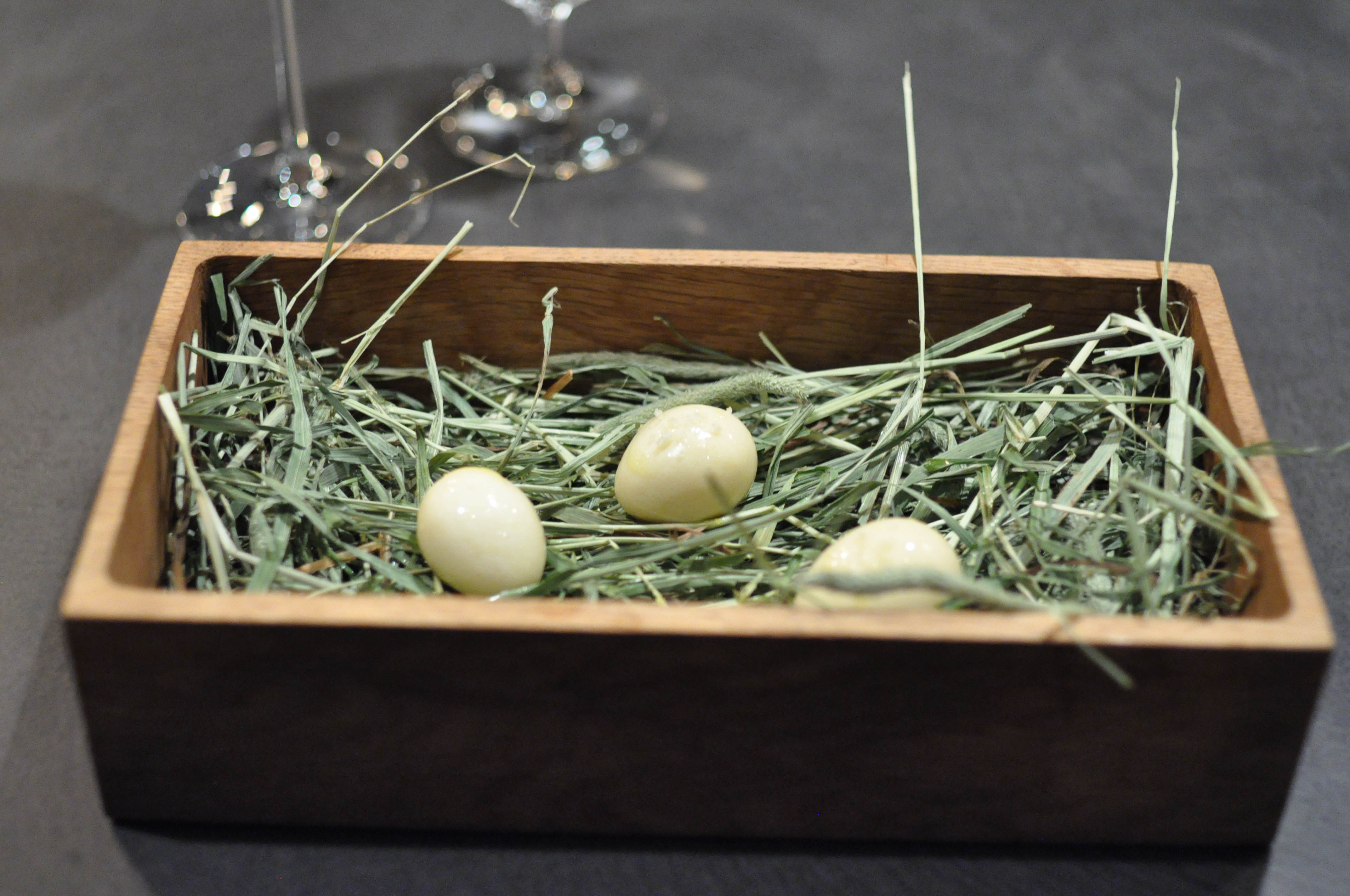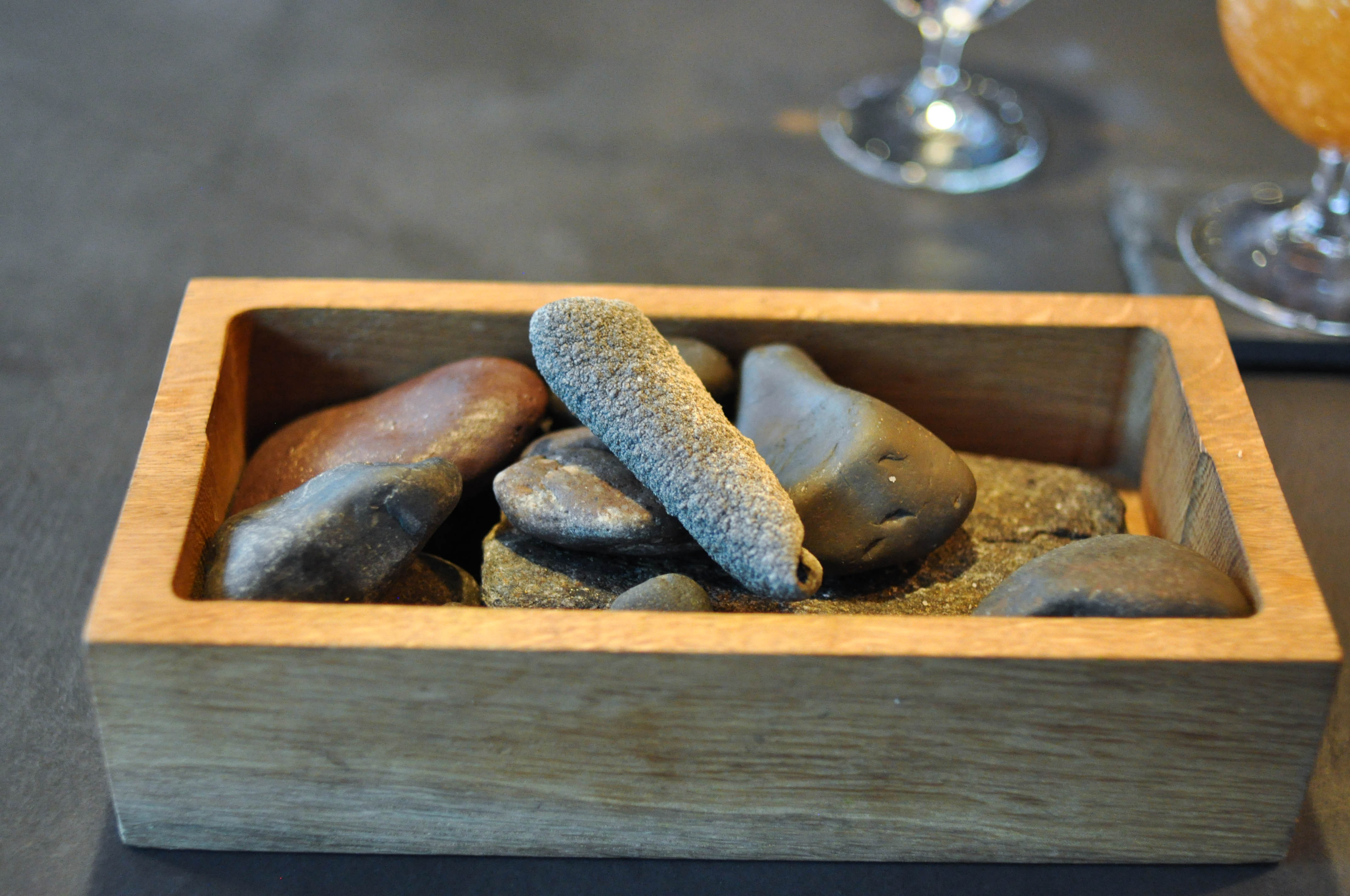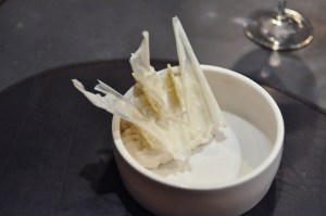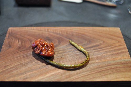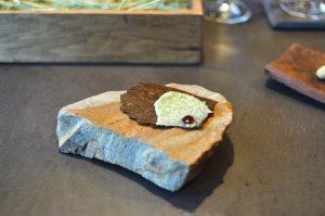 Pig’s Blood Wafer with Whipped Pork Fat. This was very interesting, if nothing else. I couldn’t decide if I liked it overall. I definitely like the crackle of the cracker, and there was some pleasant bitterness.