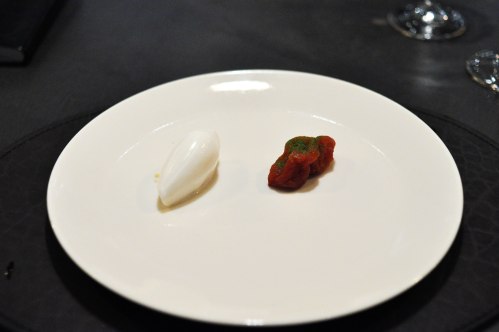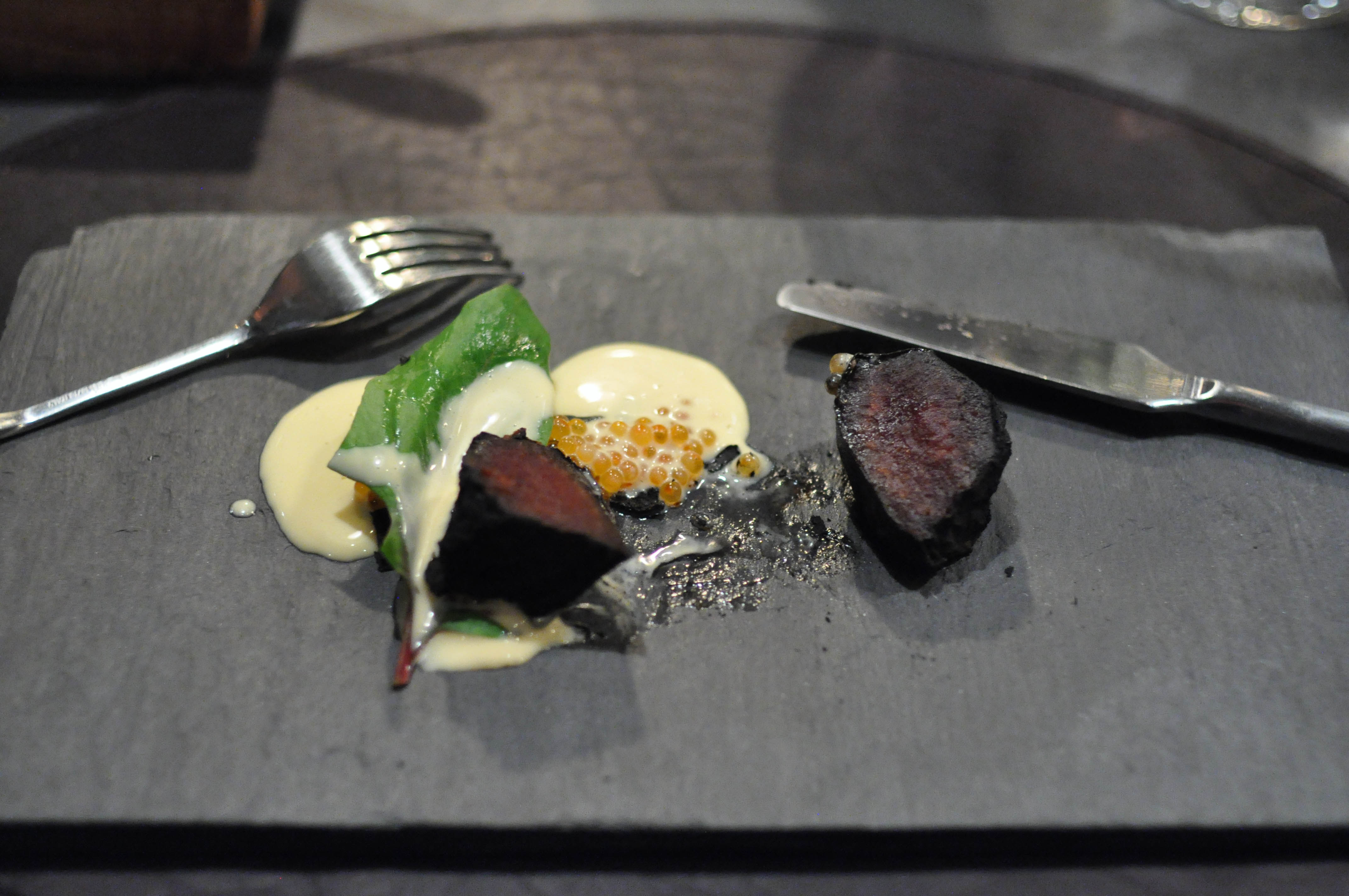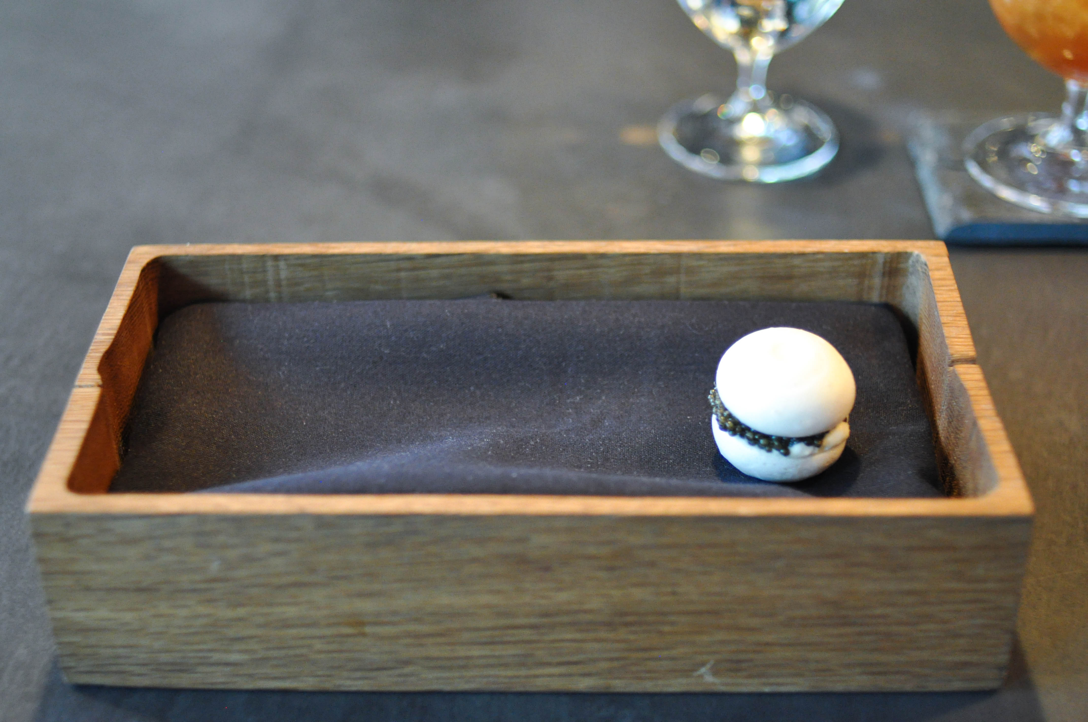 Beer & Creme Fraiche Macaron with Caviar. I’m still not sure what was going on here, but it was damn delicious; I wish I had asked for an explanation. Light, crisp texture, a little something sweet, and caviar salinity to finish.