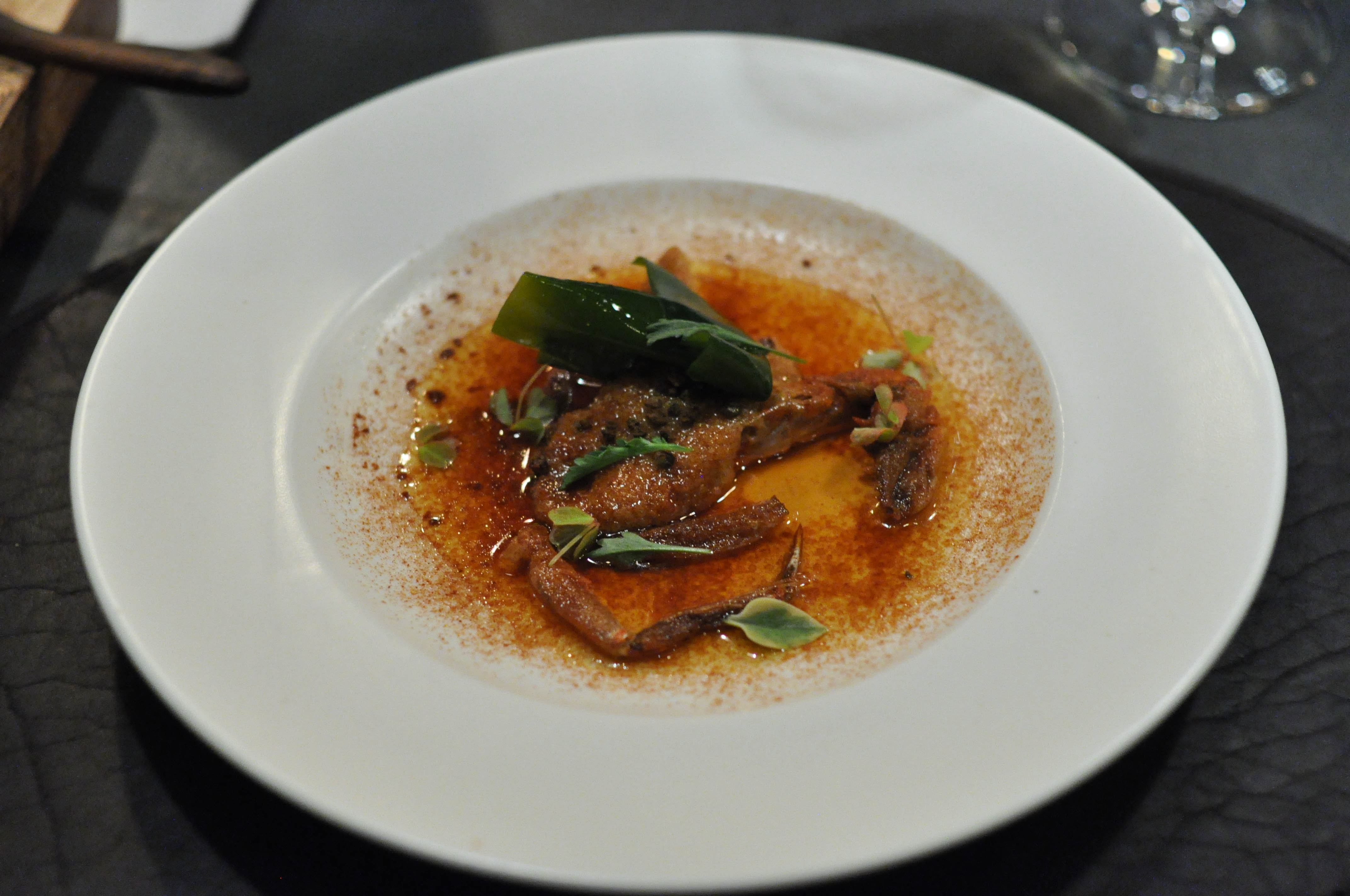 6th Course: Softshell Crab. Brown Butter Consommé.