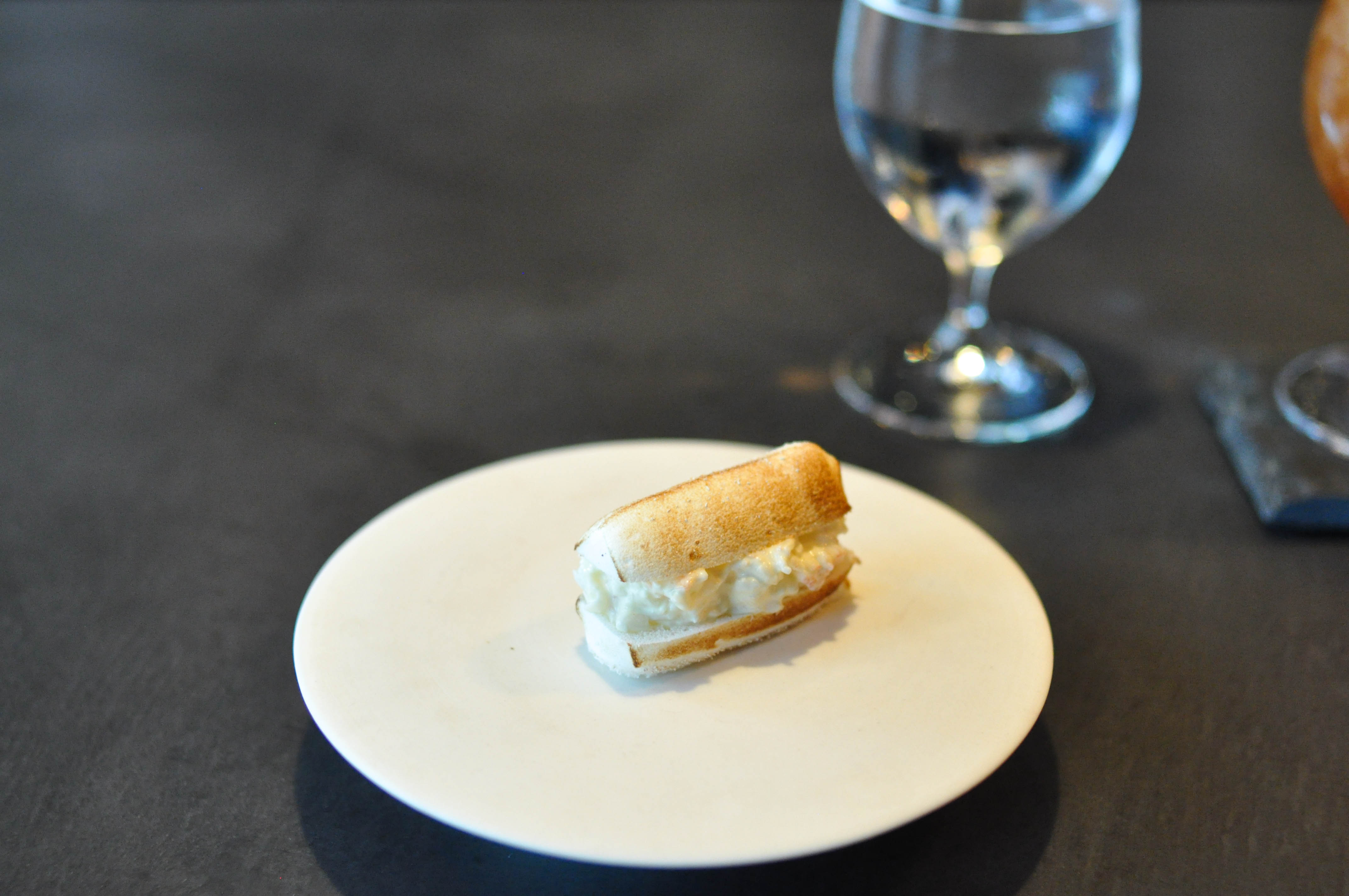 Lobster Roll. Lightner’s small-bite-play on the east coast classic. The claw meat in mayonnaise had a nice chew. The yeast meringue ‘bun’ had a nice puff to it.