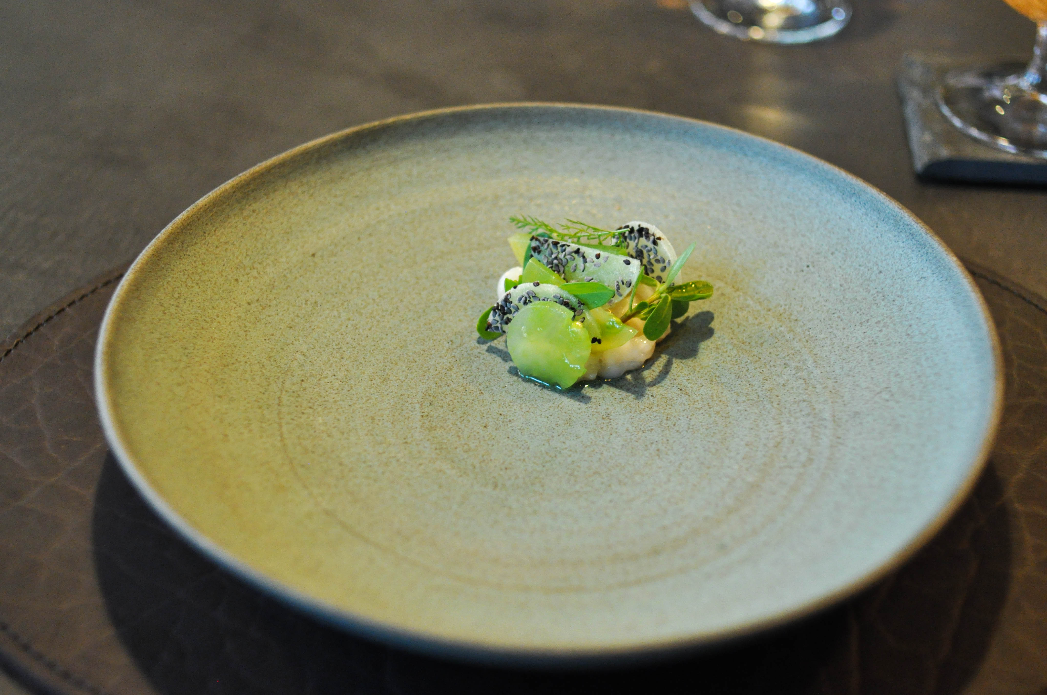 2nd Course: Peeky-Toe Crab. Artichoke. Cold Herb Infusion, Strained Buttermilk. A Creative course. The artichoke petals were beautifully tender and a fun textural play with the crab meat. The sour of the buttermilk set everything off and made it sing.