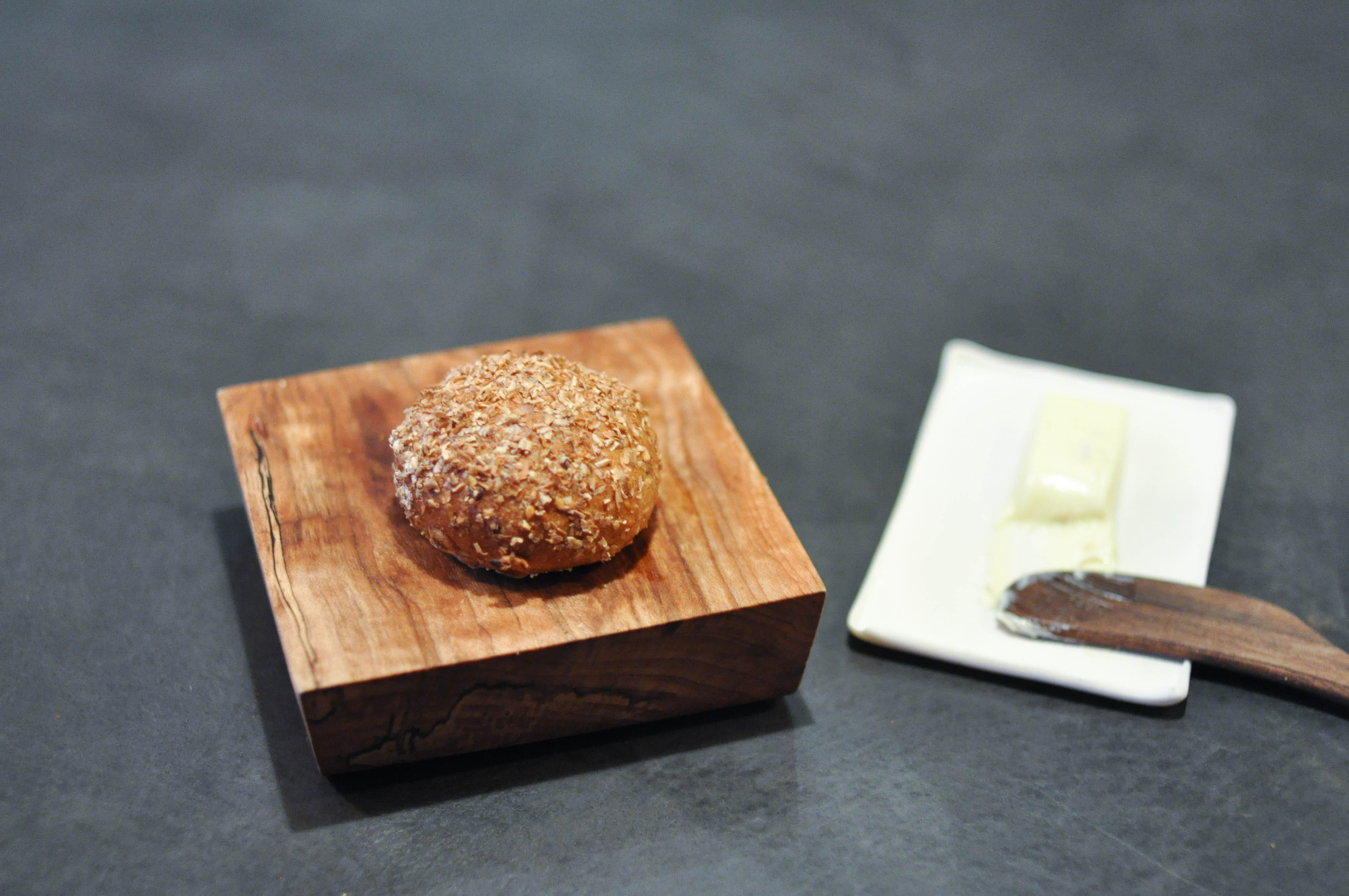 I was served three breads throughout the meal: Salted Rye, Sourdough Roll basted with Pork Fat, and a Whole Grain Seeded Roll. The cream for the butter is aged in house with Jasper Hill Farms Harbison Cheese.