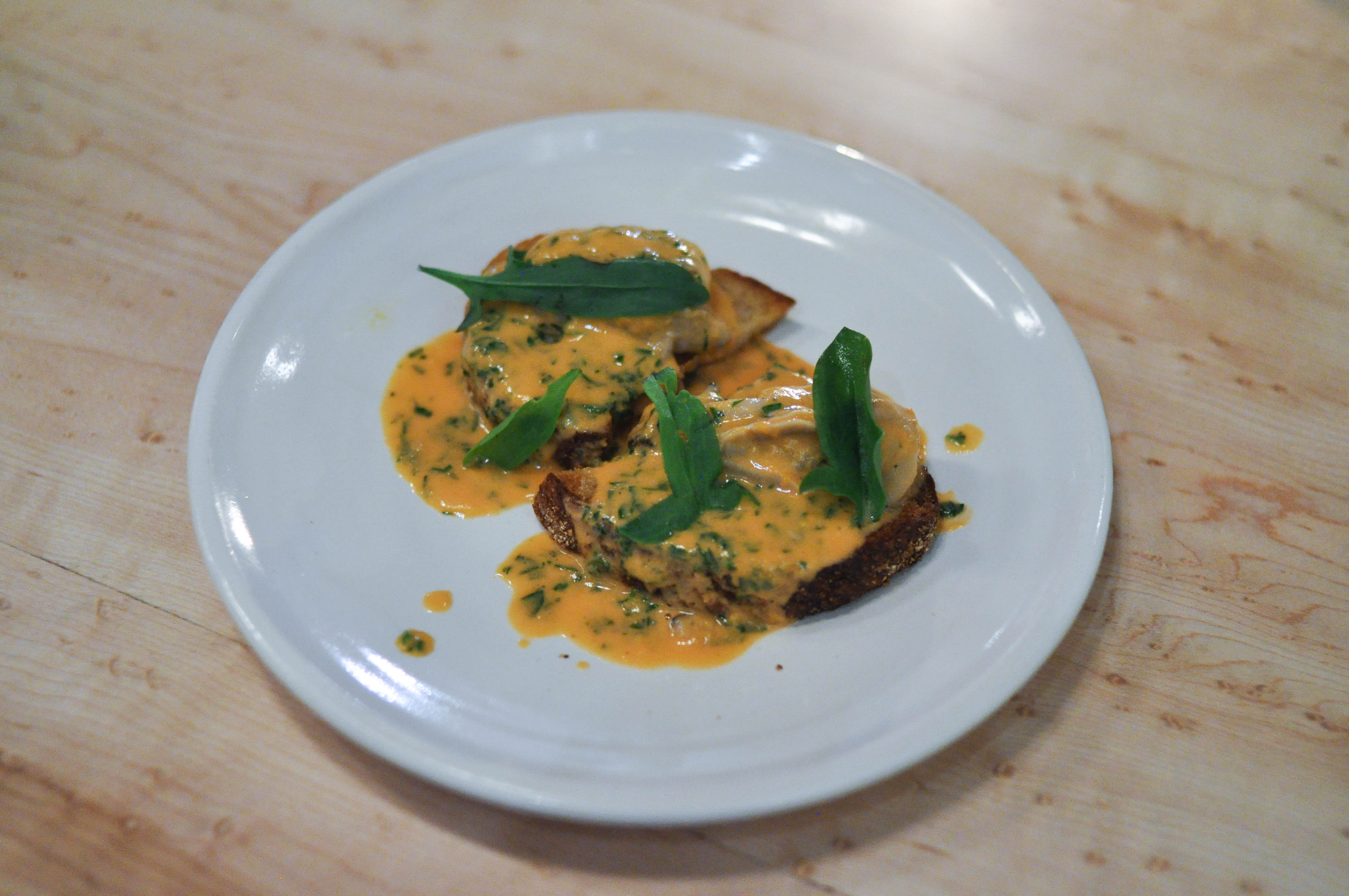 1st: Poached Oyster Toast, Lobster Emulsion, Sheep’s Sorrel. Island Creek Oysters gently poached, served on crunchy crostini. I’m not sure of the base for the emulsion, but it was balanced, savory, and still light. I always love the citrus-like acidity of sorrel, and in this instance, it was thoughtful condiment to the oysters.