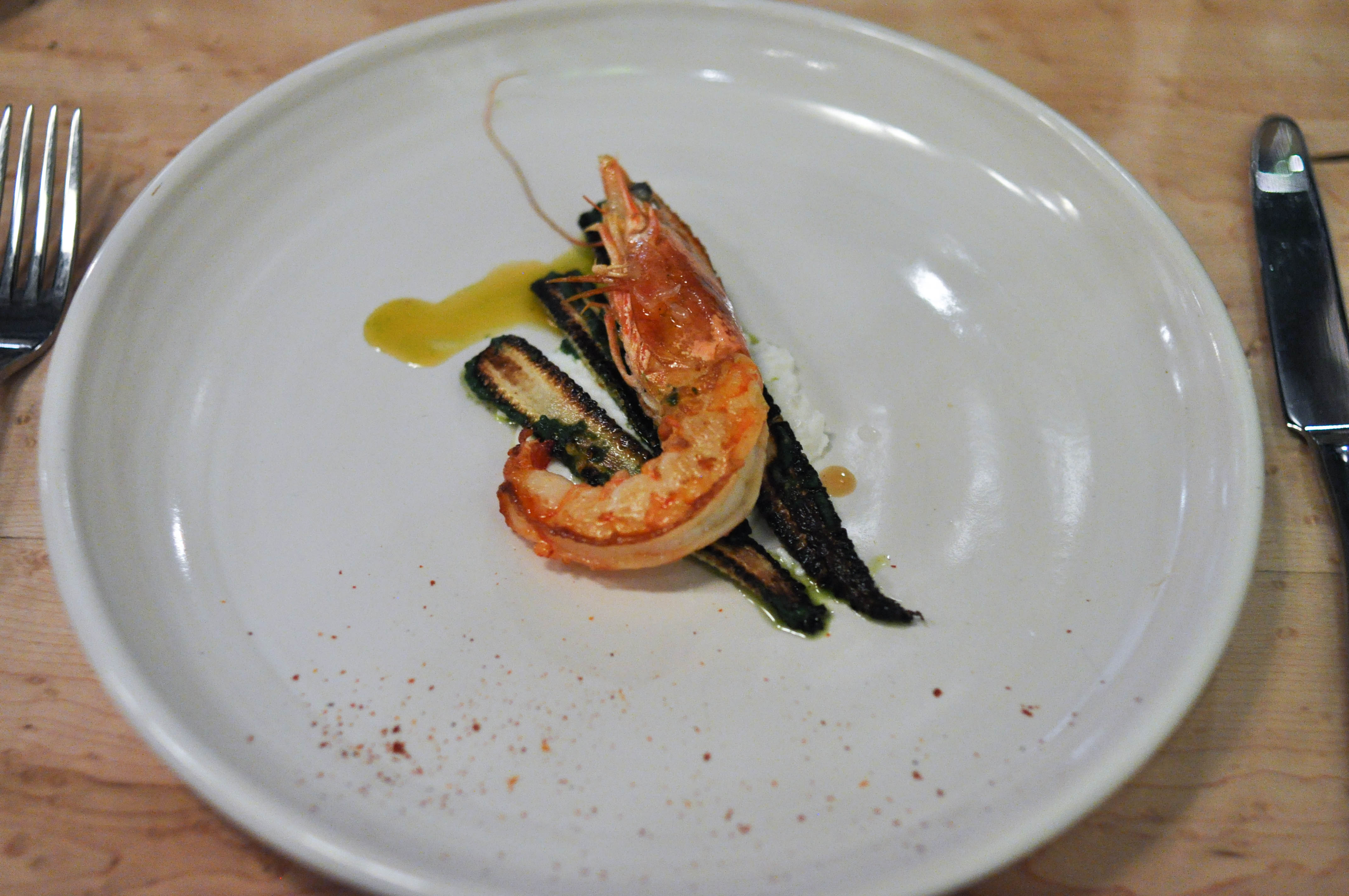 7th: Charred Baby Corn, Goat’s Milk Feta, Cilantro, Gulf Prawns. Lime Juice, Shrimp Oil, Cayenne. Big winner. The corn was marvelously fresh and juicy. The Prawns were cooked spot-on. My favorite plate of the meal.