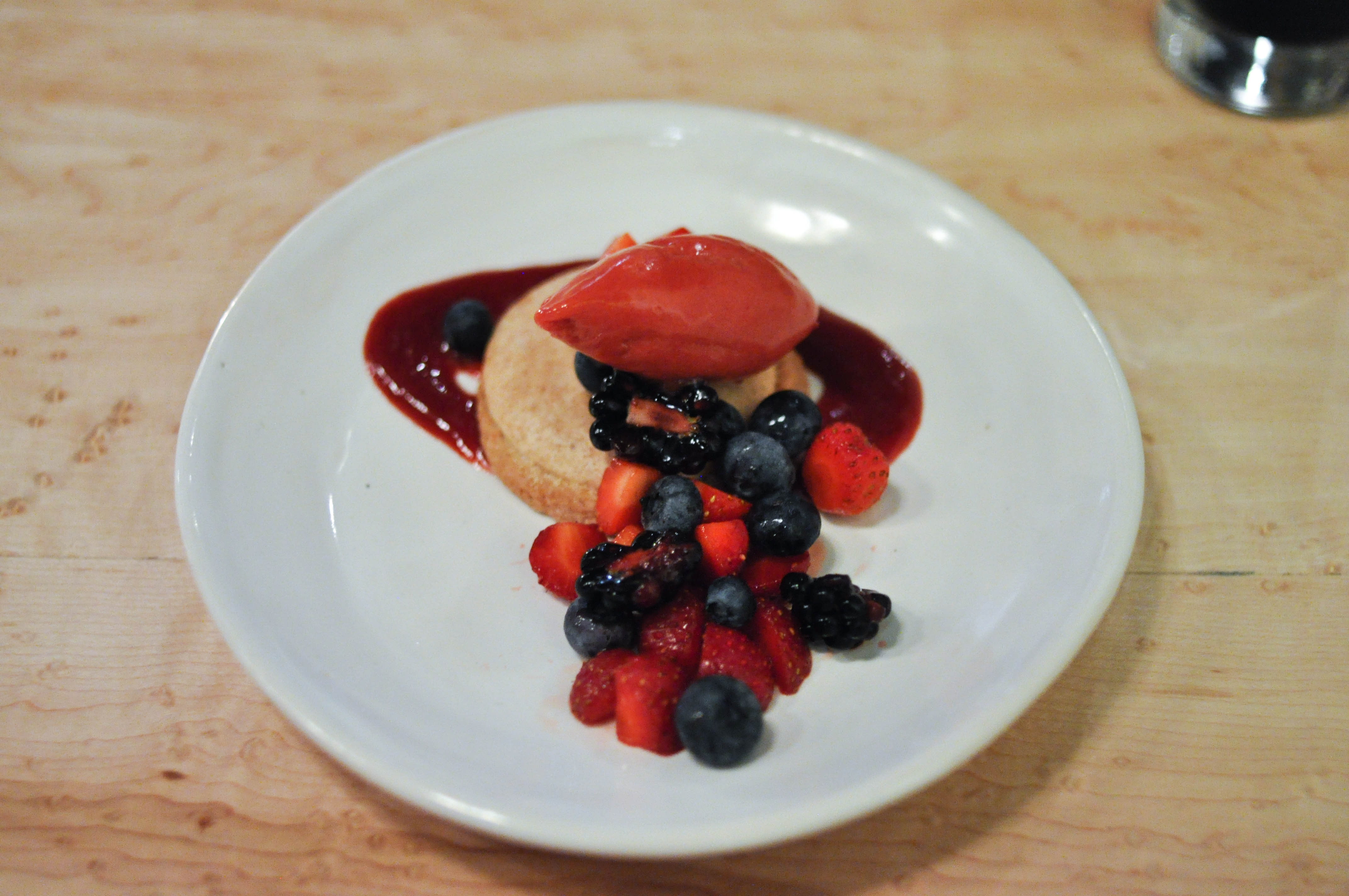 11th: Strawberry Sorbet, Brioche Macaron, Berries. A superb little dessert. The density I like in a macaron meringue, straight-forward strawberry flavor, and fresh berries. Simple and gratifying.
