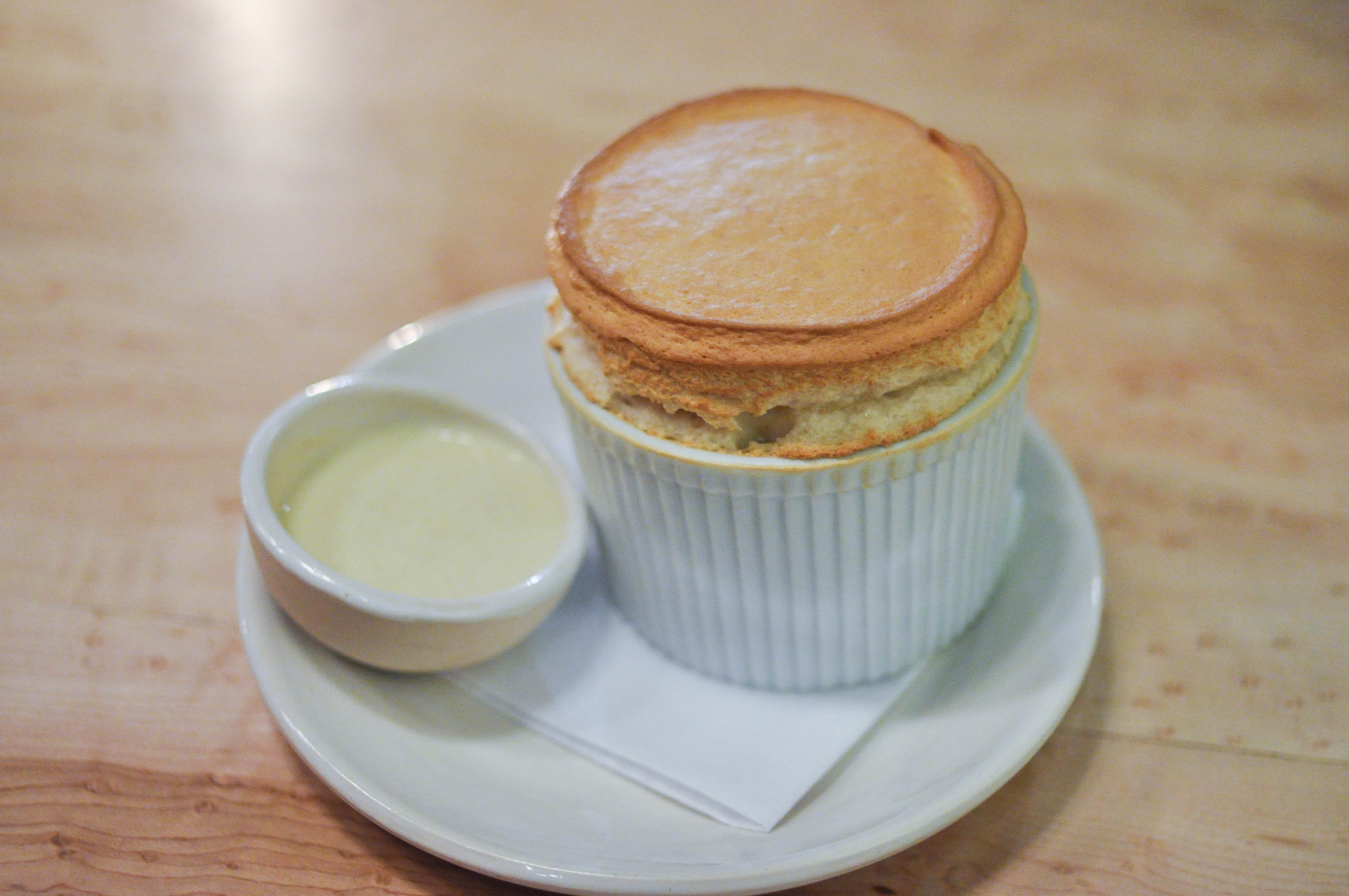 12th: Apple Cider Soufflé, Cherry Kernel Creme Anglaise. An aroma like fresh-baked apple pie. A well-executed soufflé. Light and puffy with delicate flavor. I think the ramekin was sprinkled with sugar because there were small caramelized bits spotted throughout which were a fun surprise. While it was a little much for me to handle by the end of our menu(the photo belies its grandeur), I see this as an ideal dessert to follow two or three savories at the gov.