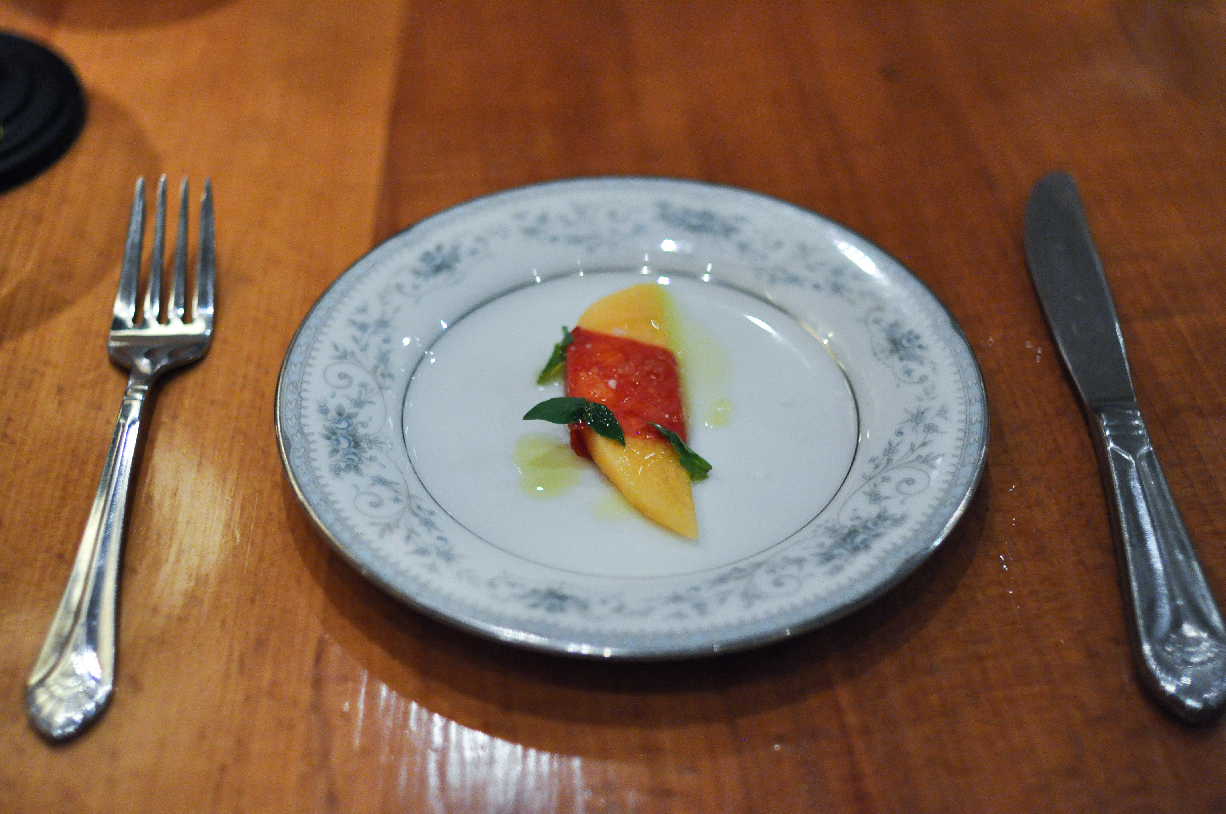 As our recent Euro-eating-trip was approaching, Rocky and I were supposed to be going easy on the eating out and saving money for our Copenhagen-Denia-San Sebastian line-up. But coming up on my last night off work before departure, I couldn’t help but call up Torrisi to see if they could get us in for their Chef’s Tasting Menu. After a moment on the phone, on and off hold, we were good to go. The menu was composed of roughly 20 ‘courses’, each paying homage to the history of NYC dining and food culture.
