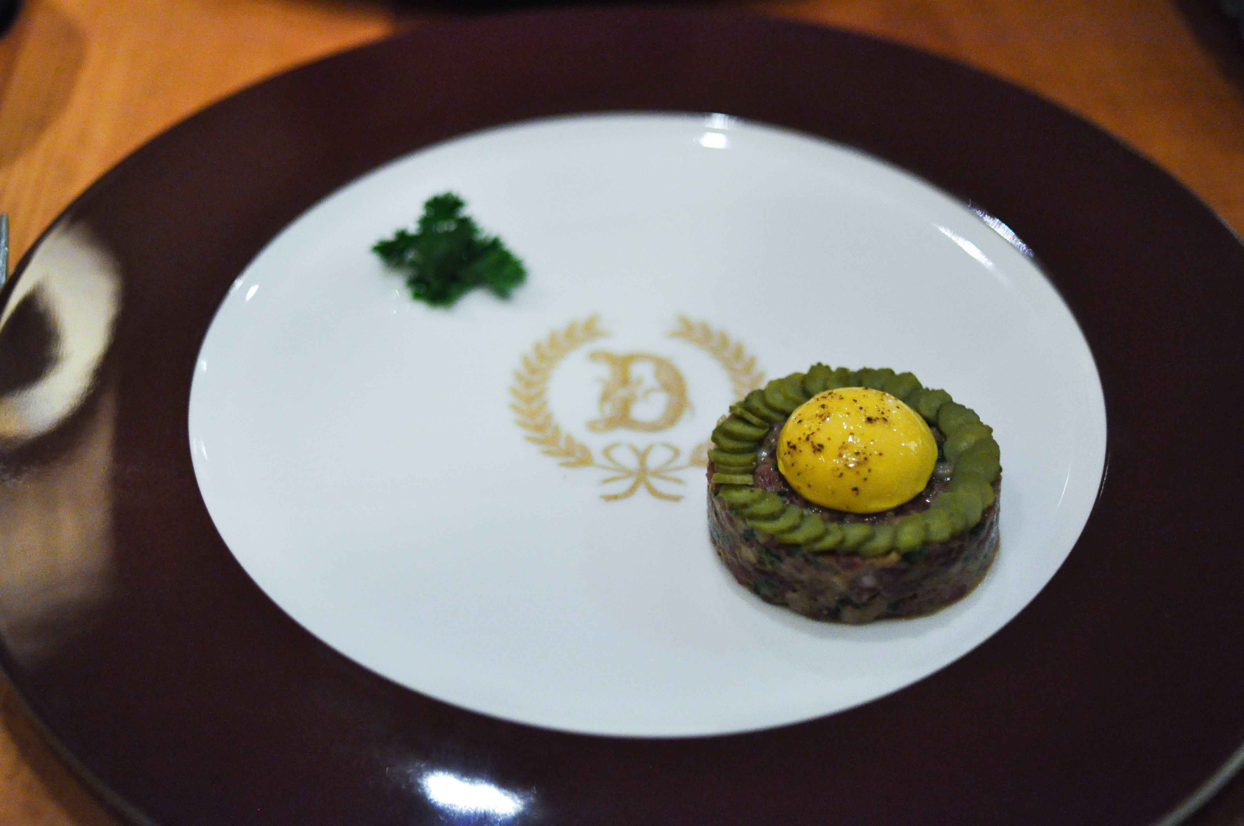 DELMONICO STEAK TARTARE. 25 William Street. A bold flavored tartare with a good amount of black pepper, petite cornichons, and encapsulated béarnaise.