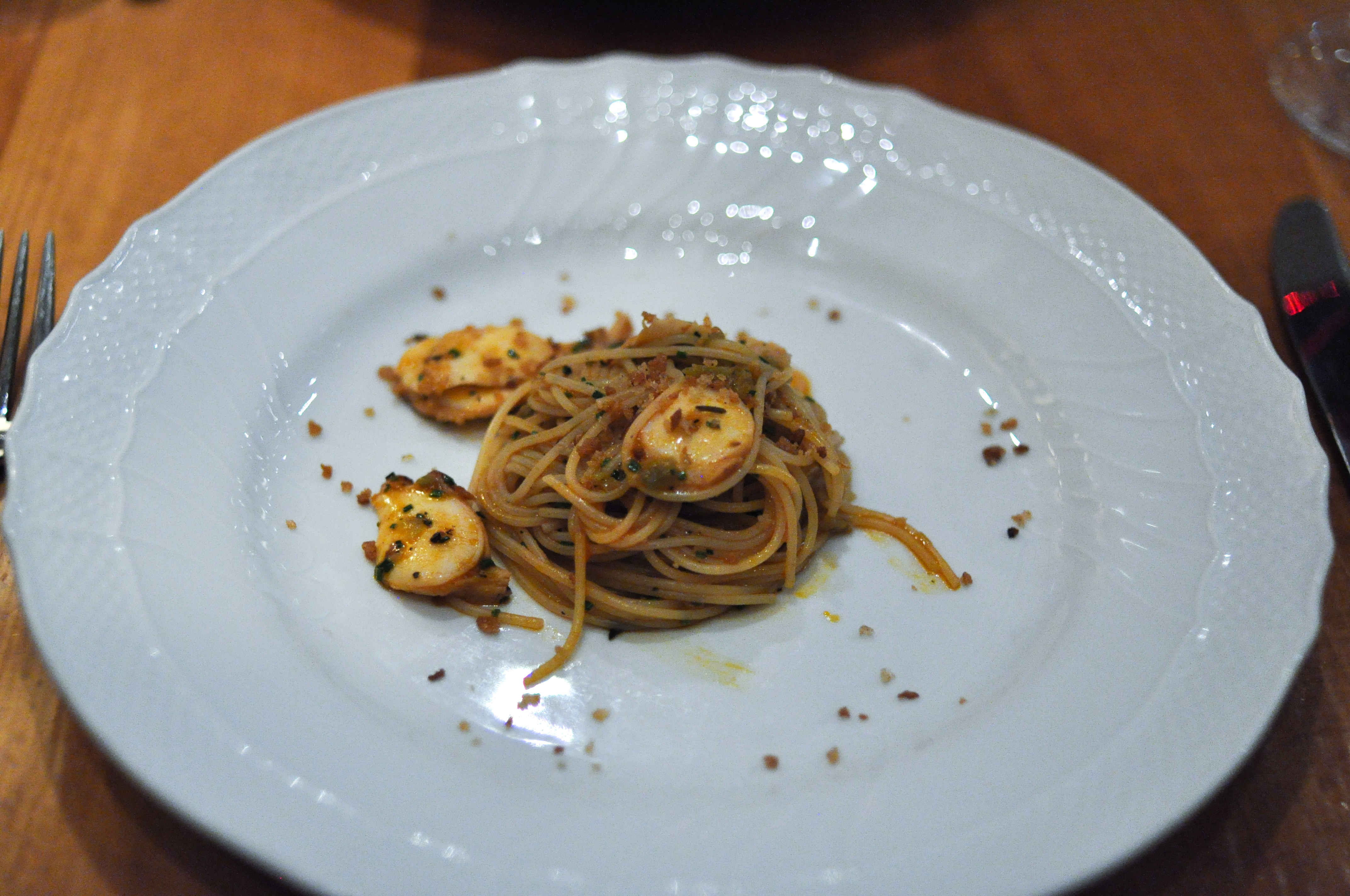 OCTOPUS SPAGHETTONI. A Sunday on Long Island. The octopus was nicely tender with a strong ocean flavor. Toasted bread crumbs were a plus, texturally. The dish was initially too spicy for me, but I numbed to it fairly quickly.