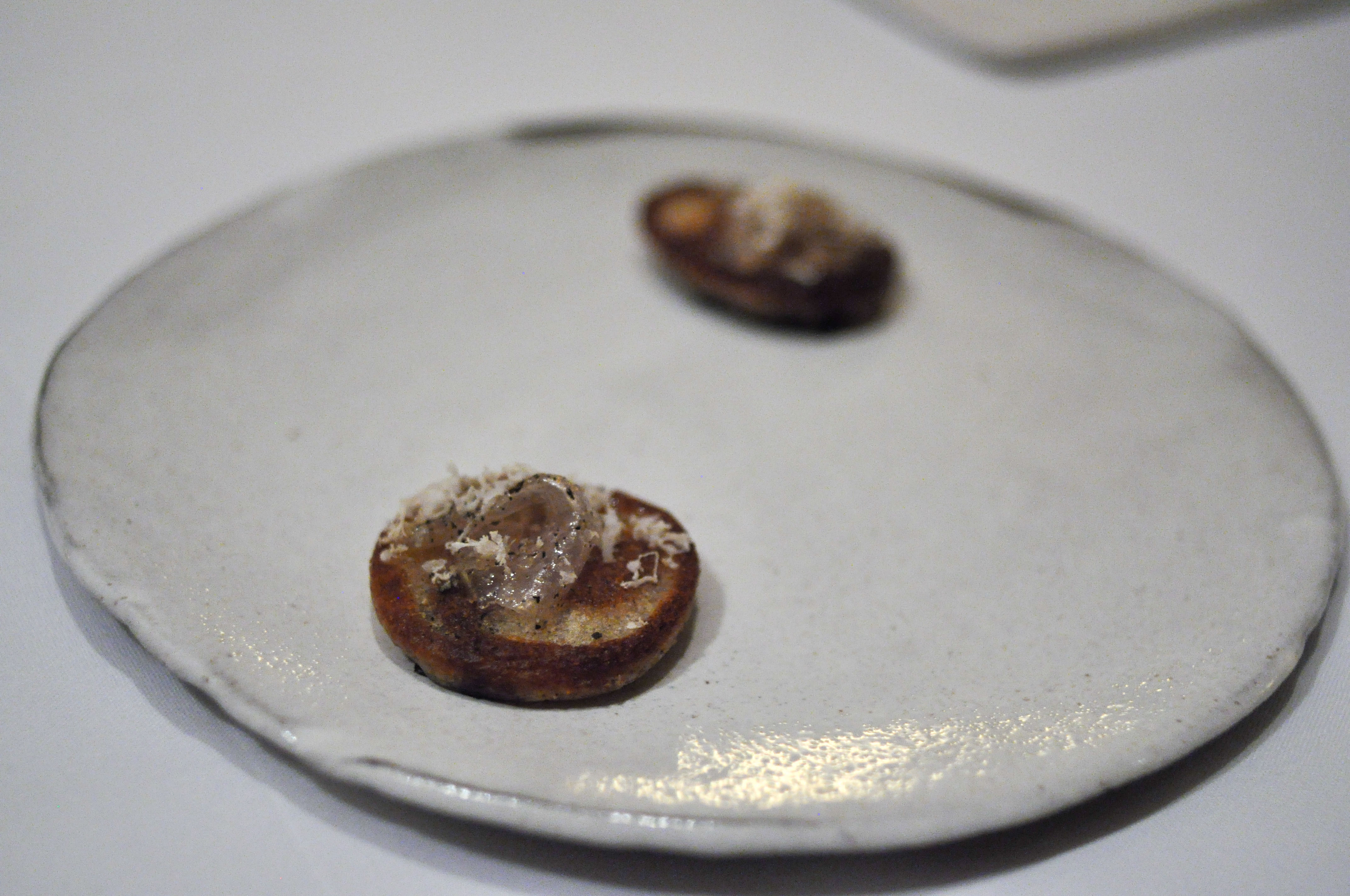 We got the party started with some bubbles(it was a remarkably bubbly meal) as our guy rolled up and showed off a guéridon boasting an attractive spread of pickled and fermented goodies, dried mushrooms, house made paprika, molasses, speck, and bresaola. Then began an impressive onslaught of snacks and small bites.
