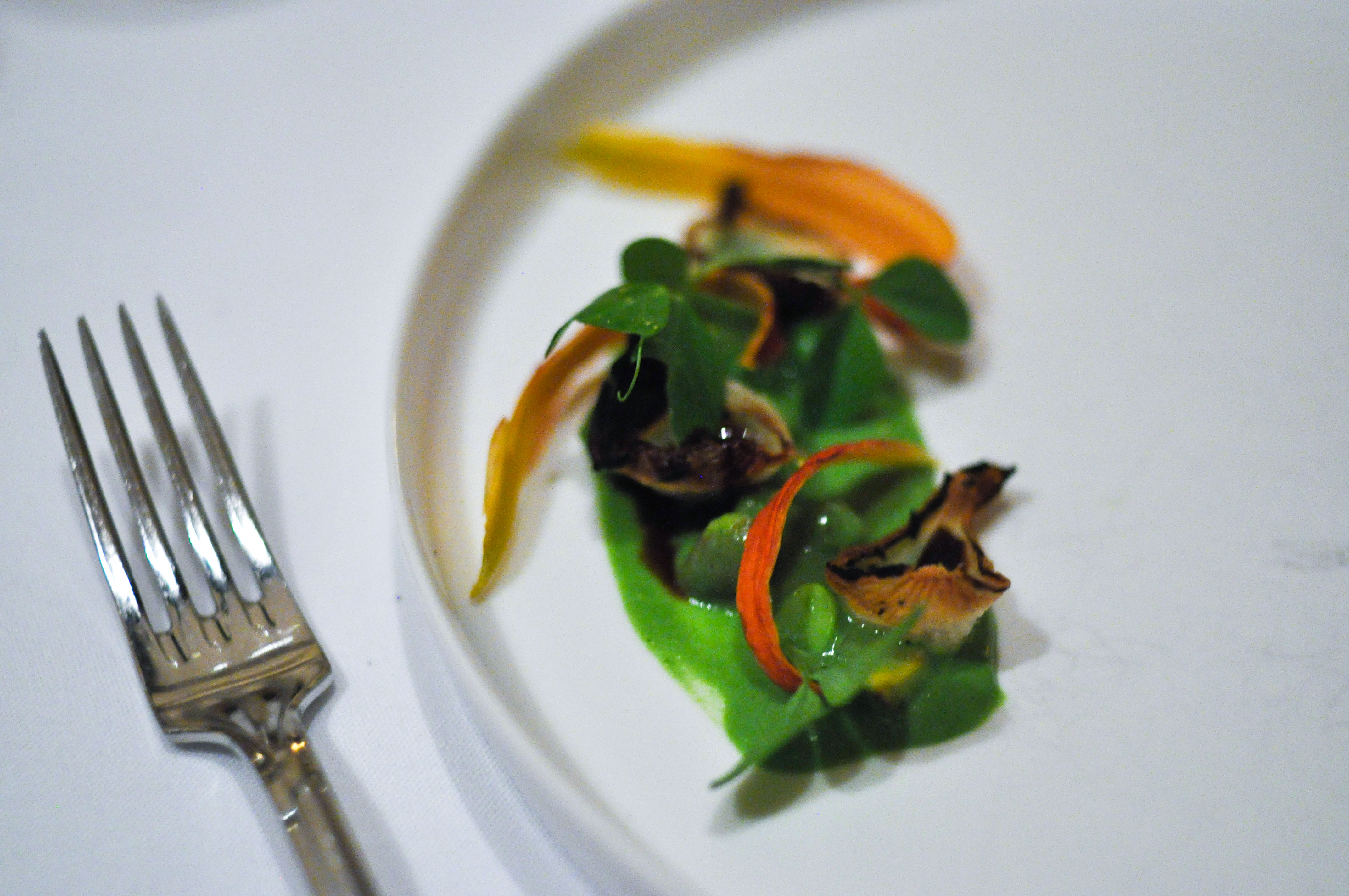 Peas, bio-char onions, daylily. Damn. Amazing. I still think of this little dish occasionally. The charred allium taste was sublime with the perfect peas. The daylily was a lifting lightly floral compliment.