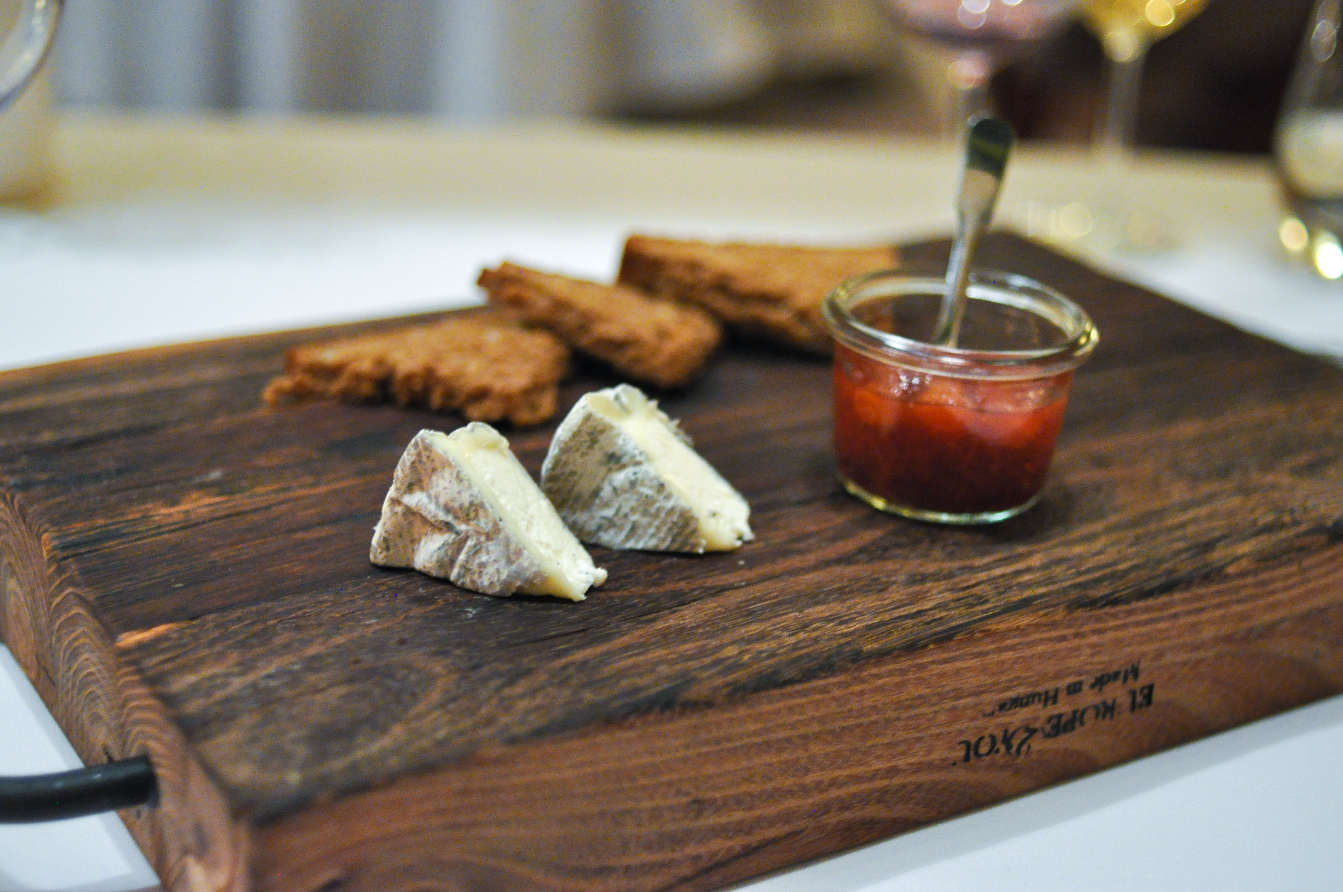 Another service cart rolls up. This time with a giant wheel of Rupert, an aged raw cow milk cheese from Consider Bardwell Farm in Vermont. Our guy shaved several strips off the wheel and served them up with quince, pumpkin seeds, and rye sourdough pretzels.