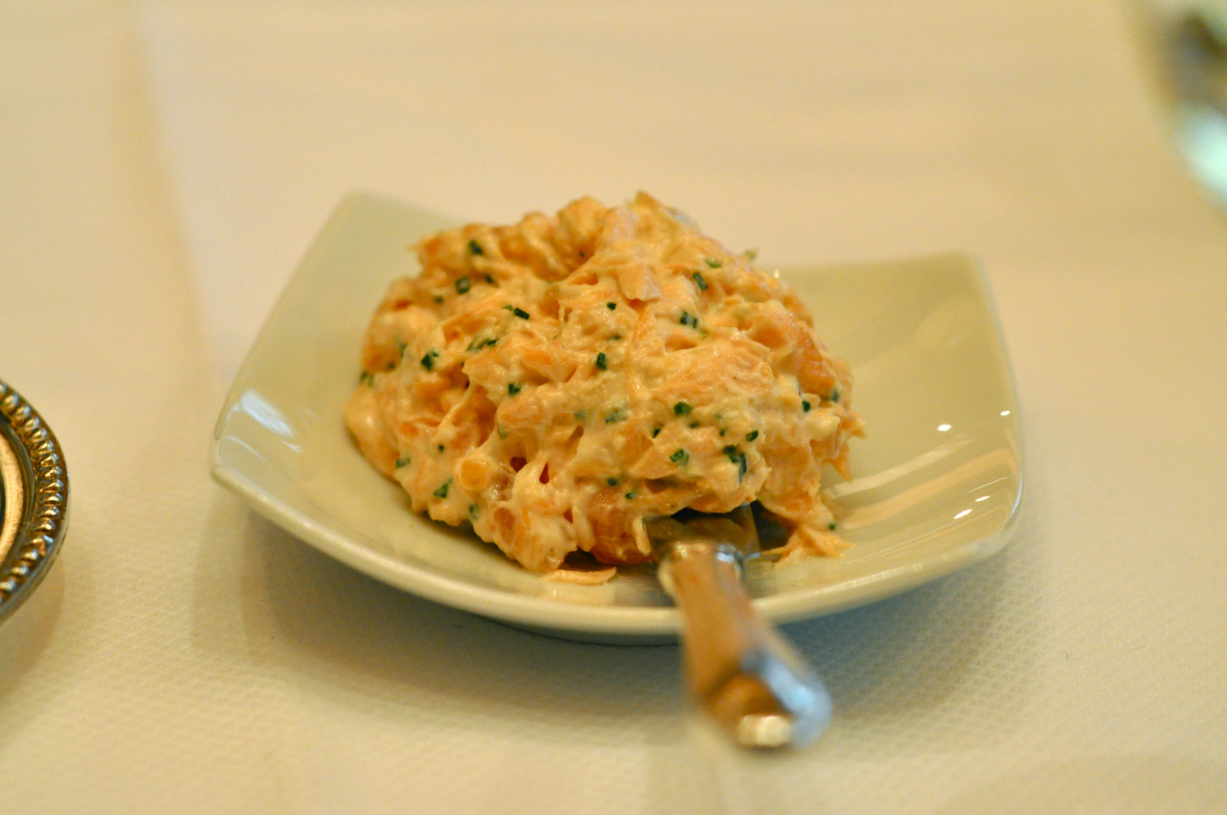 Lunch started with the usual salmon rillette and toast, which I always have a little of, but never get too crazy over. Then some beautiful bread and butter, which I adore, and do get a little crazy for.