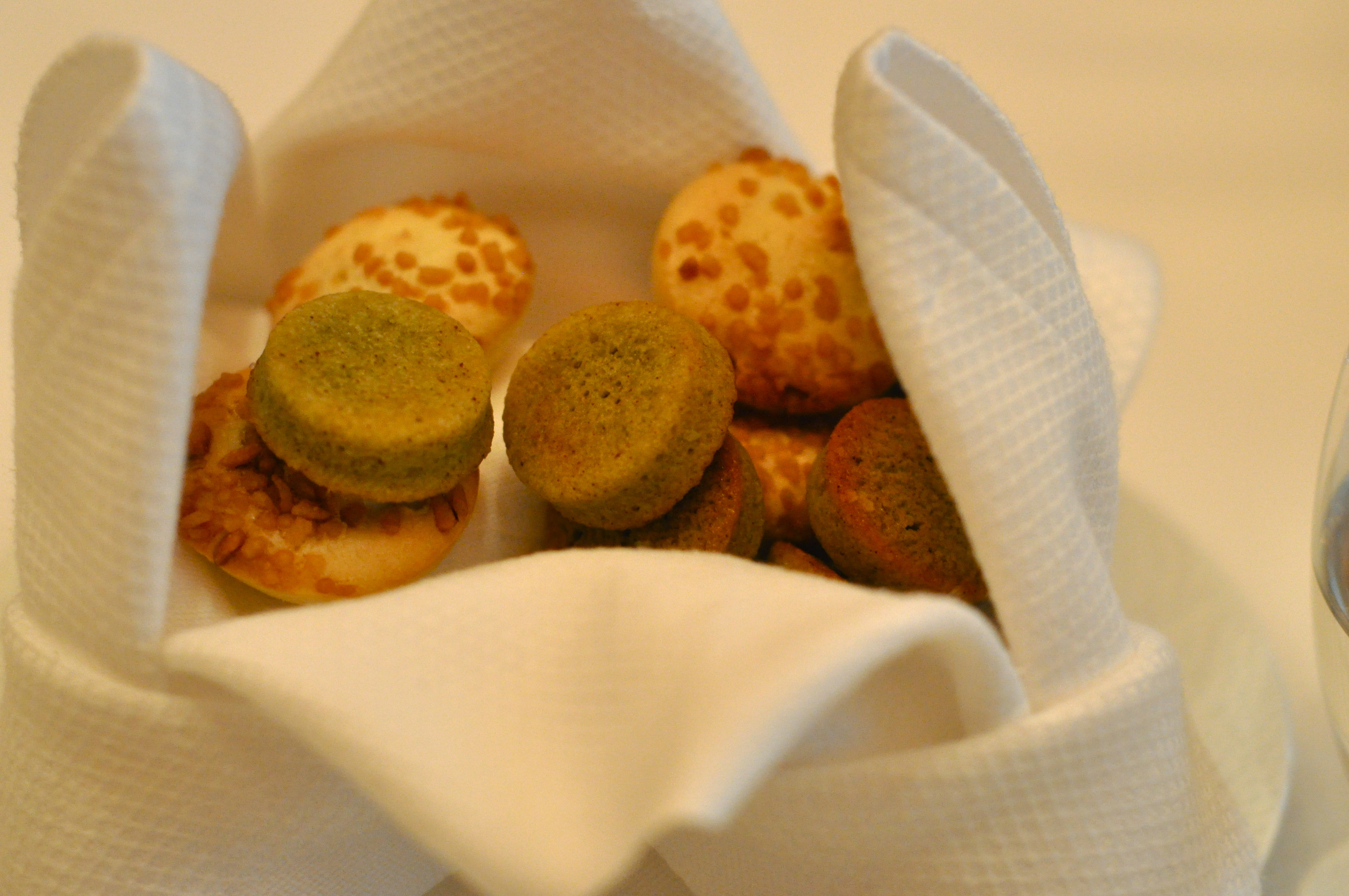 Flaxseed Cookie, Pine Nut Butter, Dried Mushroom. Served cold, the cookie was crisp and crunchy, with a little sweetness, and a light earthiness from the mushroom.